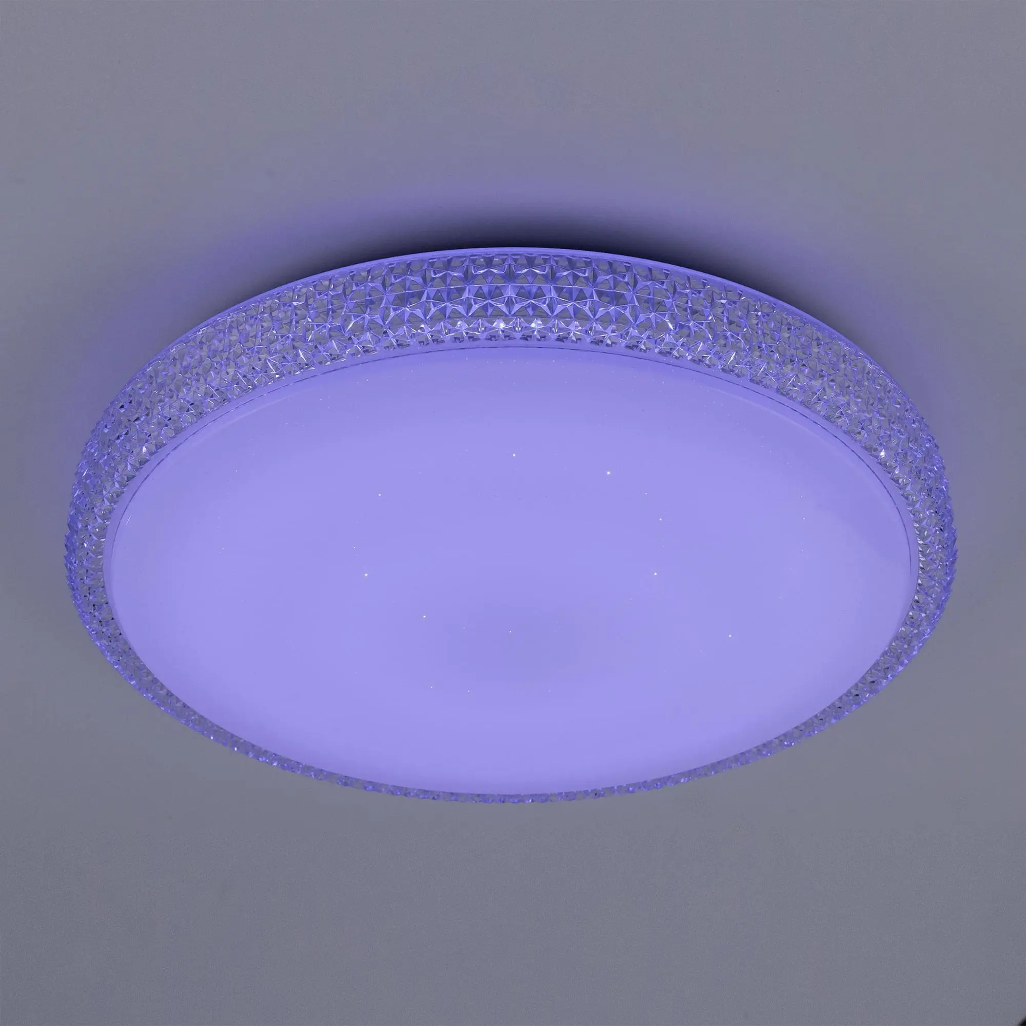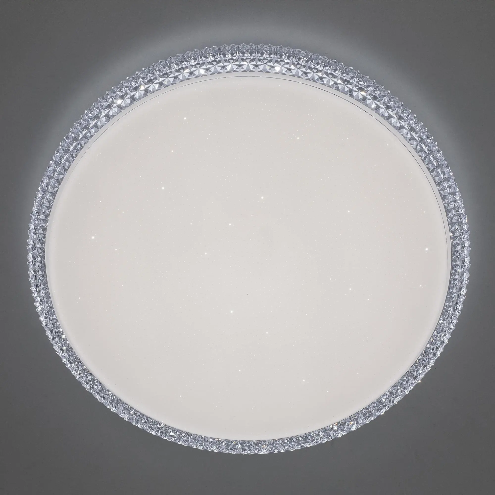 Выпускается с белым глянцевым плафоном с эффектом звездного небо и красивой рифленой окантовкой. Светильник накладной, круглой формы, крепление подходит для всех типов потолков, в том числе натяжных.