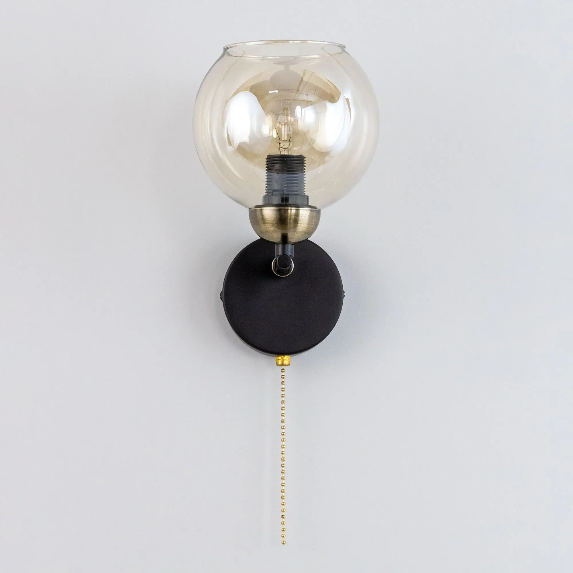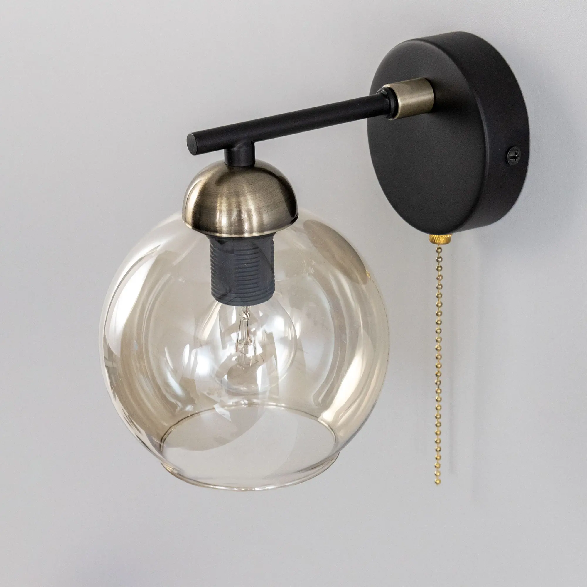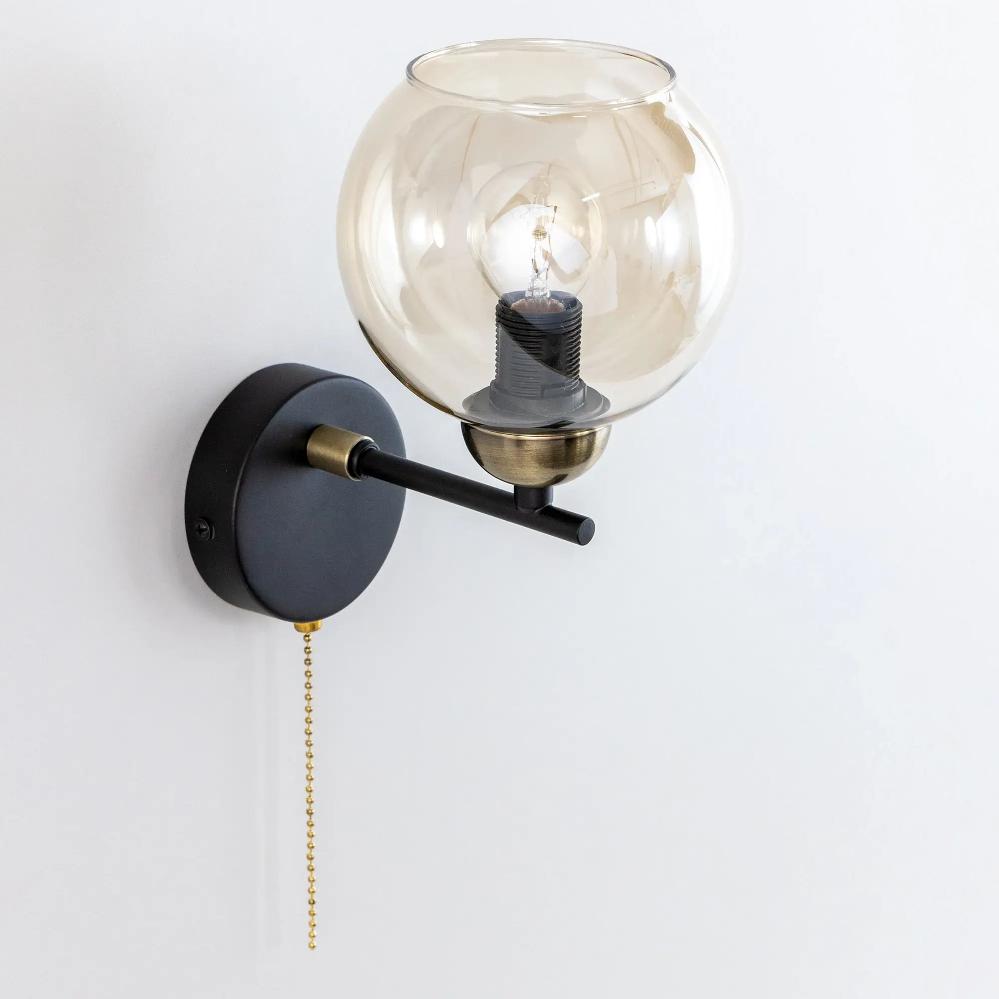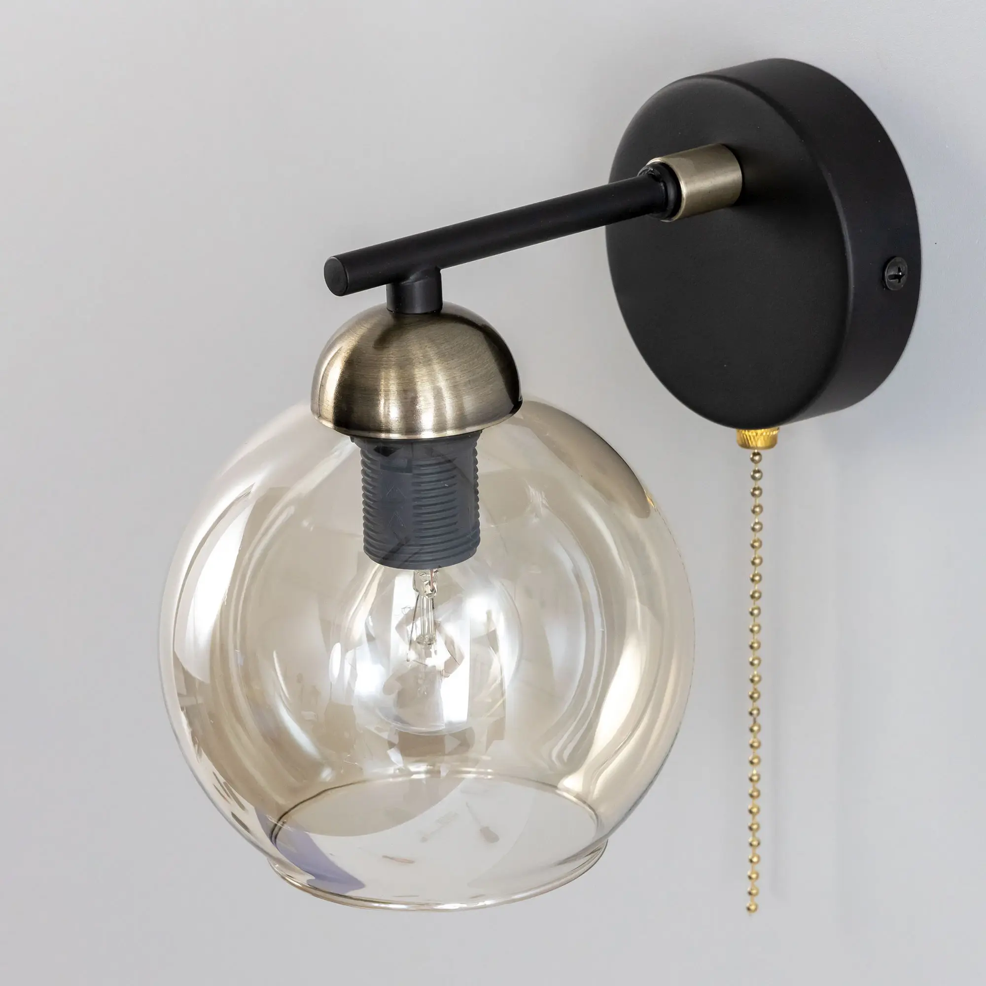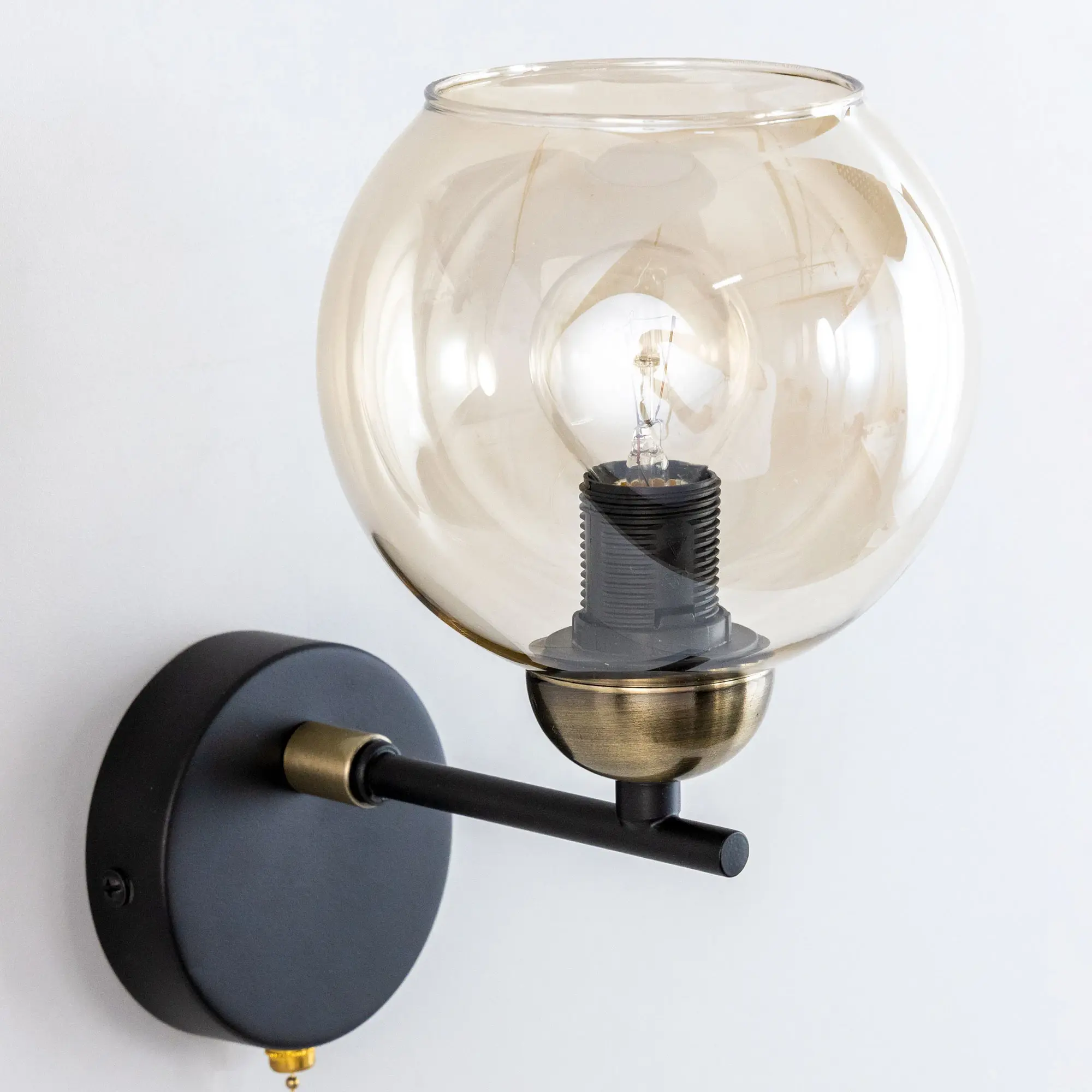 Современный настенный светильник Citilux Анри CL124315 для стильных интерьеров. Корпус металлический, чёрного цвета, с декоративными бронзовыми элементами. Плафон изготовлен из прозрачного стекла светло-янтарного оттенка. В изделии используются лампа с цоколем Е14, максимальной мощностью для ламп накаливания 60Вт. Светодиодные лампы можно устанавливать более яркие. При монтаже, бра можно установить плафоном вверх, для общего освещения или в низ, для чтения. Тип крепления к стене-планка,