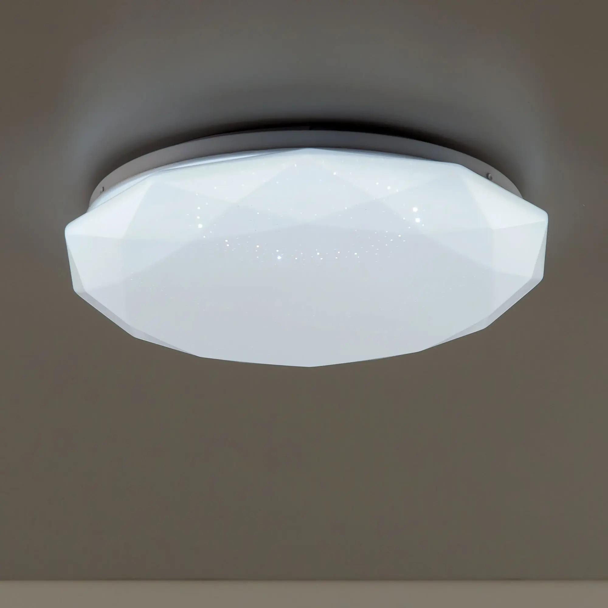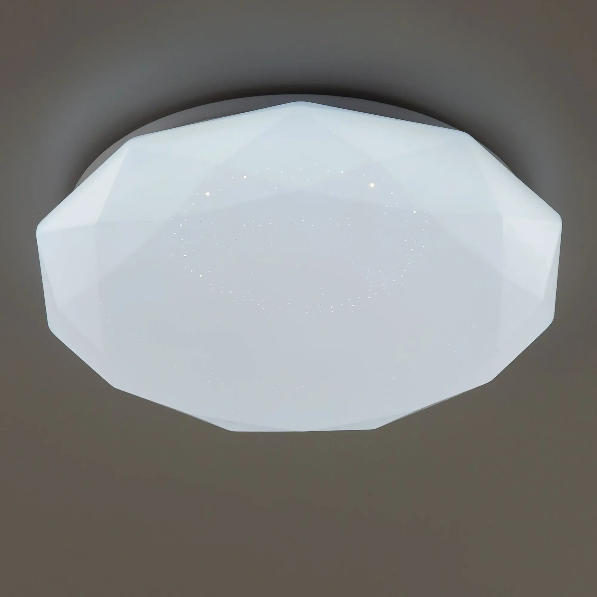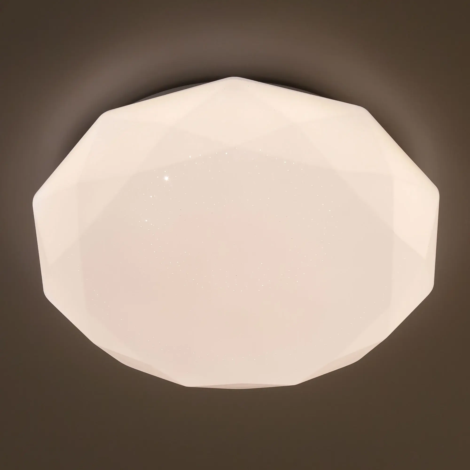 Светодиодная потолочная люстра Citilux Астрон CL733330G с яркой цветной RGB подсветкой всего плафона. Светильник плоский, основание металлическое. Плафон белый глянцевый, с эффектом звездного неба из оптического полимера. Мощность 33Вт, световой поток 2700Лм. Модель с пультом дистанционного управления. Доступна плавная регулировка яркости от 100 до 10%. Плавная регулировка цветовой температурой освещения в диапазоне от 3000К до 5500К, позволяет настроить любые оттенки теплого, нейтрального или холодного света. Цветная RGB подсветка имеет различные режимы работы. Таймер - функция отсроченного на 20сек. выключения. Четыре кнопки памяти позволяют сохранить настроенные режимы работы и включать их с пульта или обычным настенным выключателем. Пульт ДУ инфракрасный в комплекте, тип батареек ААА (батарейками не комплектуется).,