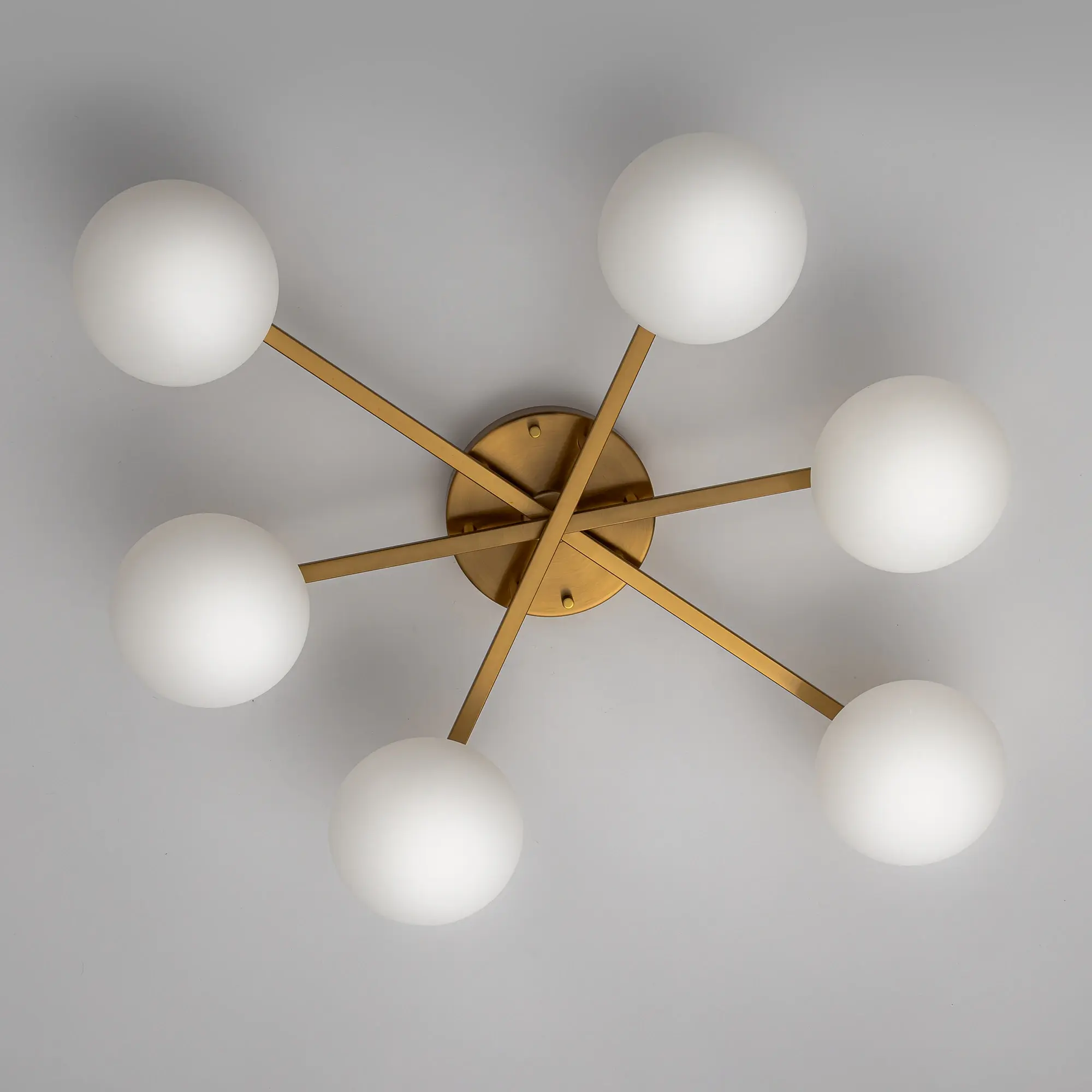 Люстра шестирожковая с круглым основанием, корпус металлический, цвет благородная бронза. Плафоны в форме сфероида изготовлены из матового оптического полимера. В каждом плафоне находится уникальный светодиодный модуль, который обеспечивает яркое основное освещение или красочную RGB-подсветку с плавной регулировкой яркости во всех режимах света.
