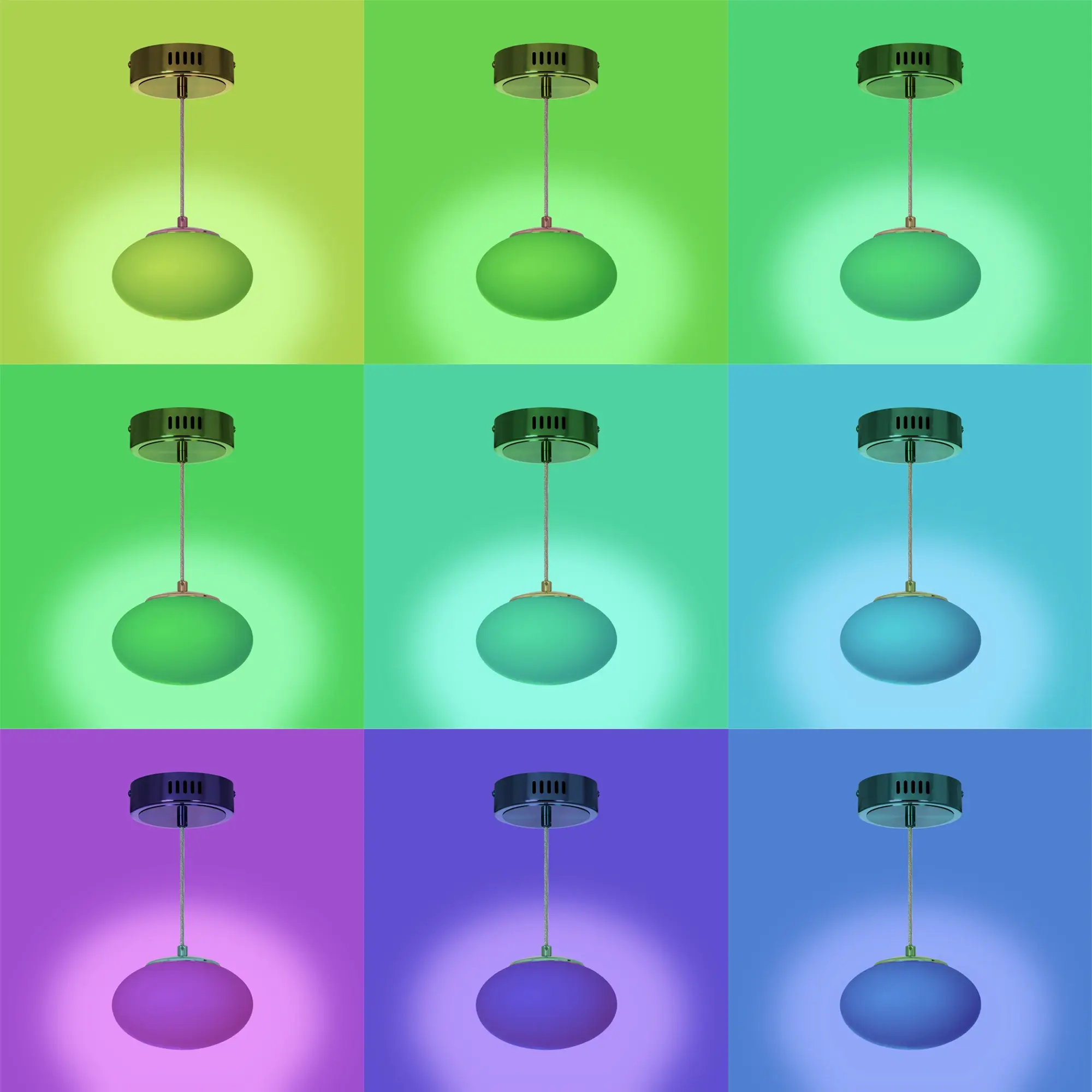 Светильник подвесной светодиодный Citilux ATMAN SMART CL226B013 выполнен в современном стиле. Основание металлическое, цвет благородная бронза. Плафон в форме сфероида, изготовлен из матового оптического полимера. Внутри плафона расположена уникальная светодиодная панель, обеспечивающая яркое основное освещение или красочную RGB подсветку (для управления цветной подсветкой нужен пульт). Мощность 12Вт, световой поток 1260Лм, осветит от 2 до 5м². Предустановлено 4 режима освещения, управление обычным настенным выключателем.