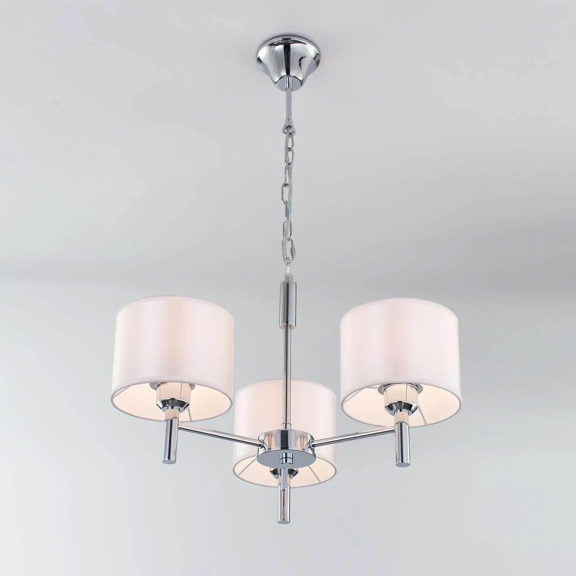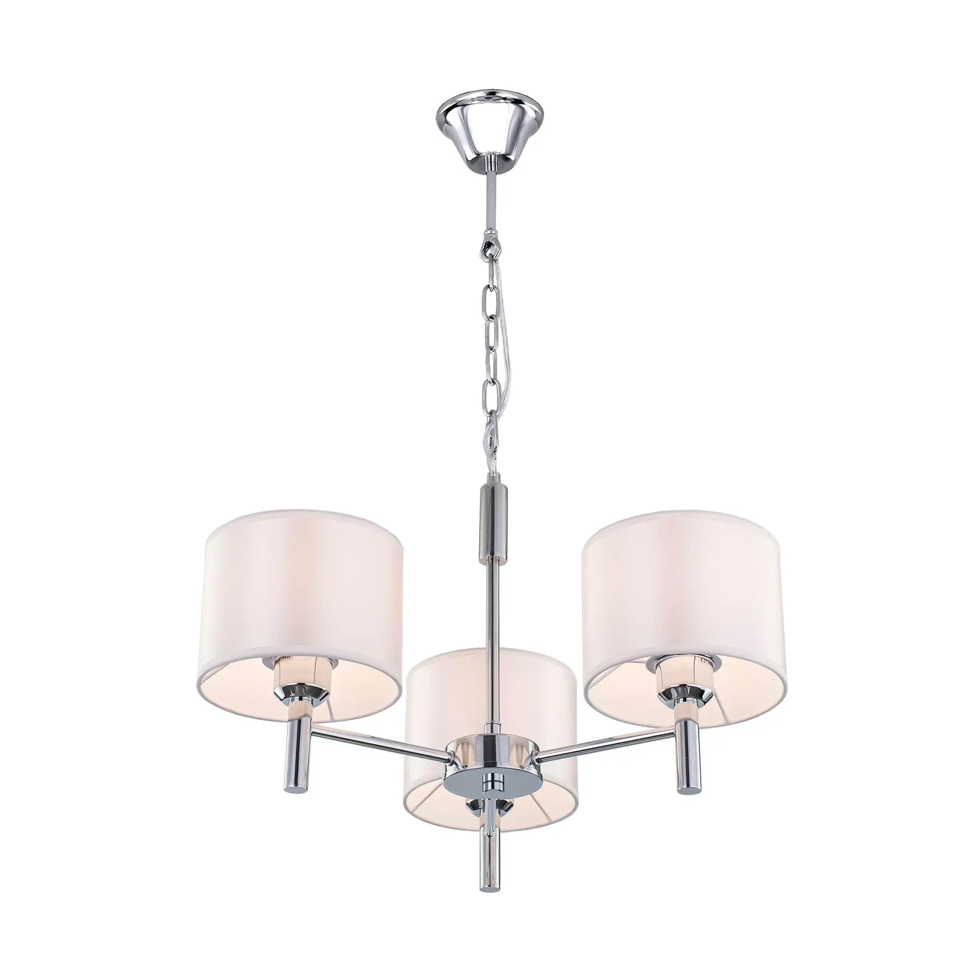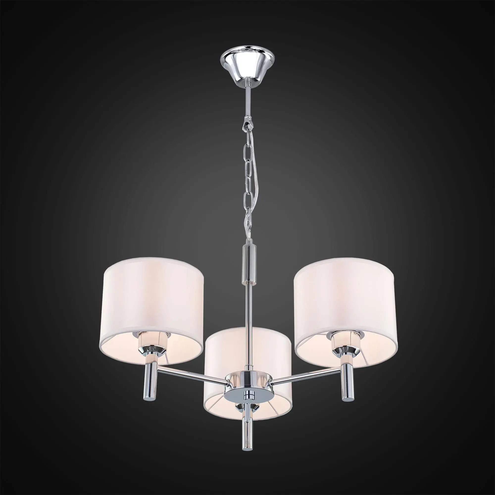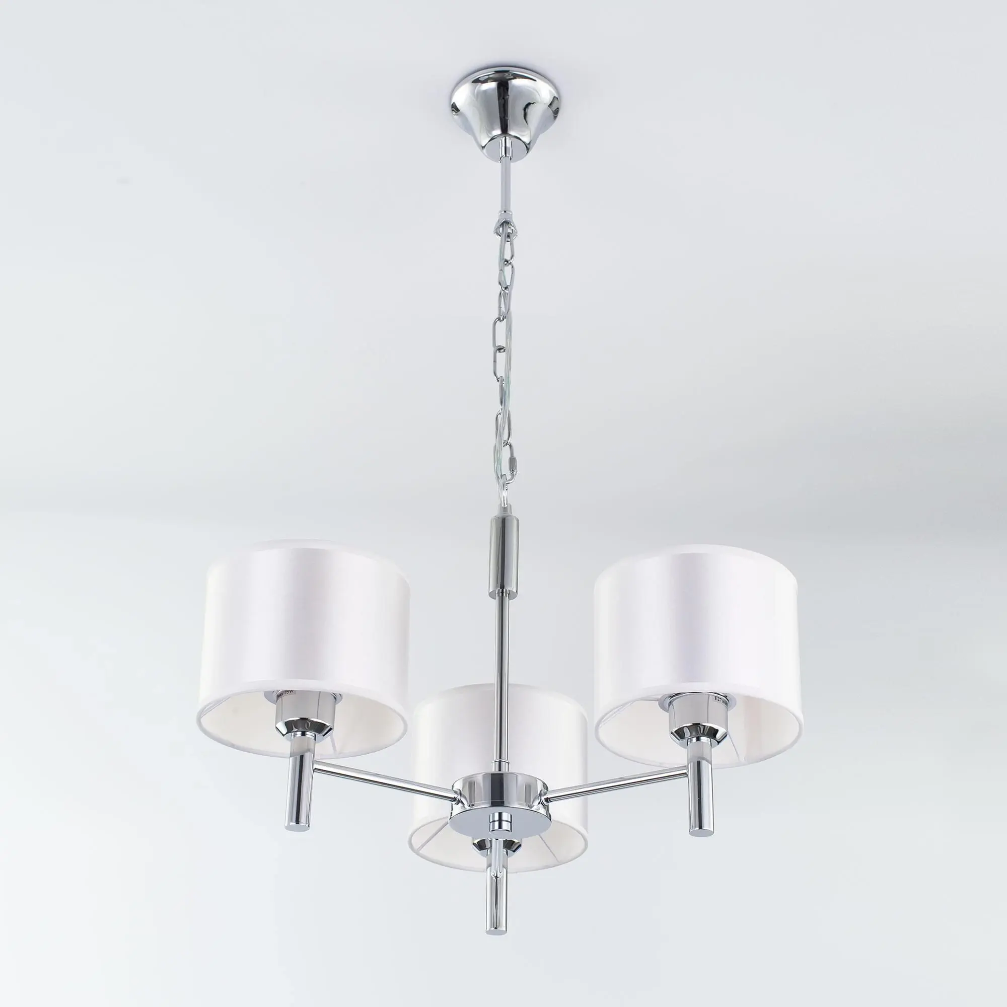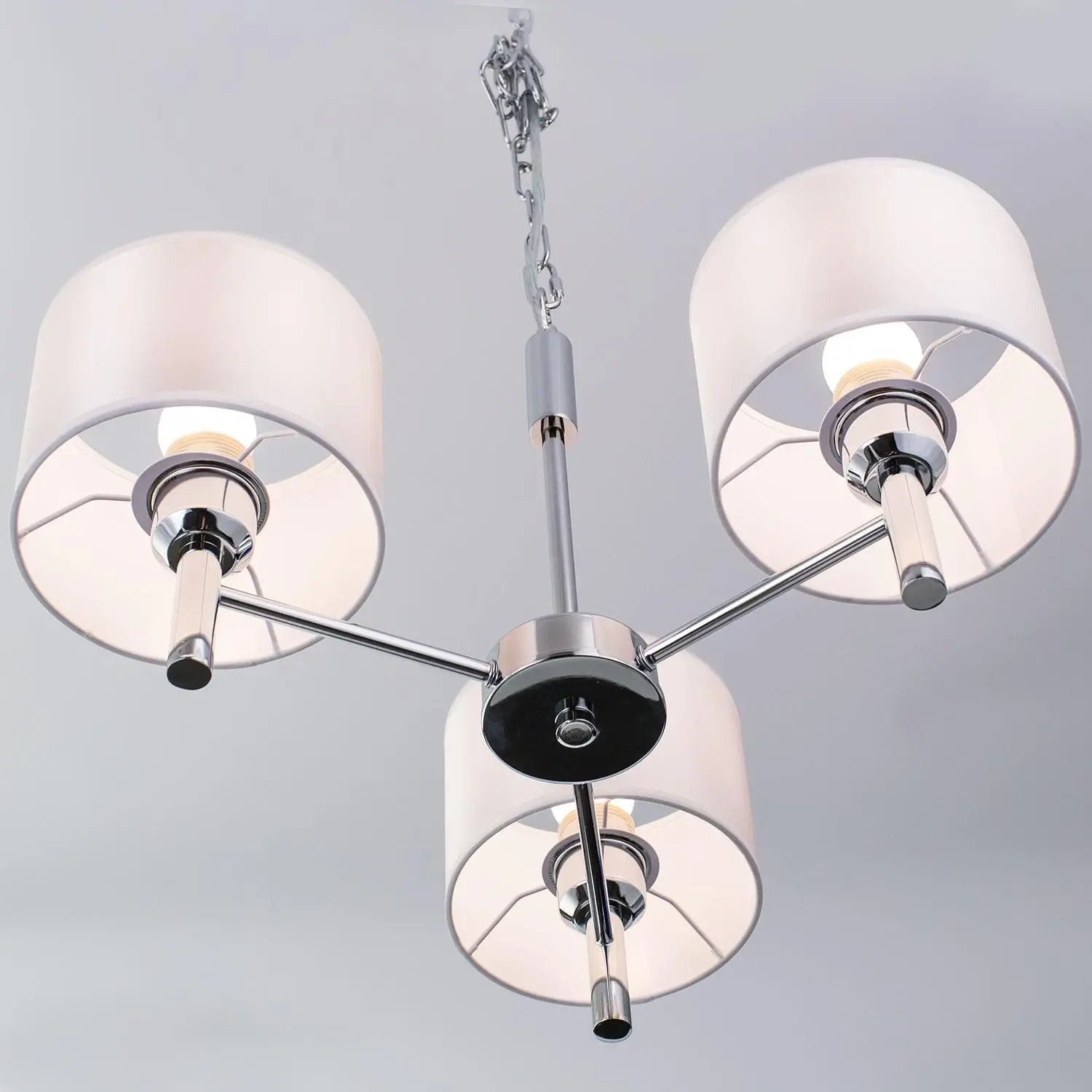 Подвесная люстра Citilux Аврора CL463130 выполнена в современном стиле. Корпус светильника металлический с элегантными рожками, цвет глянцевый хром. Абажуры цилиндрической формы из ткани жемчужно-белого цвета на подложке из оптического полимера.