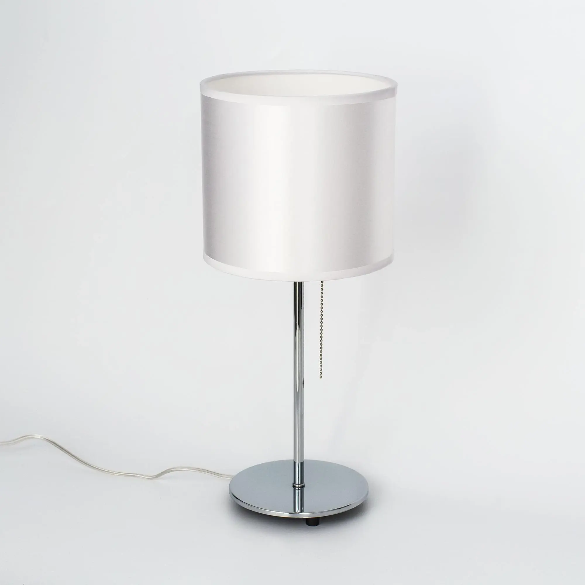 Настольный светильник Citilux Аврора CL463810 выполнен в современном стиле. Корпус металлический, цвет глянцевый хром. Абажур цилиндрической формы из ткани жемчужно-белого цвета на подложке из оптического полимера.