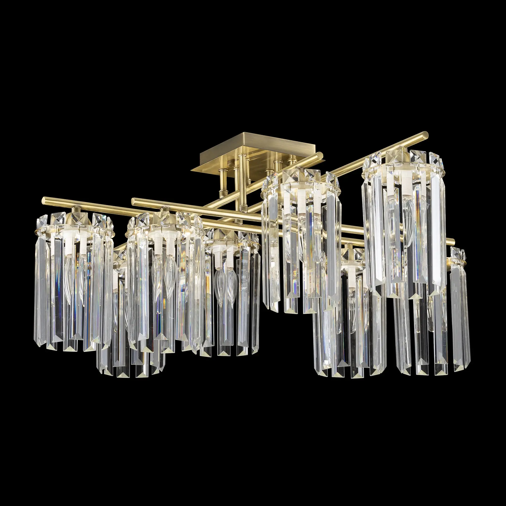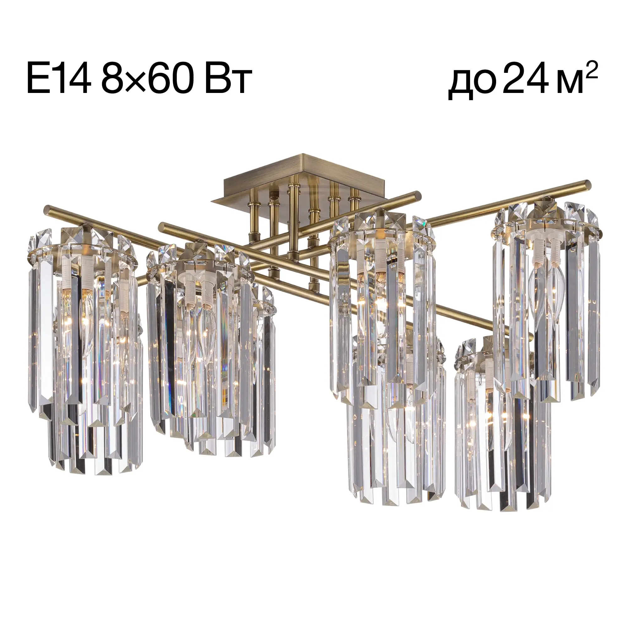 В изделии 8 ламп с цоколем Е14 максимальной мощностью для ламп накаливания 60Вт. Модель легко обеспечит комфортное основное освещение в гостиной, спальне, кухне или кабинете. Светильник совместим с одноклавишным и двухклавишным выключателями, что позволяет регулировать уровень освещённости в помещении. Подходит для всех видов потолков, в том числе натяжных, тип крепления – планка.