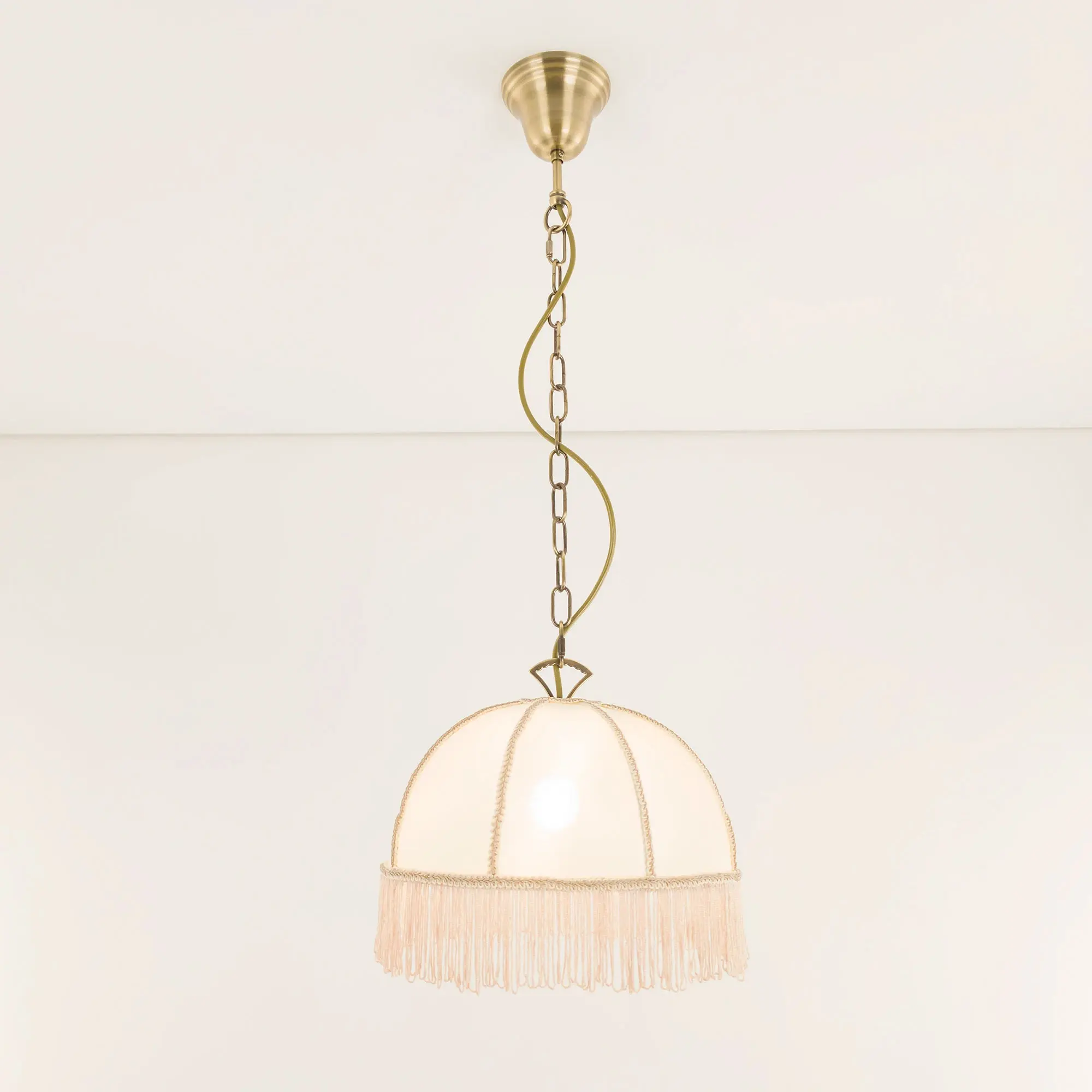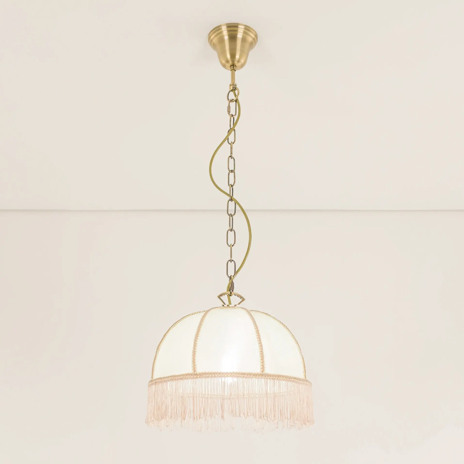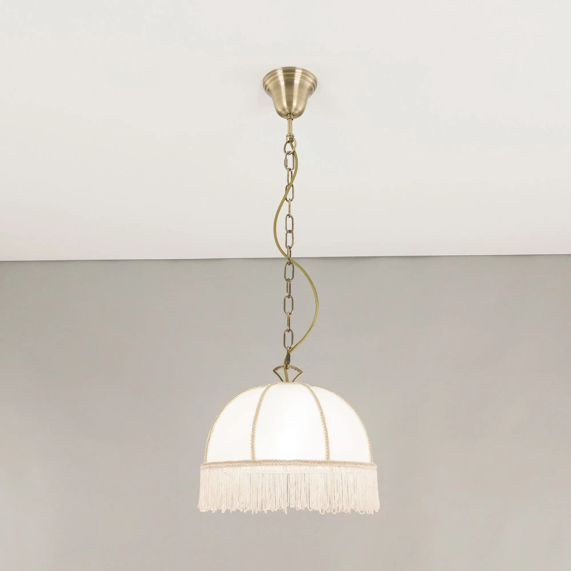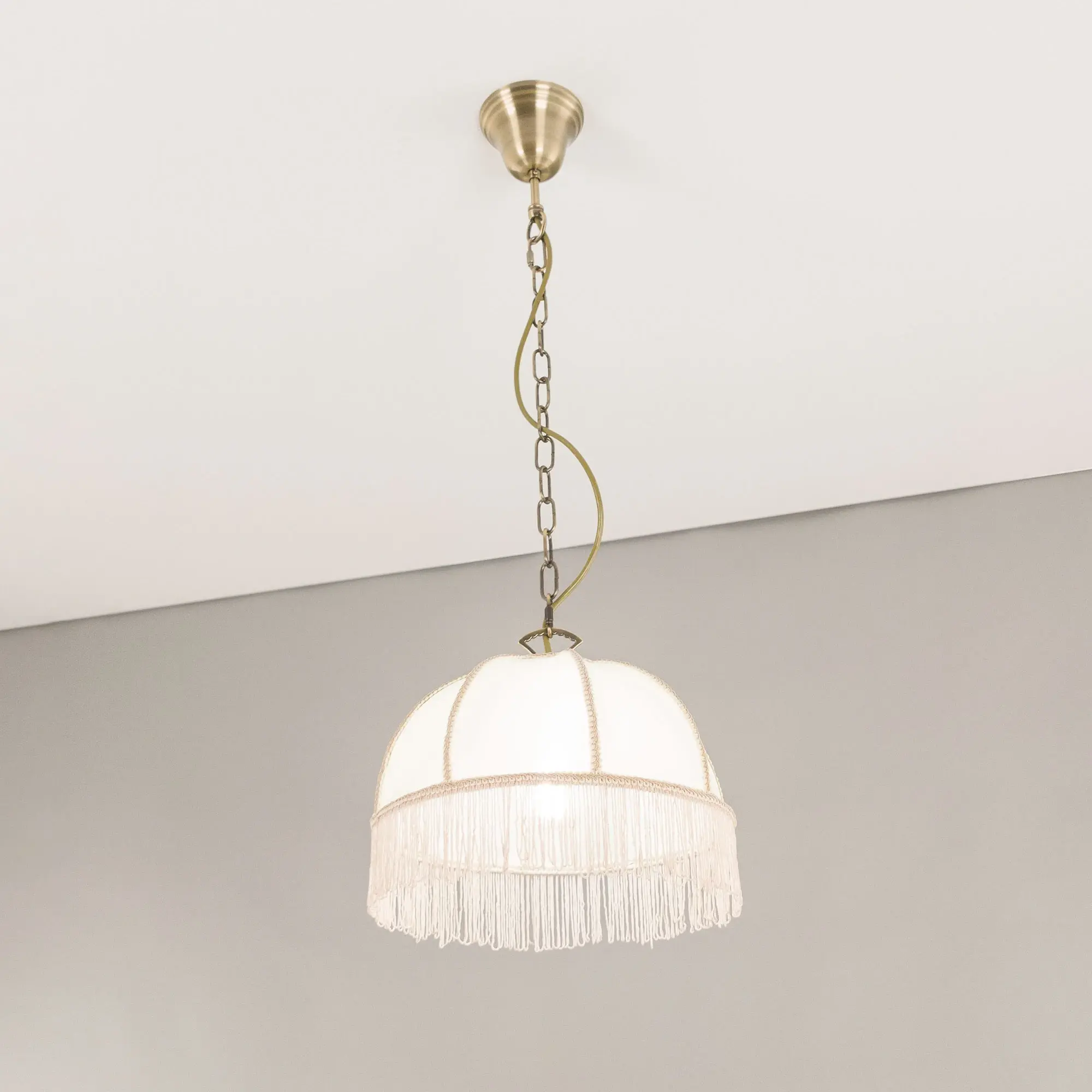Уютный подвесной светильник Citilux Базель CL407111 выполнен в классическом стиле. Основание металлическое, благородного бронзового цвета. Тканевый винтажный абажур кремового цвета декорирован оригинальной ажурной тесьмой и искусно обшит бахромой.