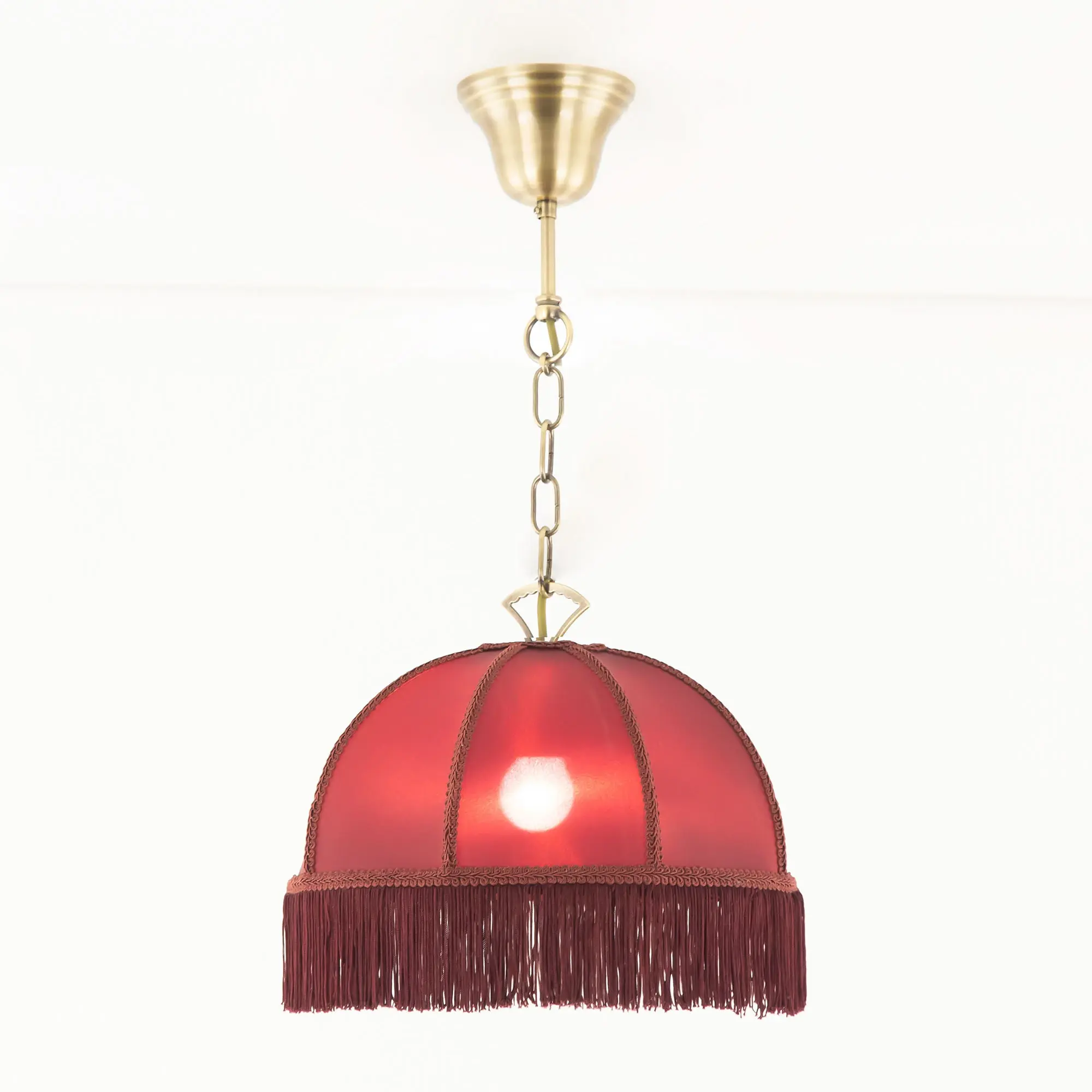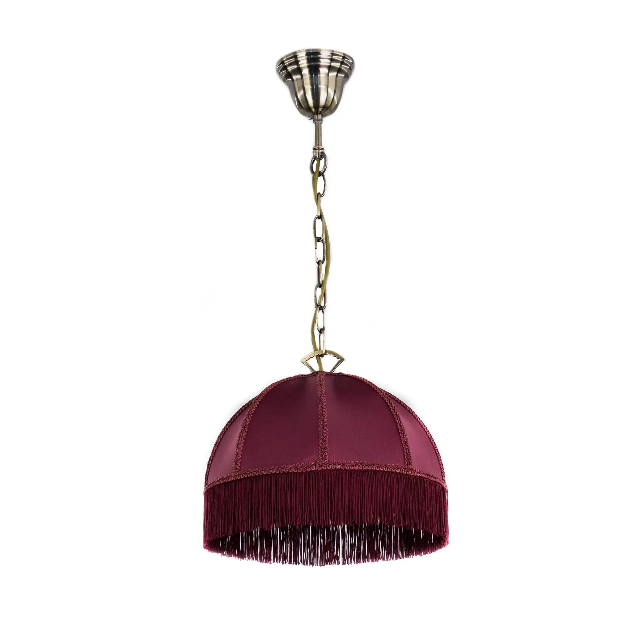 Уютный подвесной светильник Citilux Базель CL407113 выполнен в классическом стиле. Основание металлическое, благородного бронзового цвета. Тканевый винтажный абажур бордового цвета декорирован ажурной тесьмой и искусно обшит бахромой.