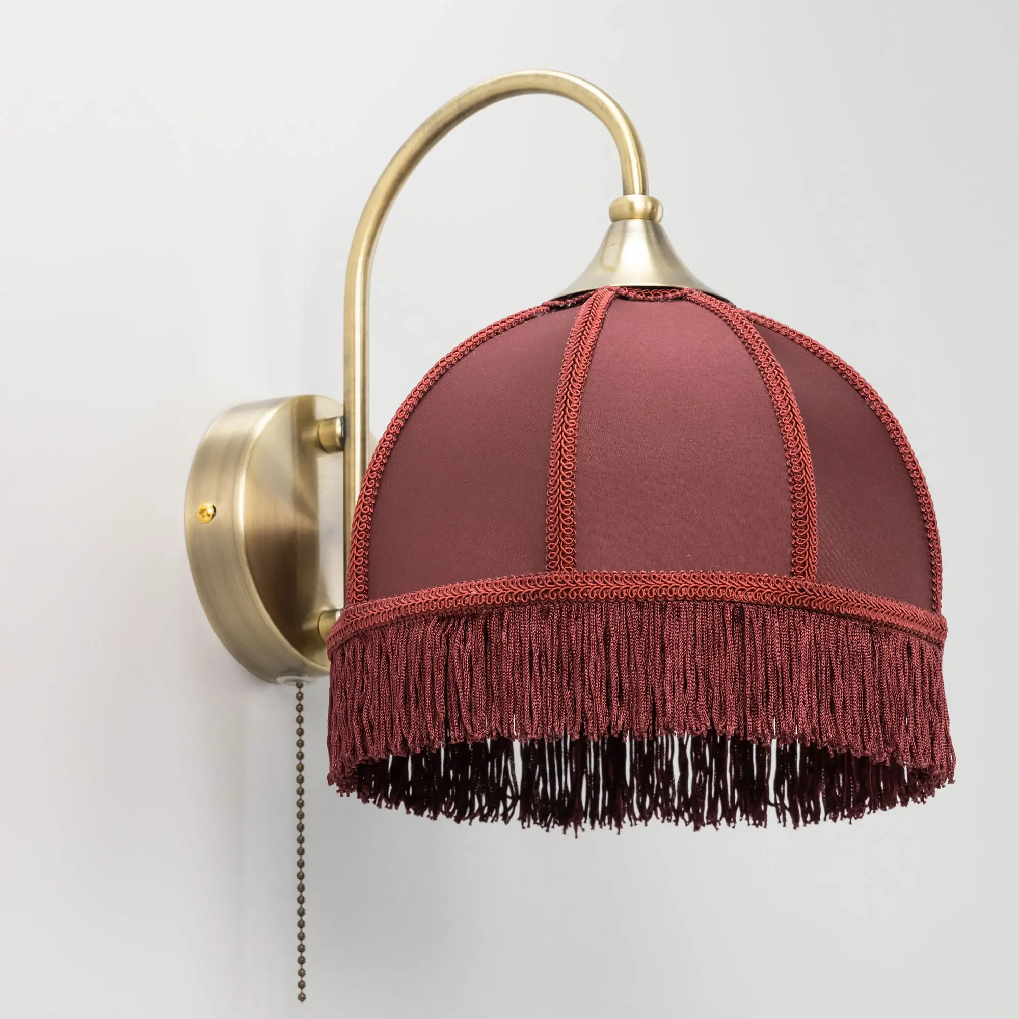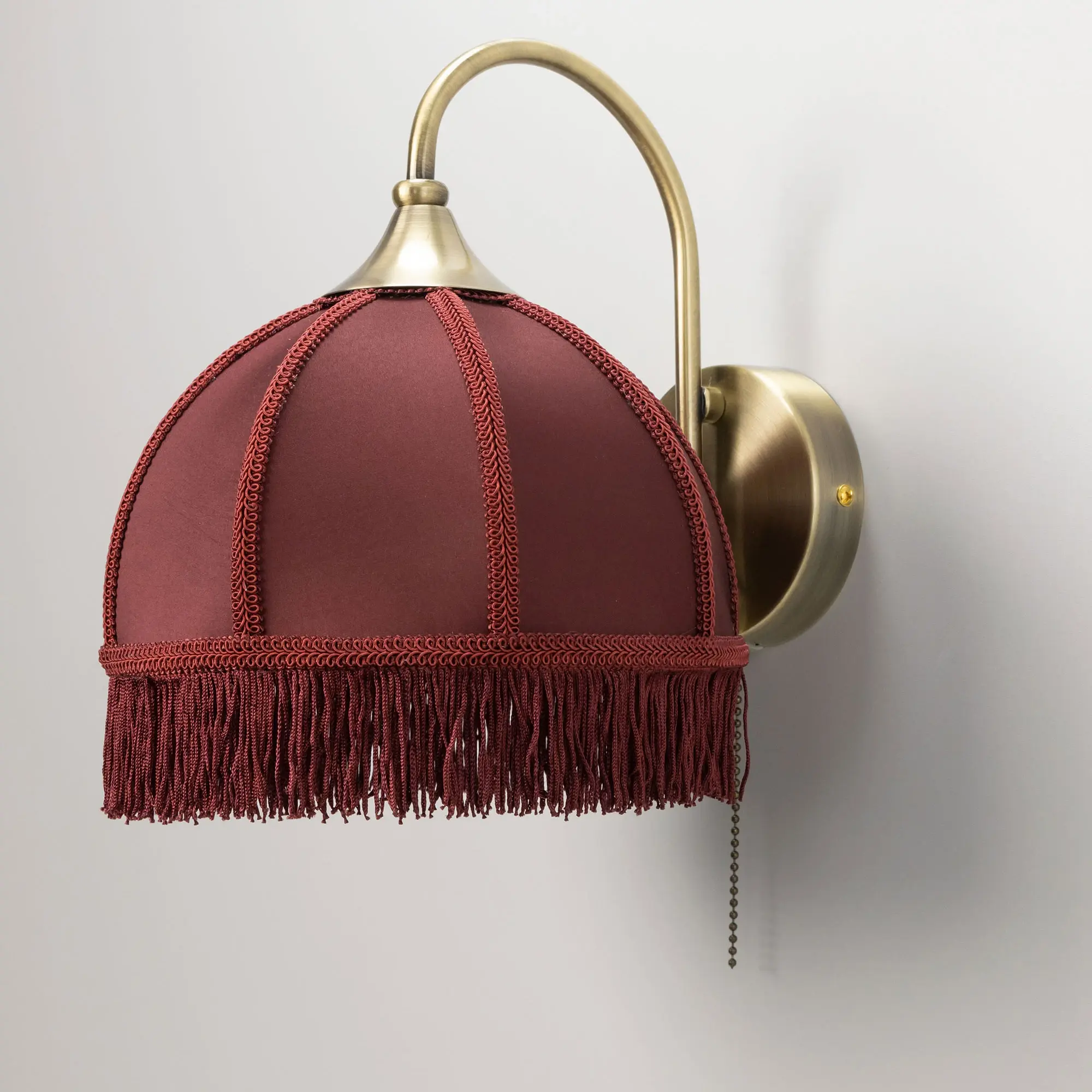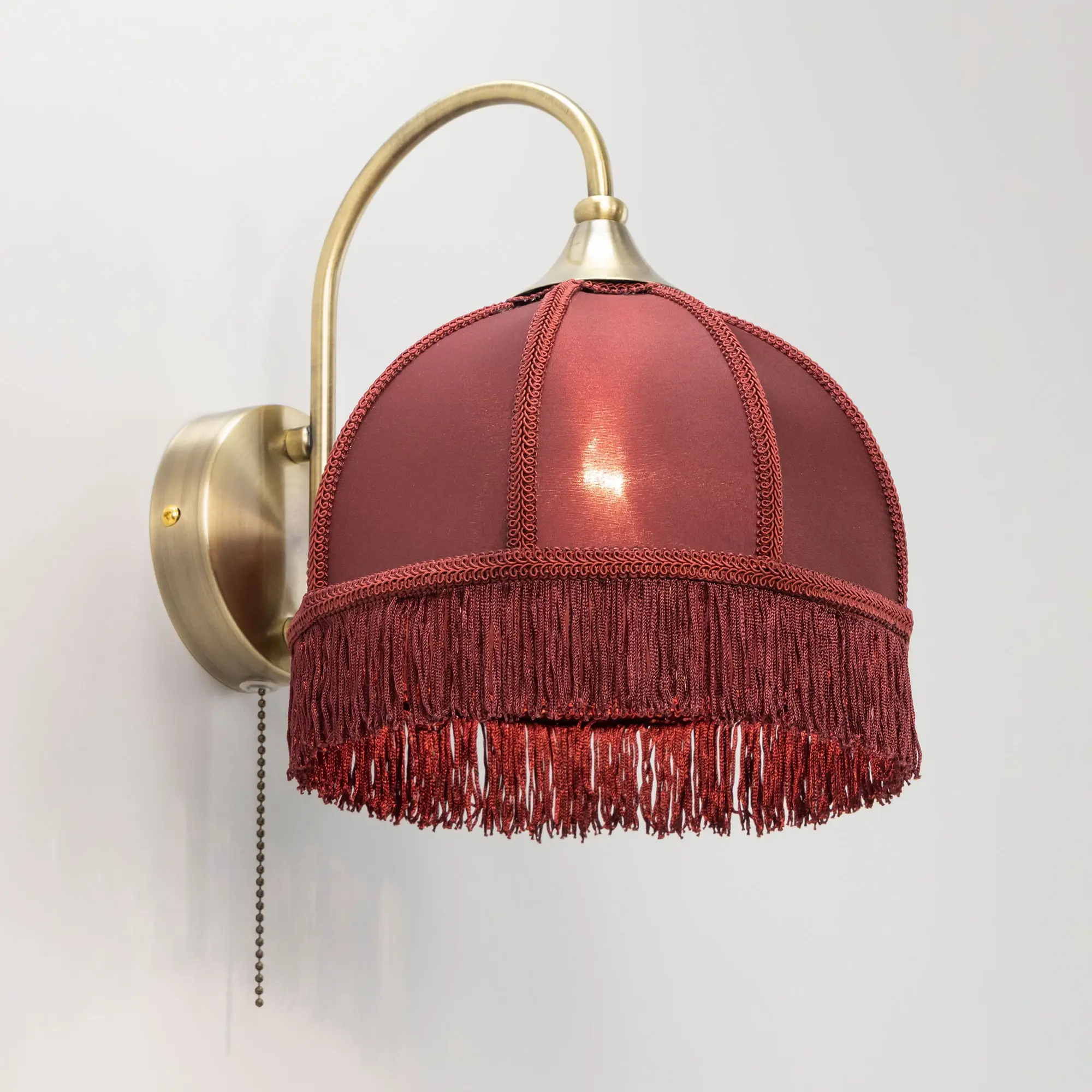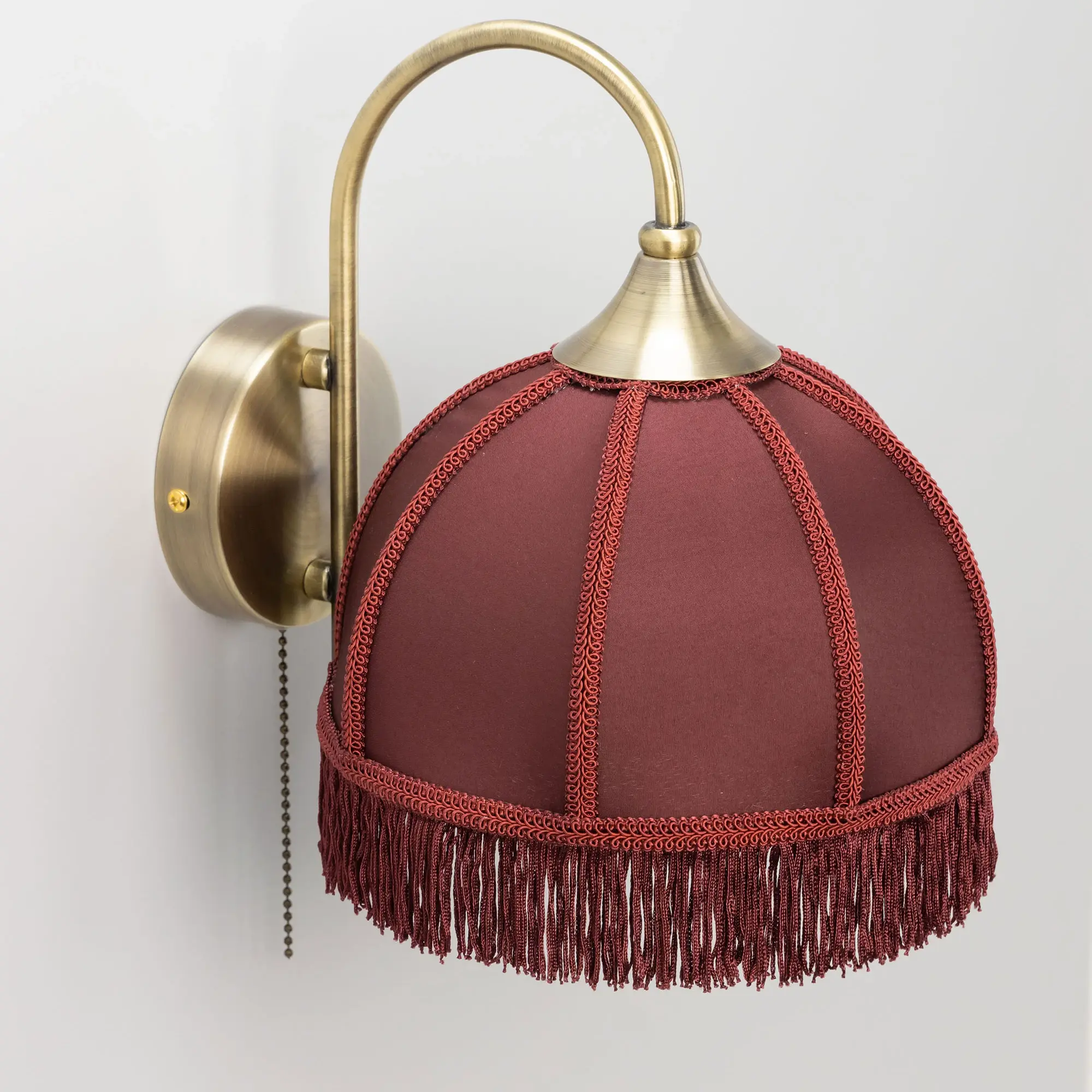 Классическое бра Citilux Базель CL407313 с бордовым абажуром и удобным выключателем. Корпус светильника металлический, цвет бронза. Абажур тканевый, декорирован бахромой и ажурной тесьмой. Модель подойдёт для освещения уютной гостиной, кухни, веранды в загородном доме или на даче. Поможет создать комфортную атмосферу в кафе и ресторане. В изделии используется лампа с цоколем Е27, максимальной мощностью для ламп накаливания 40Вт, светодиодные лампы можно устанавливать более яркие. Высота 26см, ширина 20см, глубина 27см.