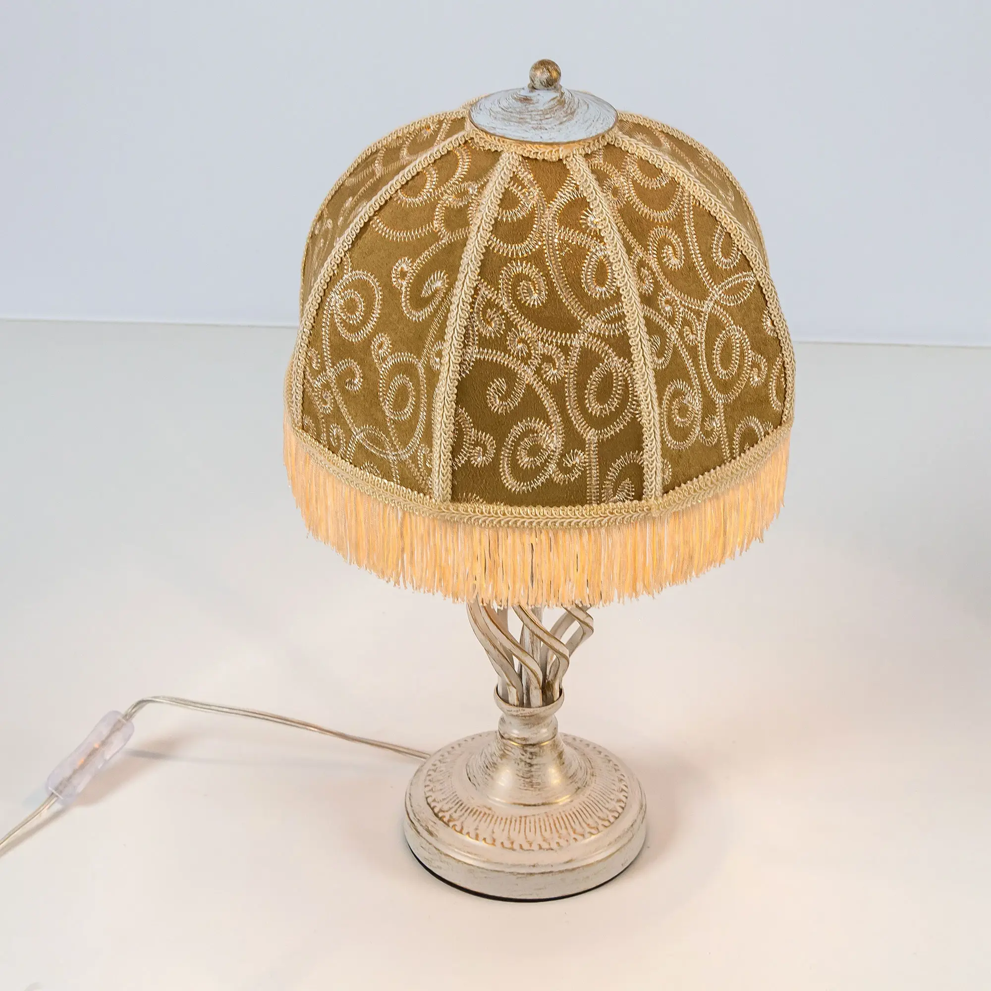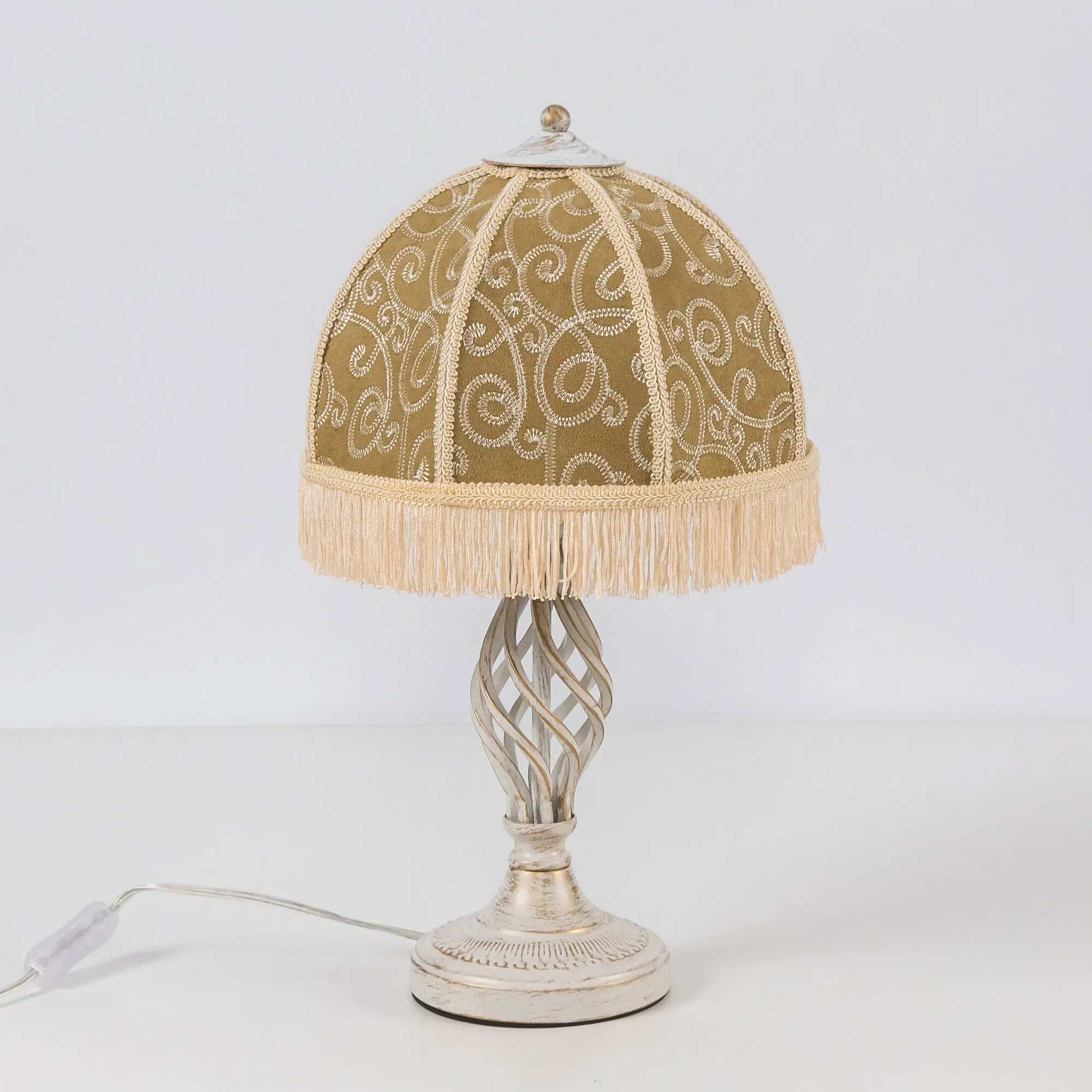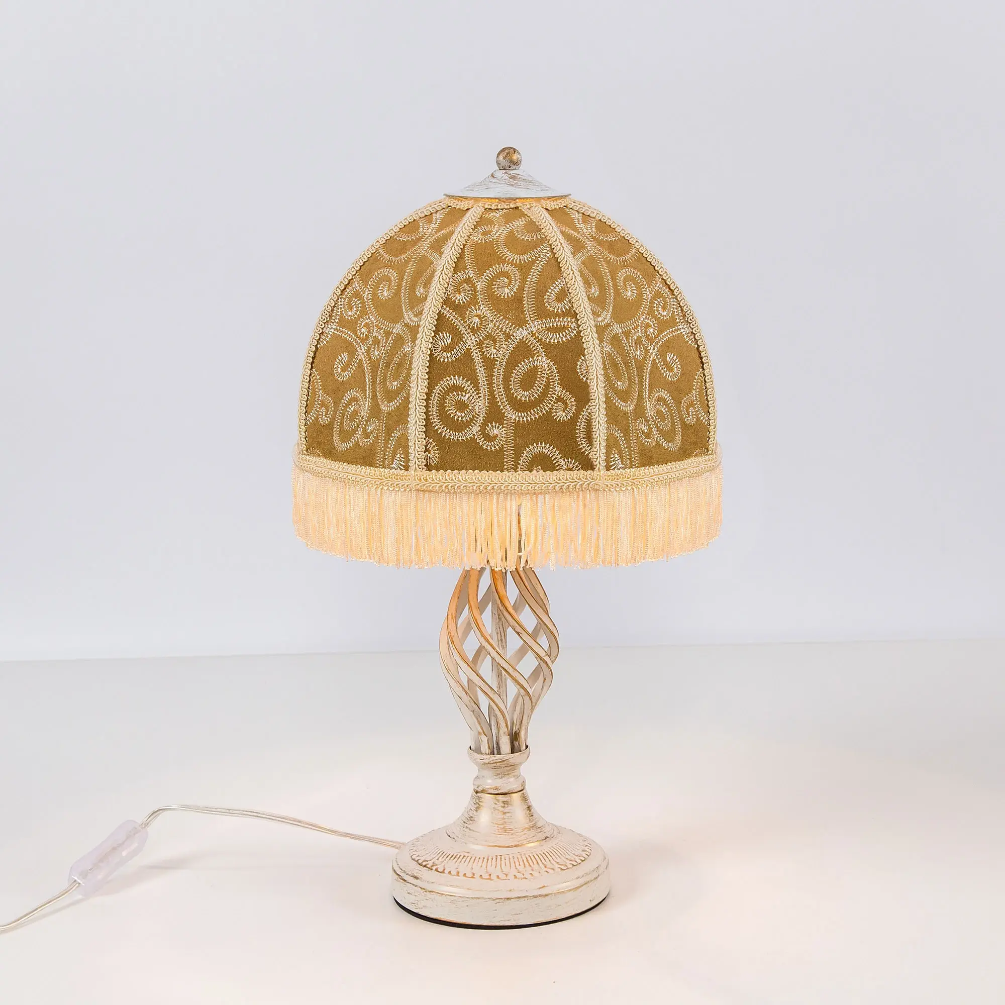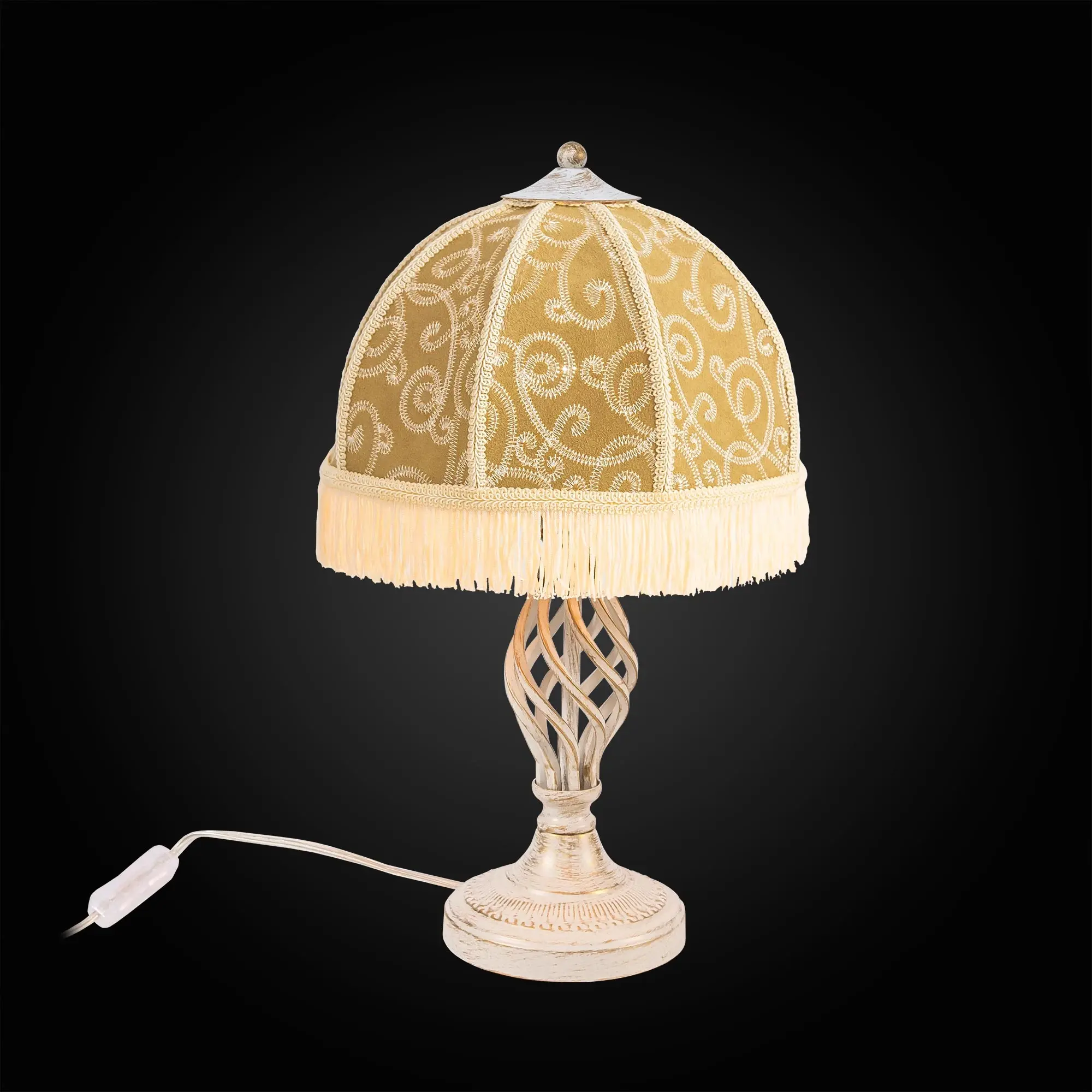 Уютный настольный светильник Citilux Базель CL407805 с классическим абажуром. Основание металлическое, цвет белый с золотистой патиной. Абажур тканевый, цвета капучино, украшен изящной вышивкой и декорирован бахромой. В изделии используется лампа с цоколем Е27, максимальной мощностью для ламп накаливания 20Вт. Светодиодные лампы можно устанавливать более яркие. Сетевой провод длиной 180см с выключателем, который находится на расстоянии 20см от основания настольной лампы. Модель прекрасно подойдет для интерьеров, оформленных в классическом стиле.