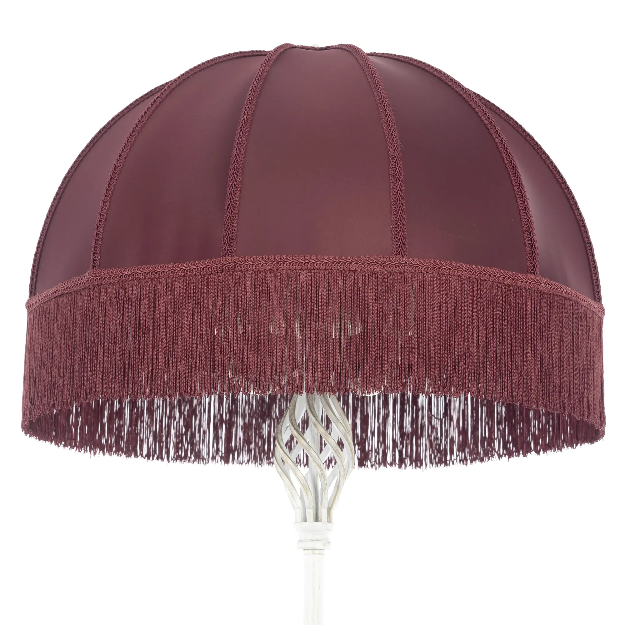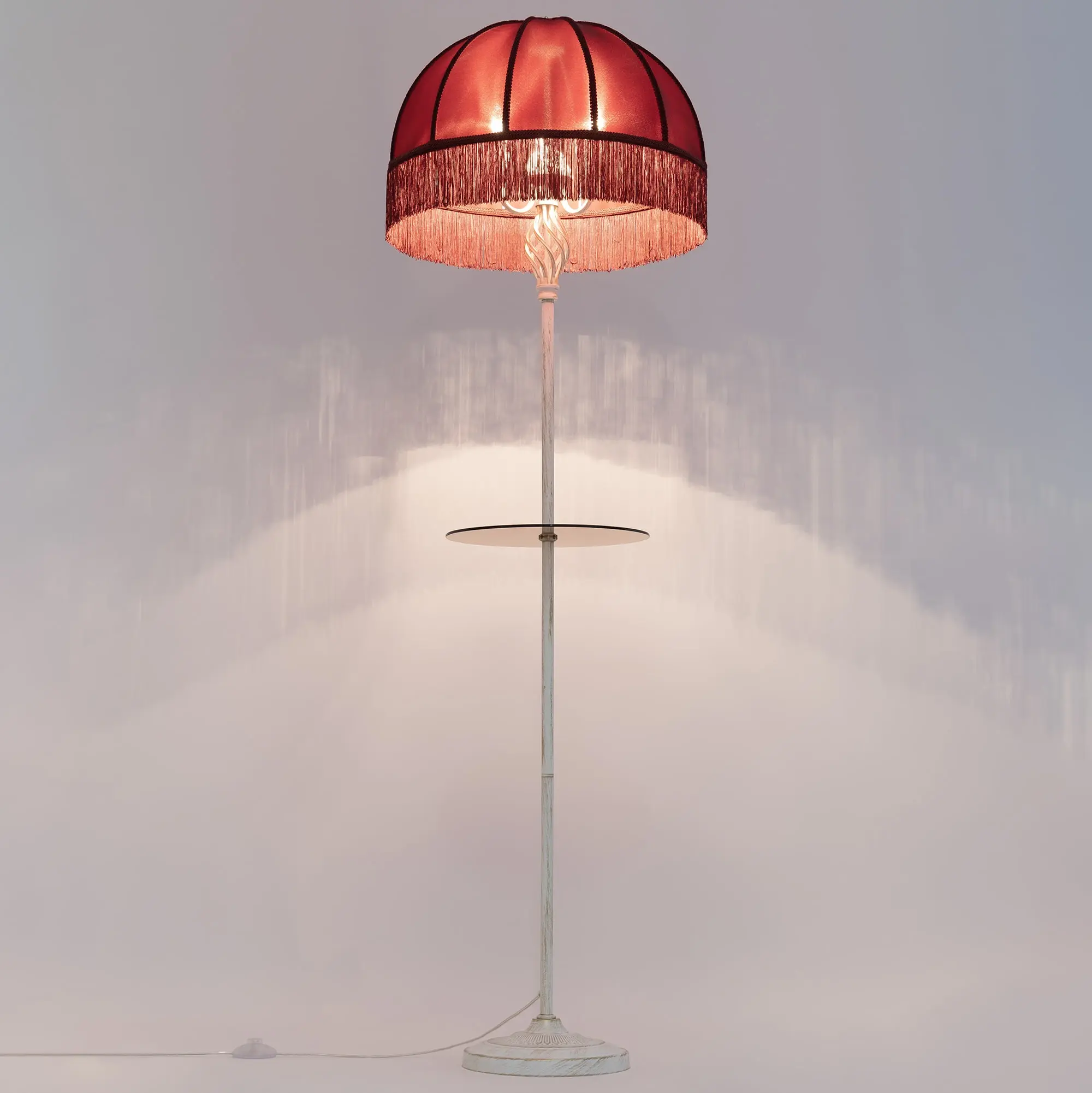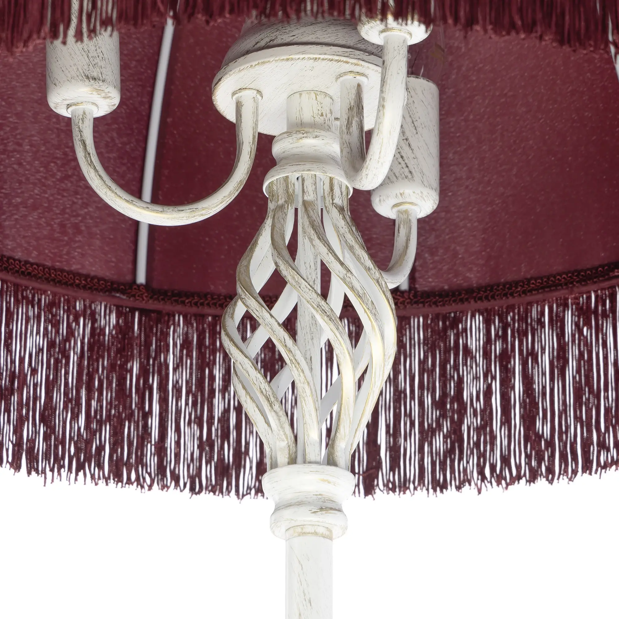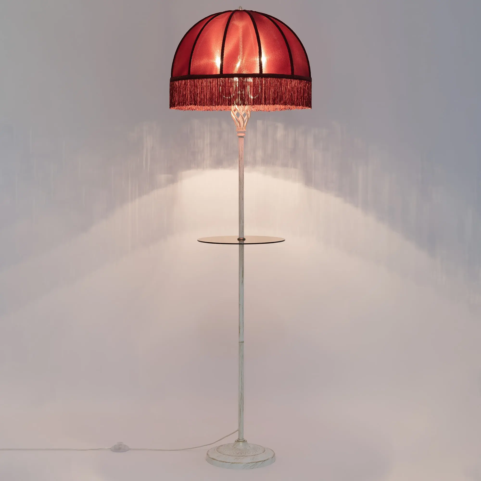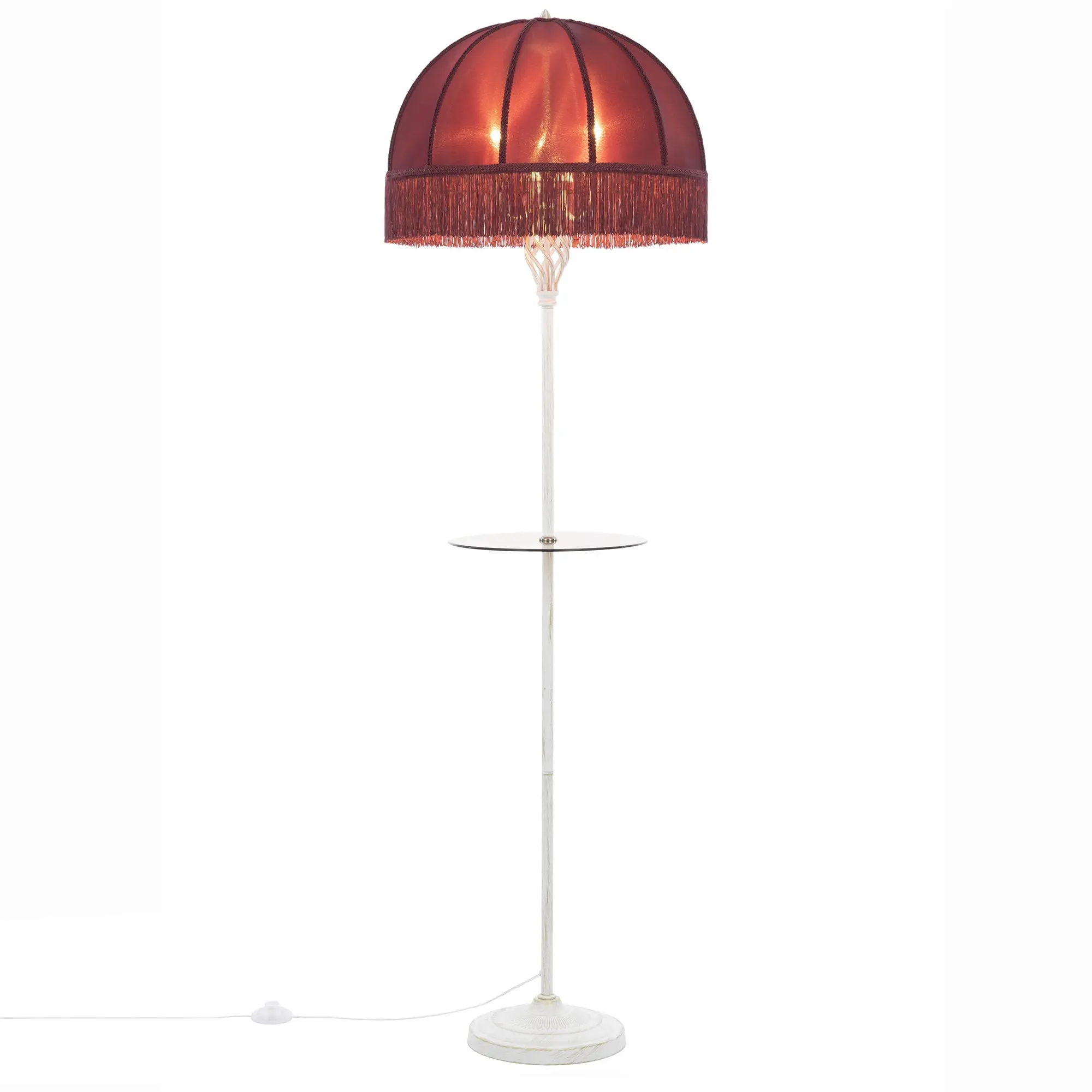 Красивый торшер со столиком Citilux Базель CL407923T выполнен в классическом стиле. Корпус металлический, белого цвета с благородной патиной. Устойчивое основание украшено искусным орнаментом, верхняя часть стойки с витым декоративным элементом. Абажур из гладкой тёмно-вишнёвой ткани декорирован ажурной тесьмой и обшит бахромой. Удобный круглый столик изготовлен из закалённого тонированного стекла.