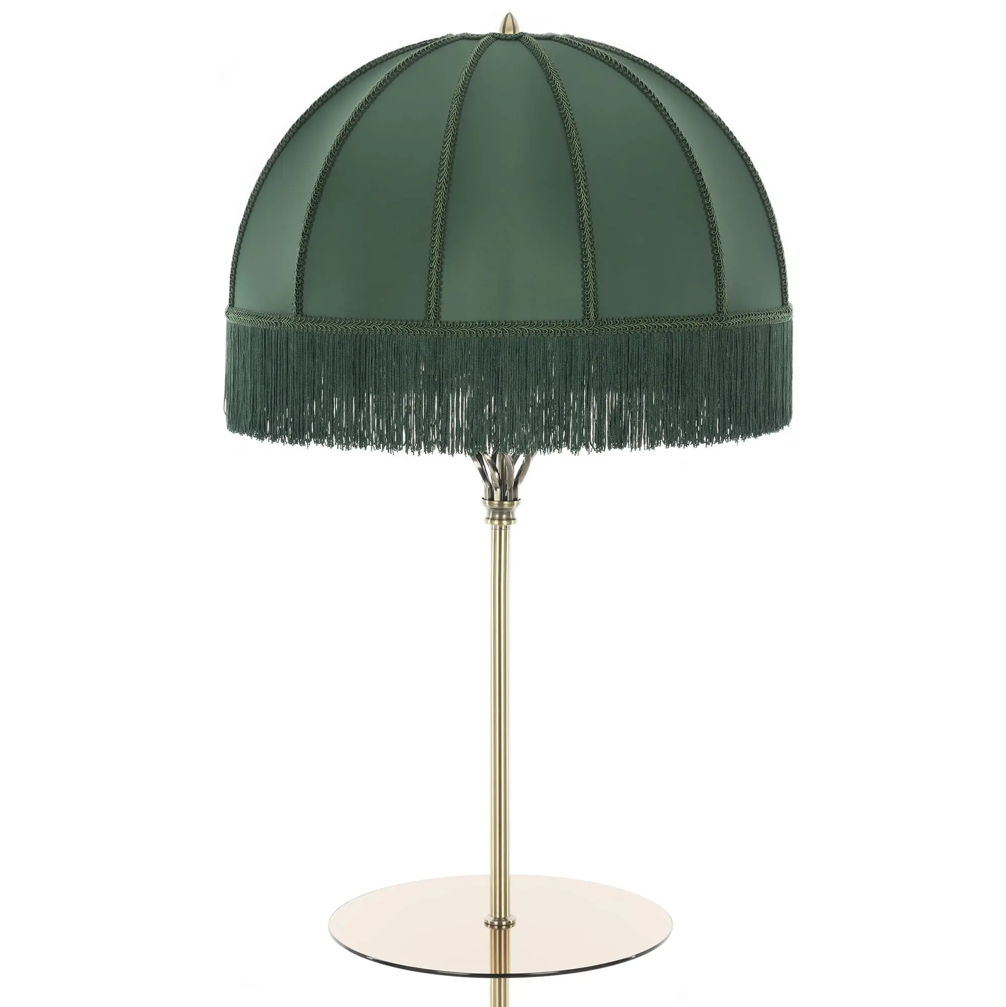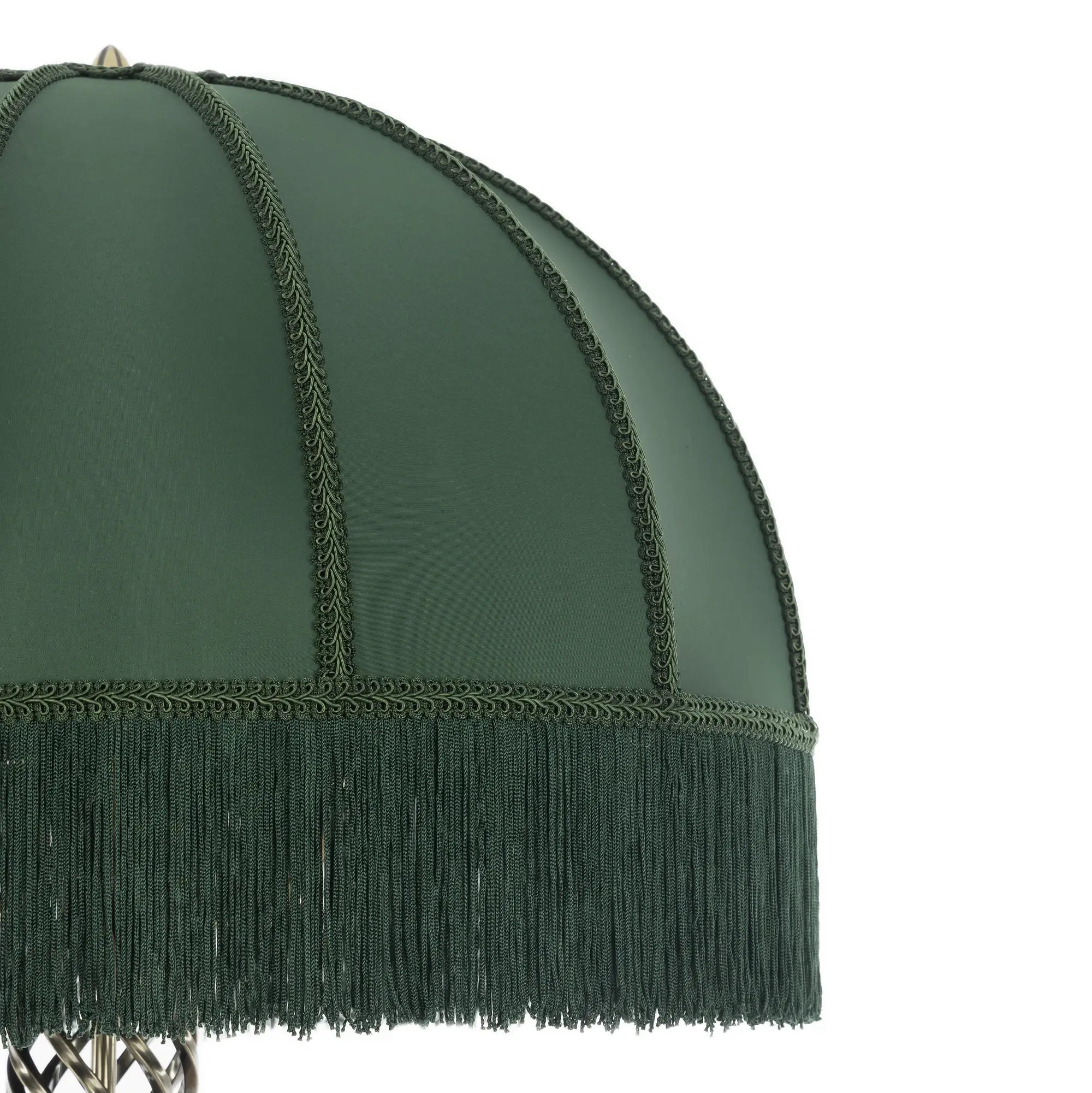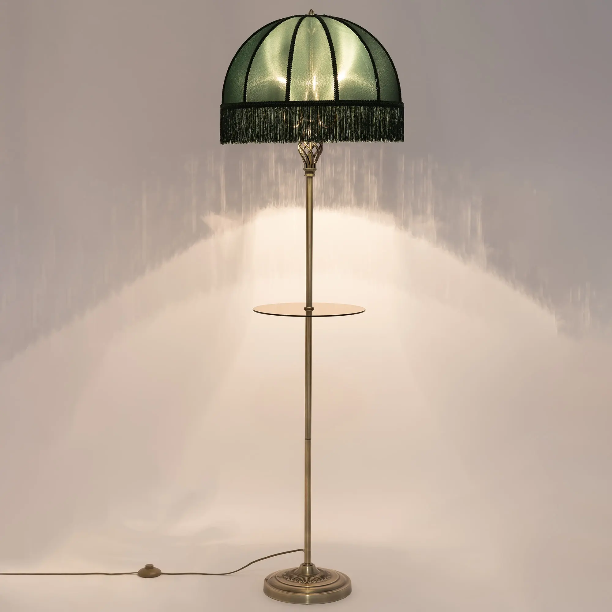 Изумительный торшер со столиком Citilux Базель CL407932T выполнен в классическом стиле. Корпус металлический, благородного бронзового цвета. Устойчивое основание украшено искусным орнаментом, верхняя часть стойки с красивым витым декоративным элементом. Абажур из гладкой зелёной ткани декорирован ажурной тесьмой и обшит бахромой. Удобный круглый столик изготовлен из закалённого тонированного стекла.