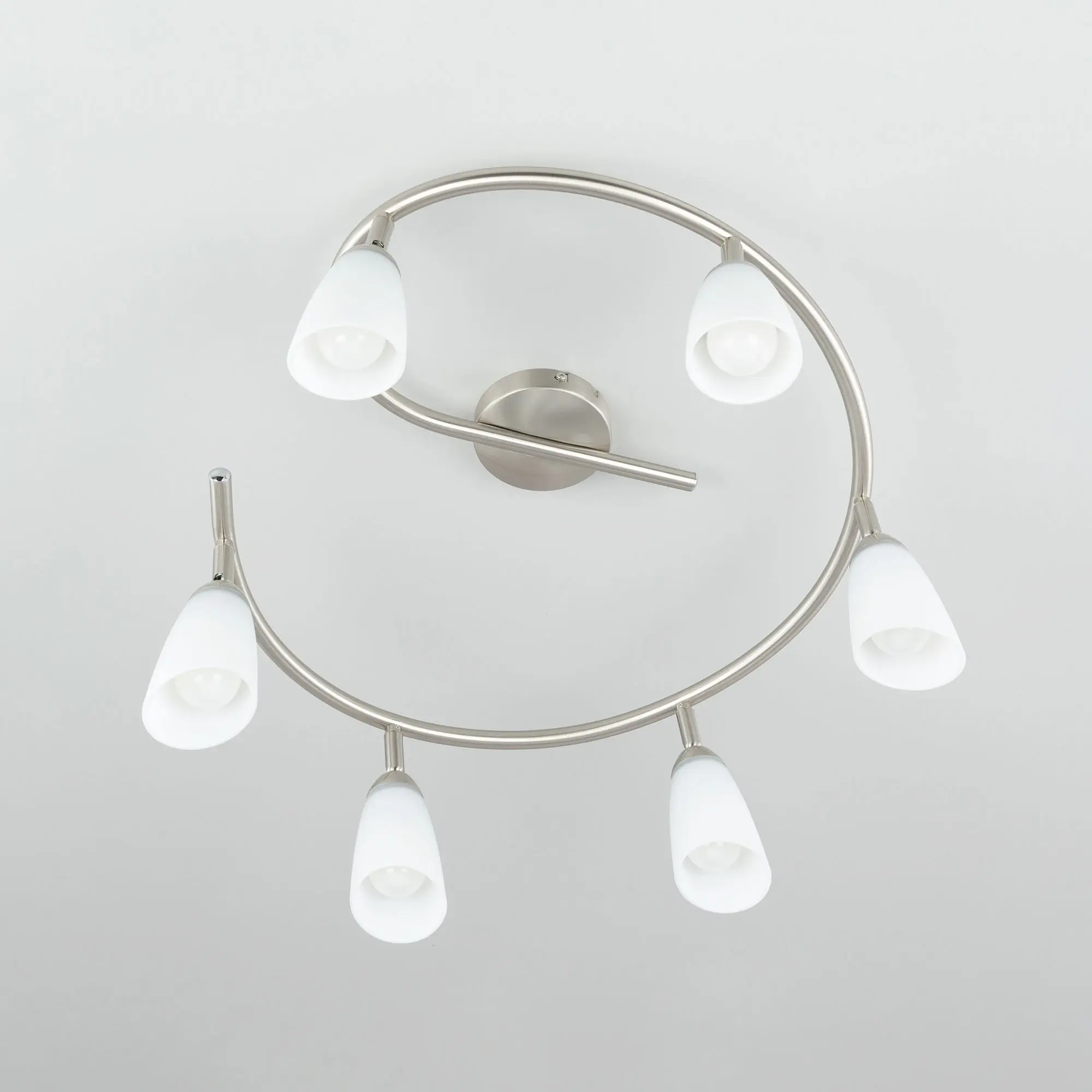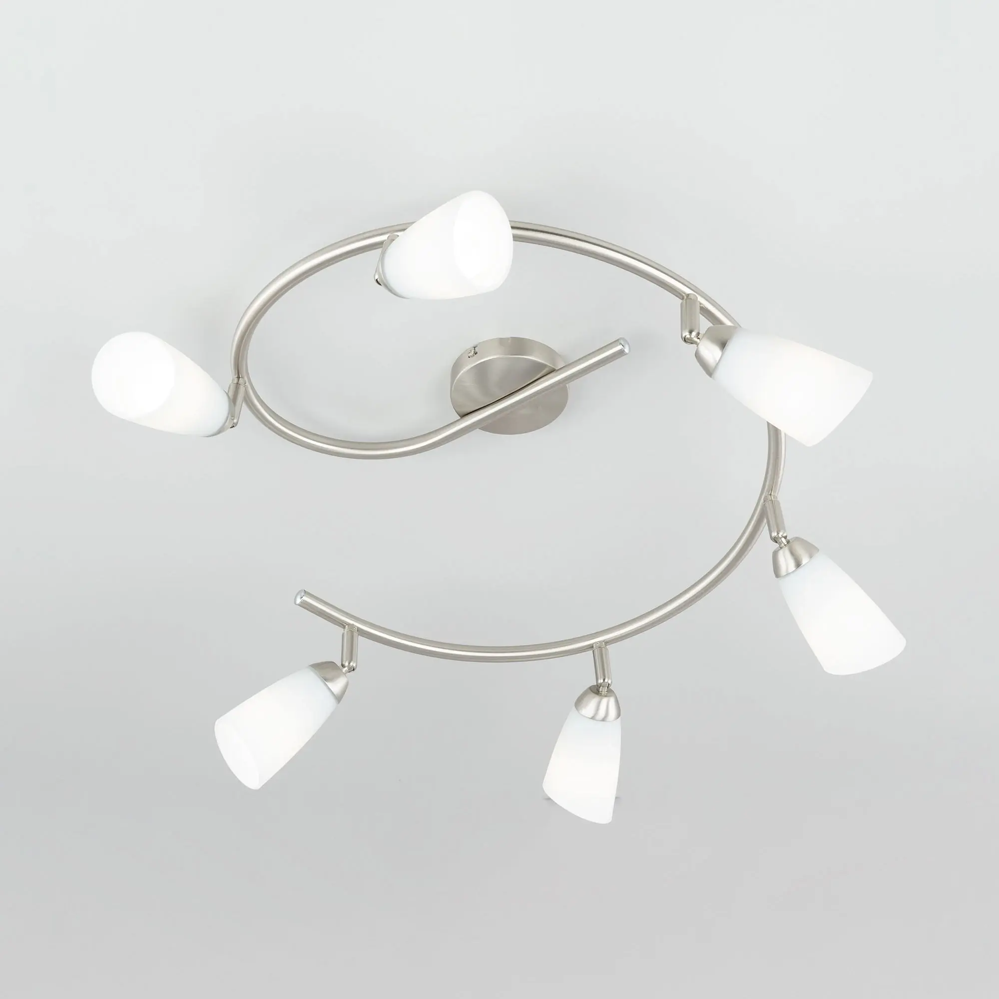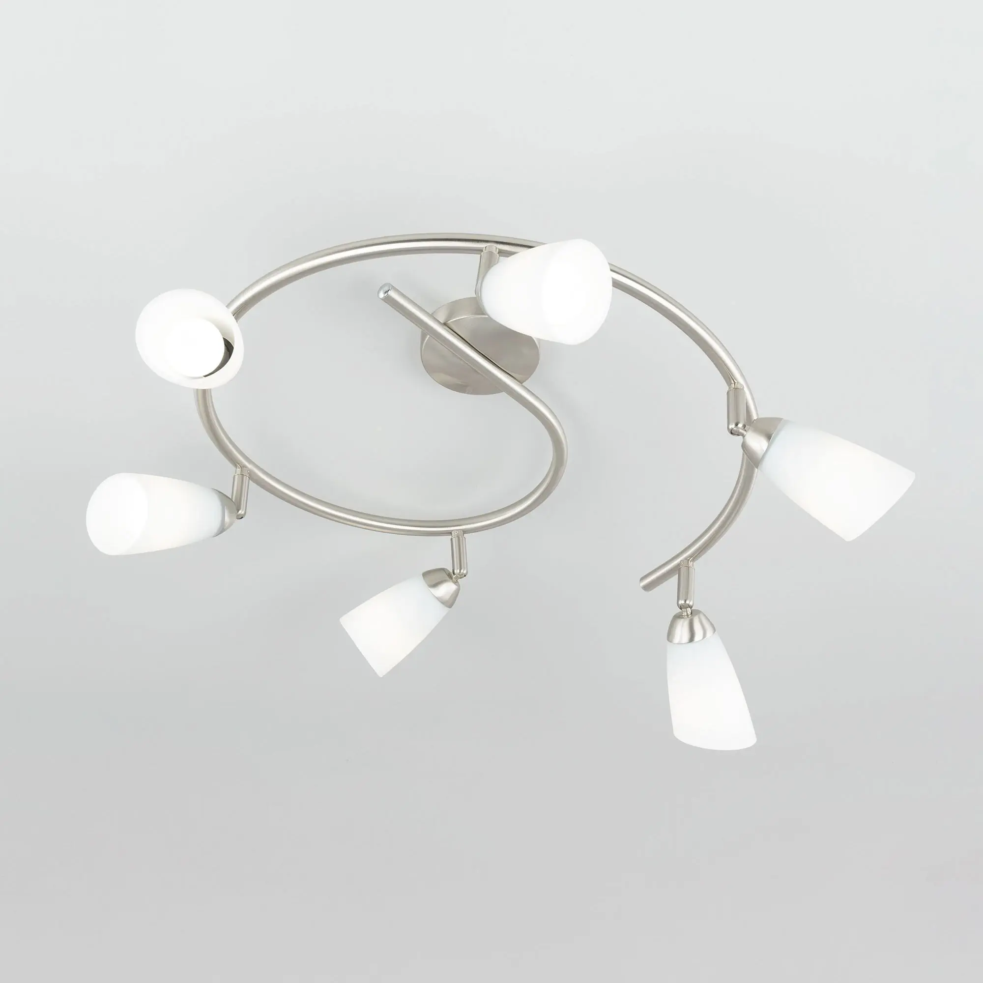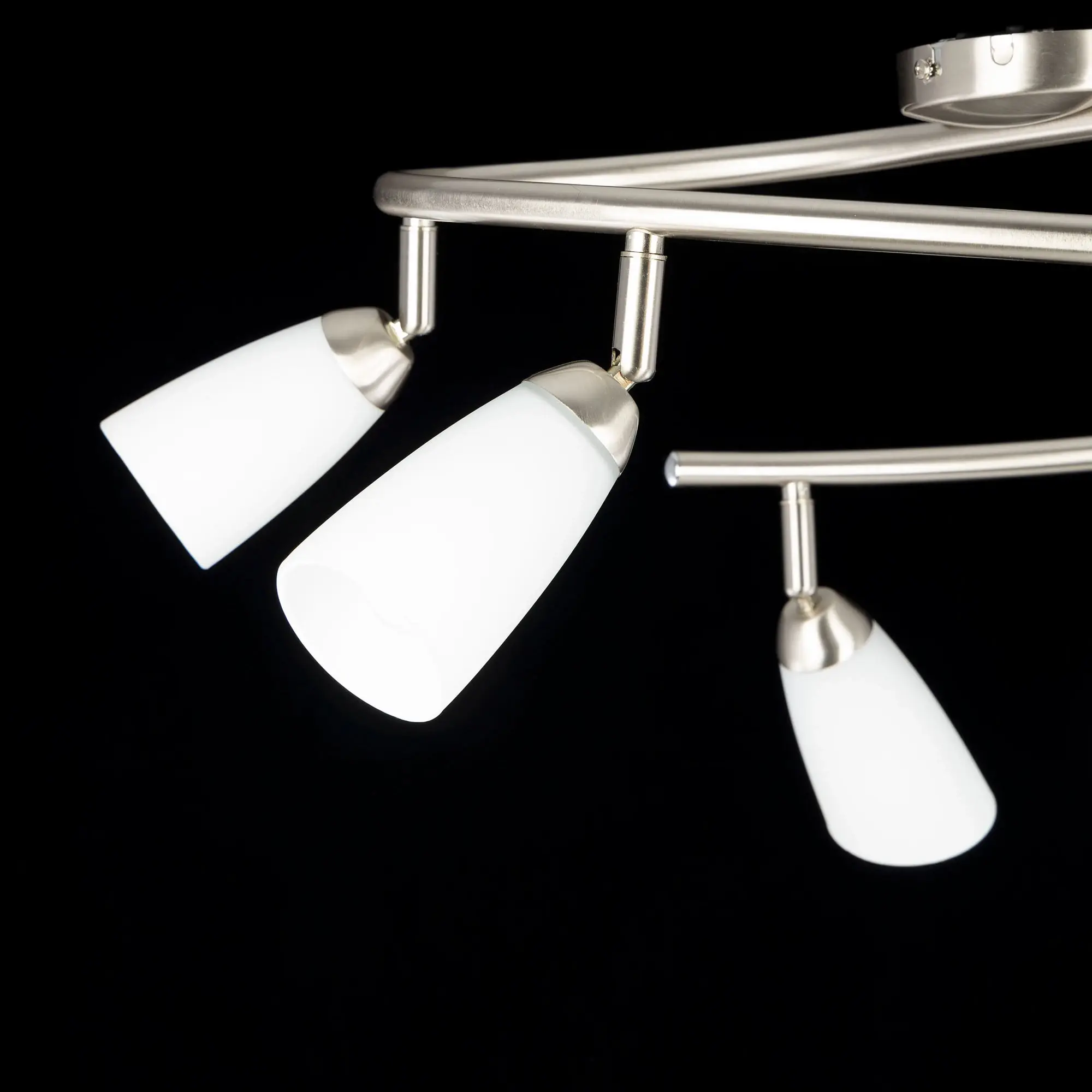 Потолочный светильник Citilux Белла CL501161 в современном стиле. Основание металлическое, в виде спирали, цвет матовый хром. Плафоны из белого матового стекла, на поворотных стойках, можно направить в разные стороны. В изделии используются 6 ламп с цоколем Е14, максимальной мощностью для ламп накаливания 60Вт (в комплект не входят, приобретаются отдельно). Светильник подходит для всех типов потолков, в том числе натяжных, тип крепления – планка. Спот спираль Citilux Белла CL501161 прекрасный выбор для освещения небольшой гостиной, уютной спальни, строгого кабинета и комфортной кухни