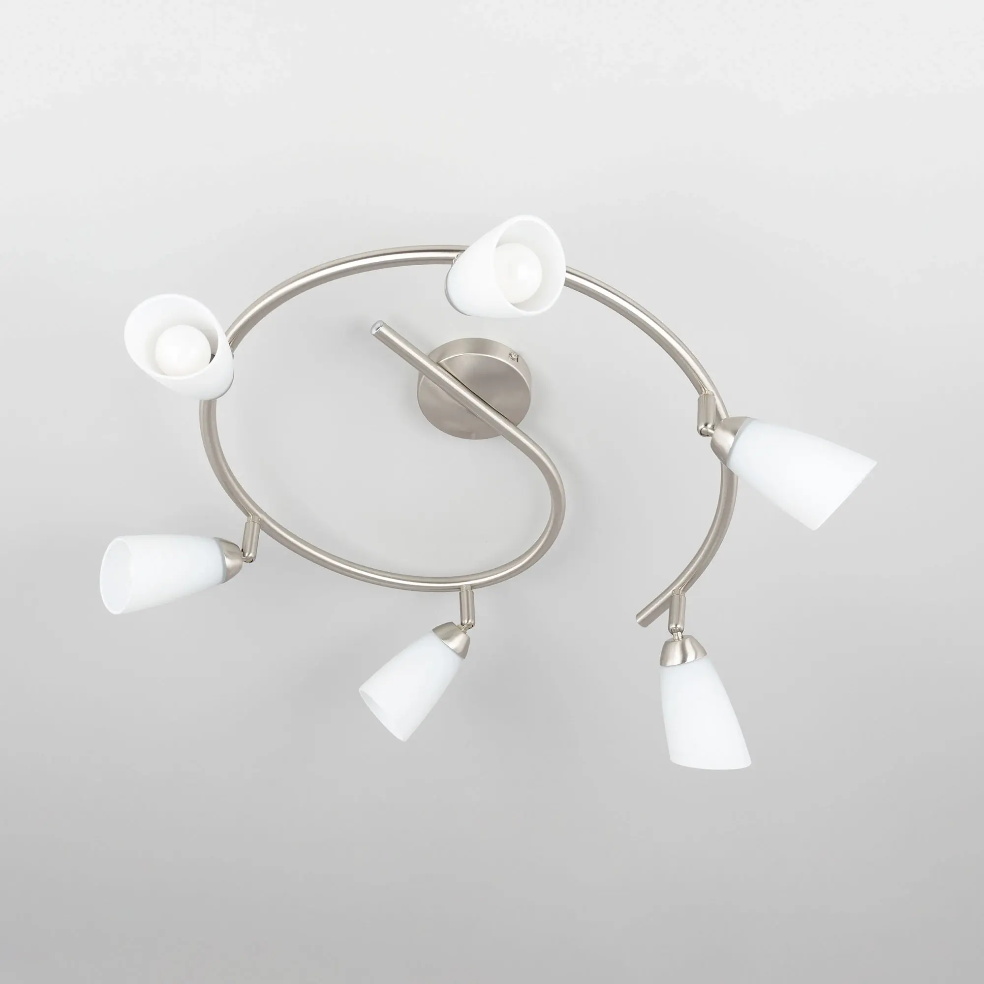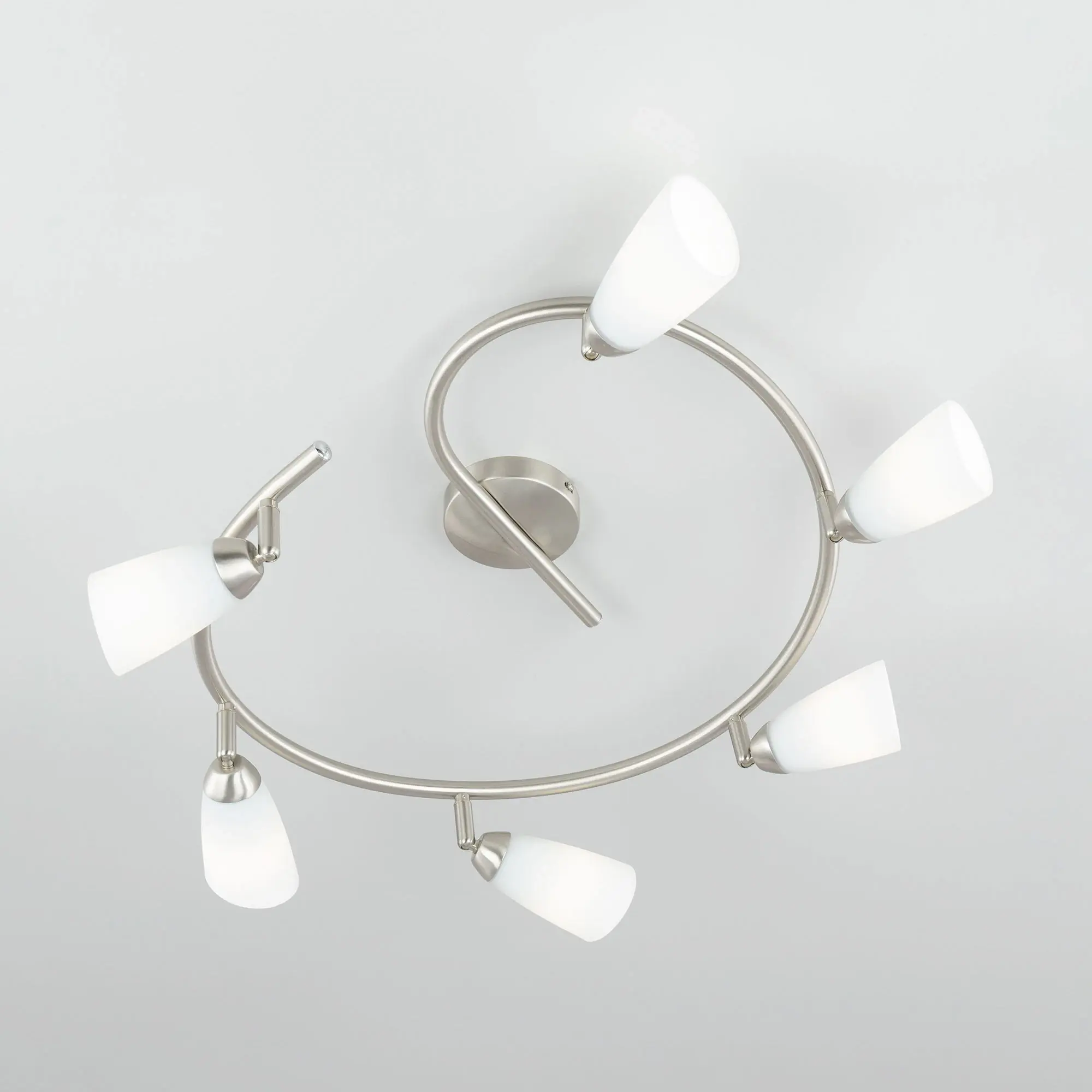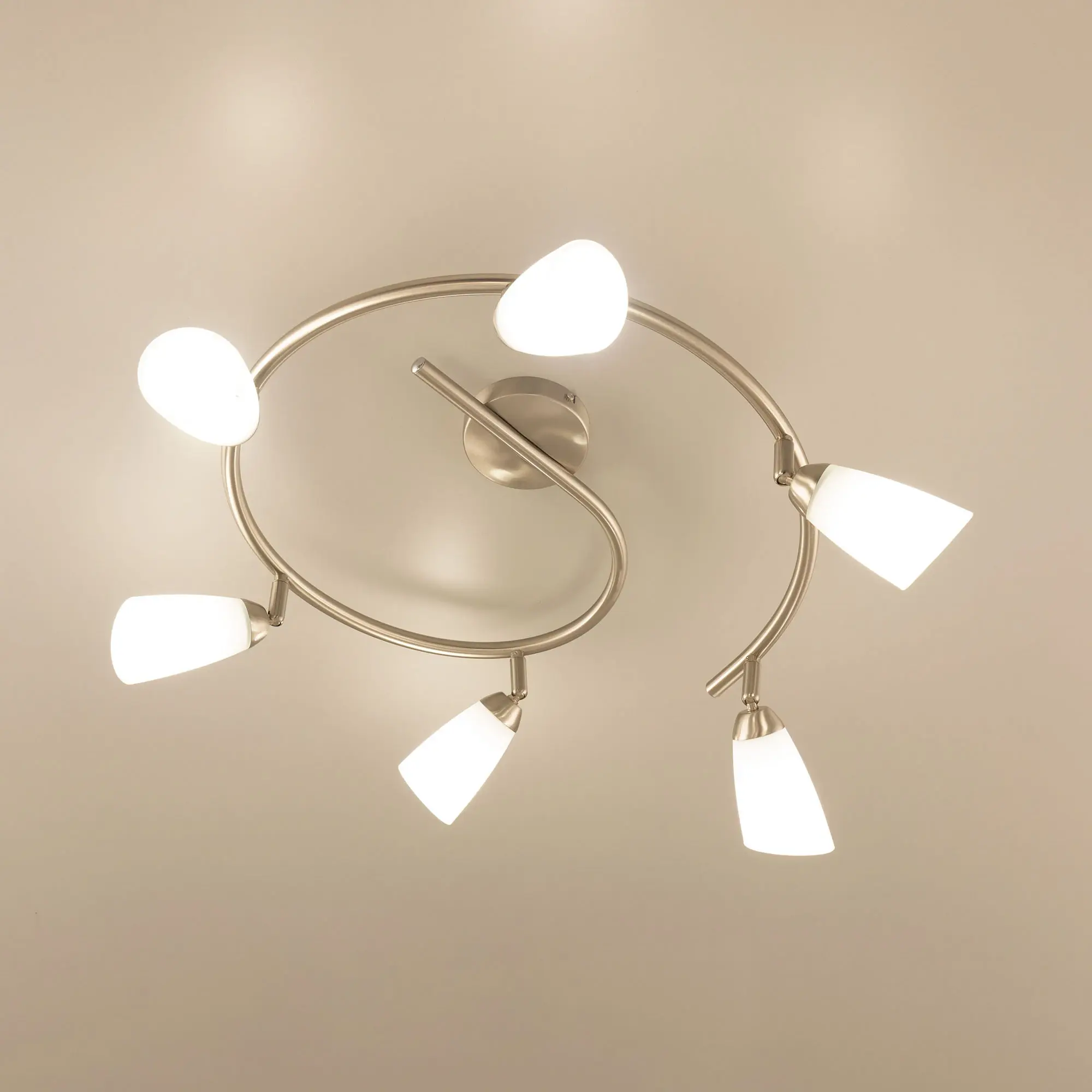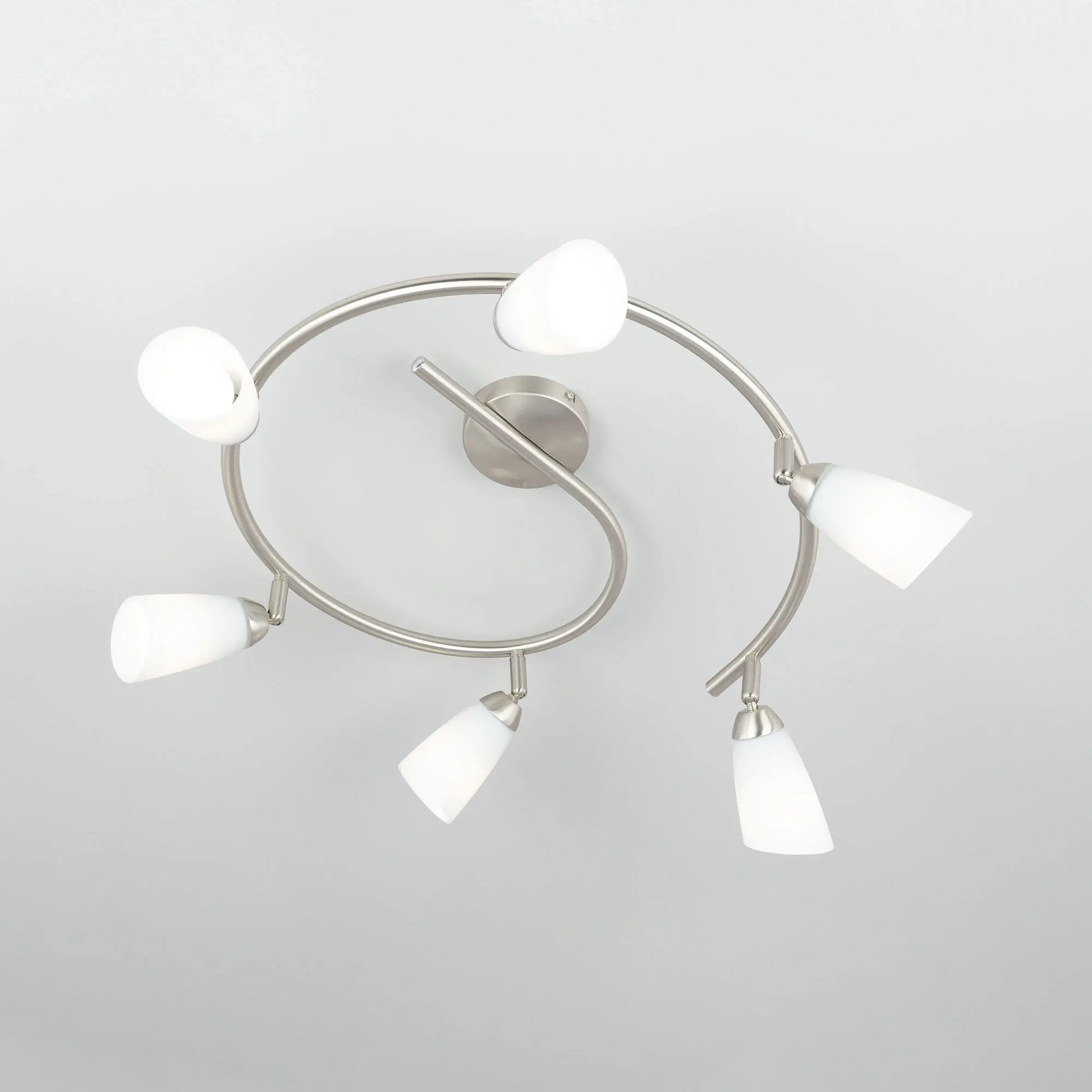 Потолочный светильник Citilux Белла CL501161 в современном стиле. Основание металлическое, в виде спирали, цвет матовый хром. Плафоны из белого матового стекла, на поворотных стойках, можно направить в разные стороны. В изделии используются 6 ламп с цоколем Е14, максимальной мощностью для ламп накаливания 60Вт (в комплект не входят, приобретаются отдельно). Светильник подходит для всех типов потолков, в том числе натяжных, тип крепления – планка. Спот спираль Citilux Белла CL501161 прекрасный выбор для освещения небольшой гостиной, уютной спальни, строгого кабинета и комфортной кухни