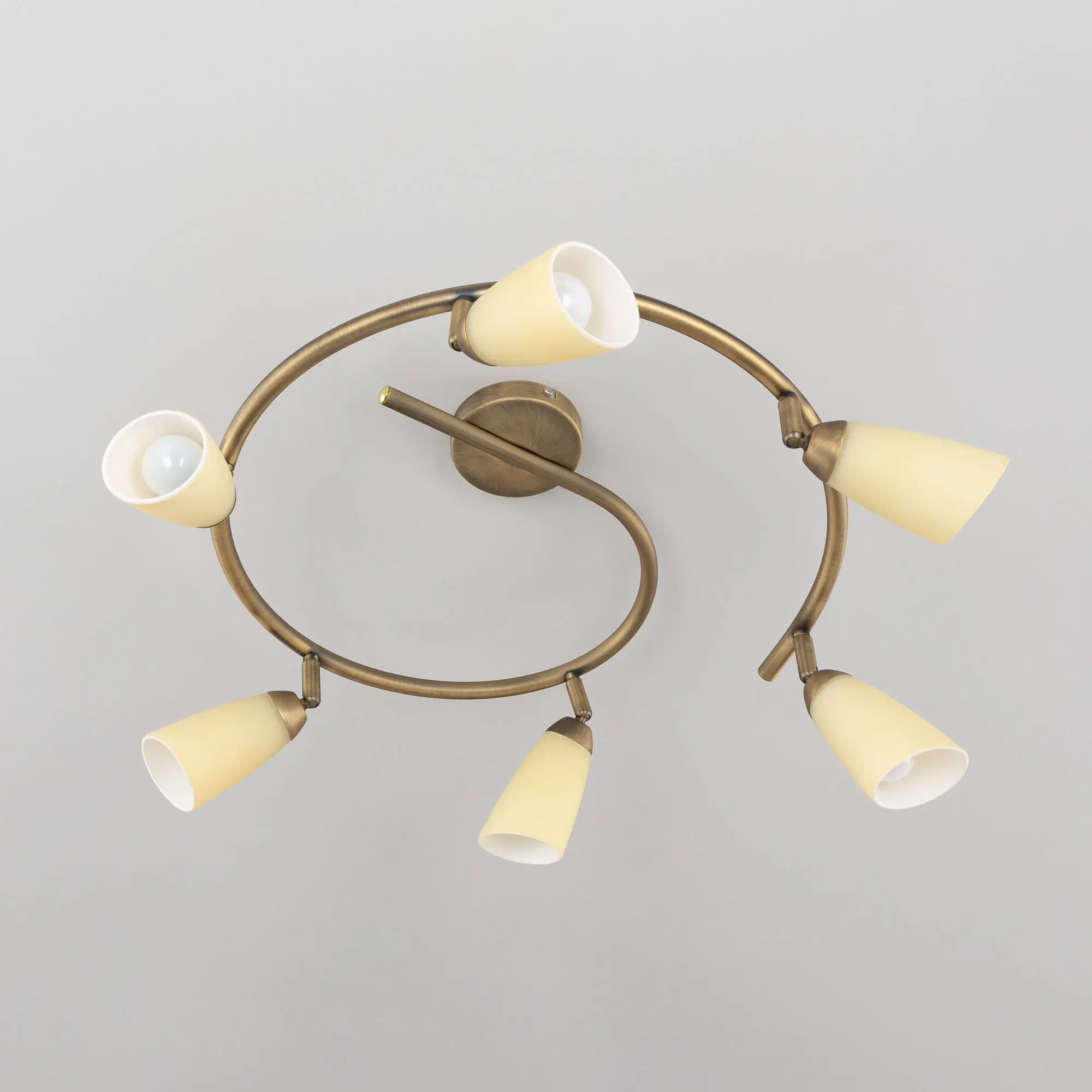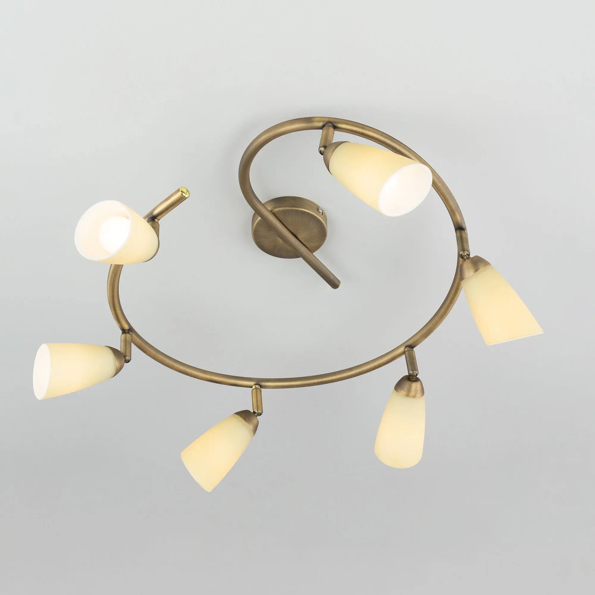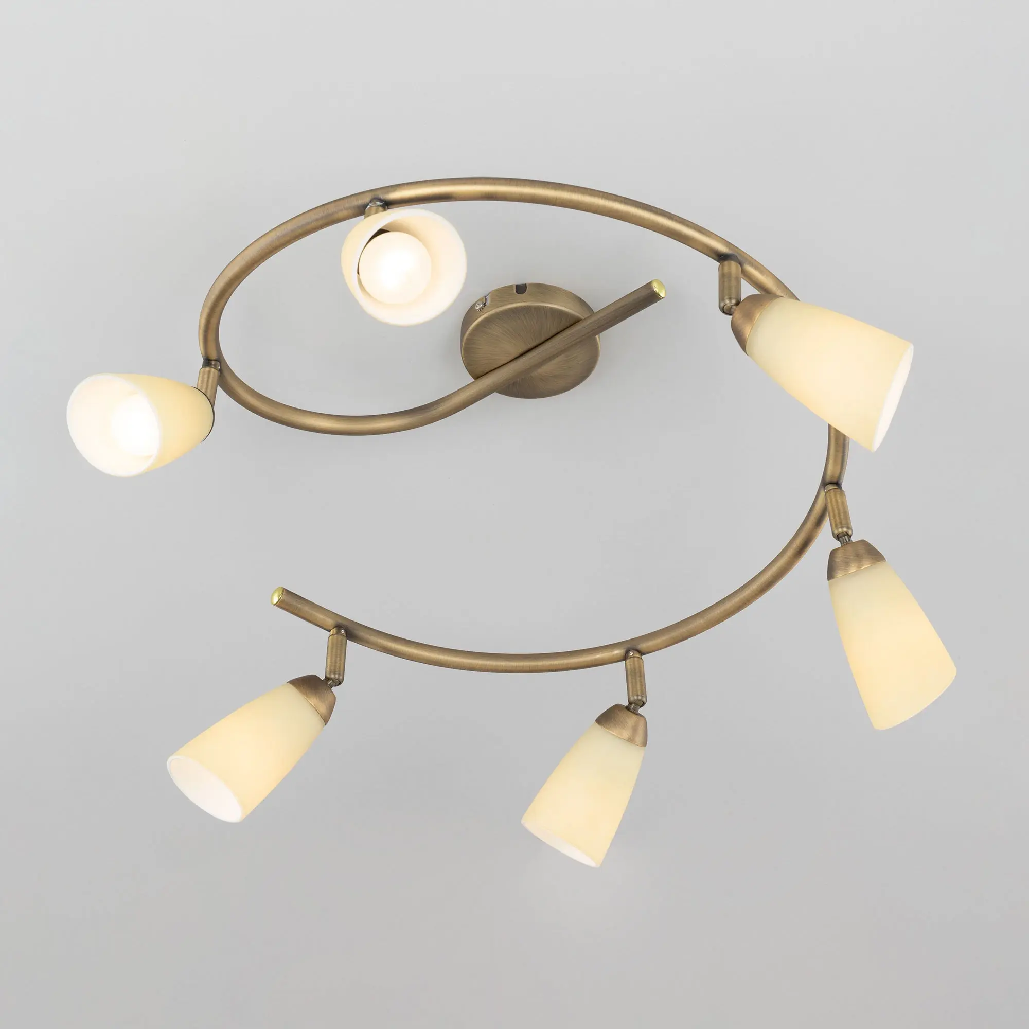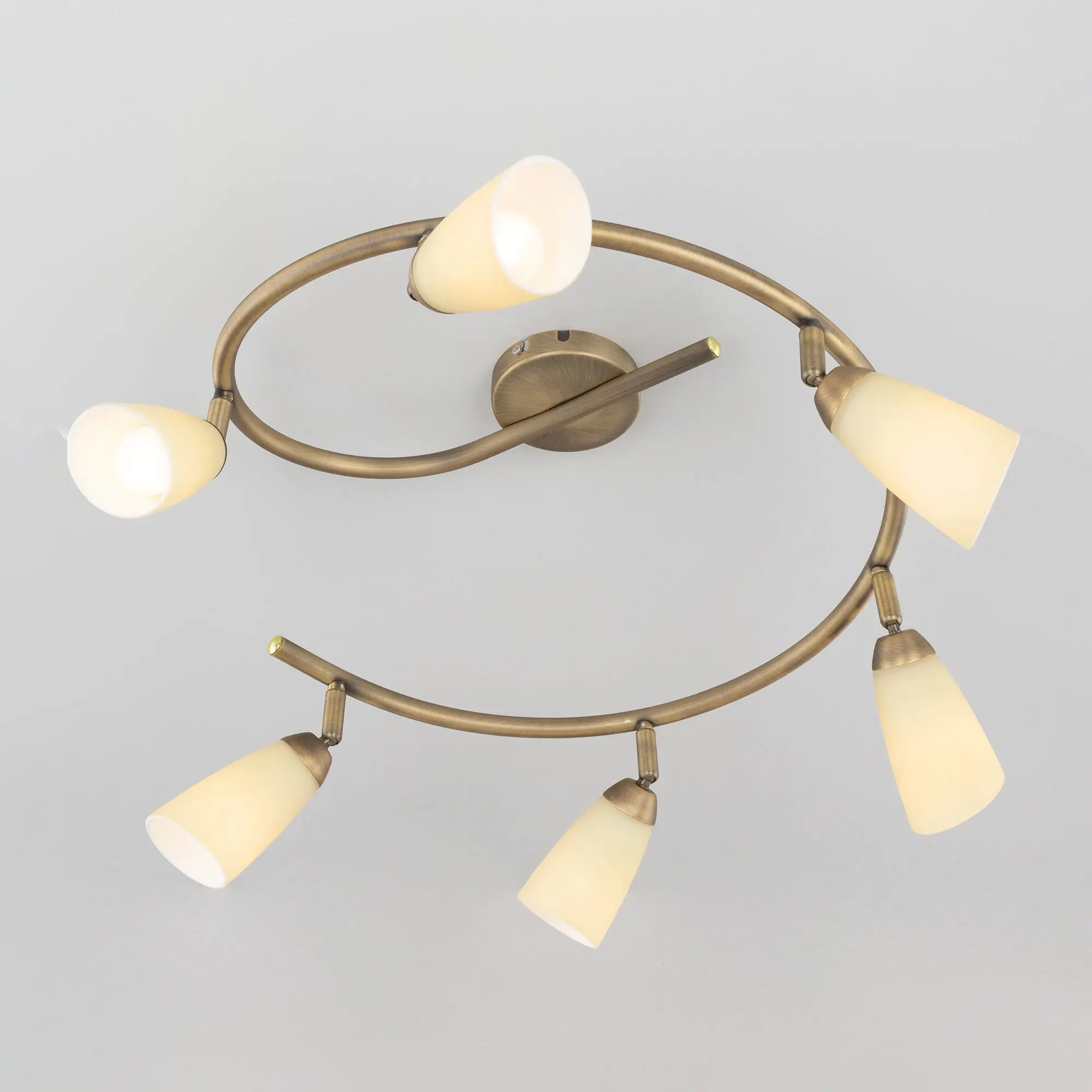Потолочный светильник Citilux Белла CL501163 в современном стиле. Основание металлическое, в виде спирали, цвет бронза. Плафоны стеклянные, песочного цвета, на поворотных стойках, можно направить в разные стороны. В изделии используются 6 ламп с цоколем Е14, максимальной мощностью для ламп накаливания 60Вт (в комплект не входят, приобретаются отдельно). Светильник подходит для всех типов потолков, в том числе натяжных, тип крепления – планка. Спот спираль Citilux Белла CL501163 прекрасный выбор для освещения небольшой гостиной, уютной спальни, строгого кабинета и комфортной кухни.,