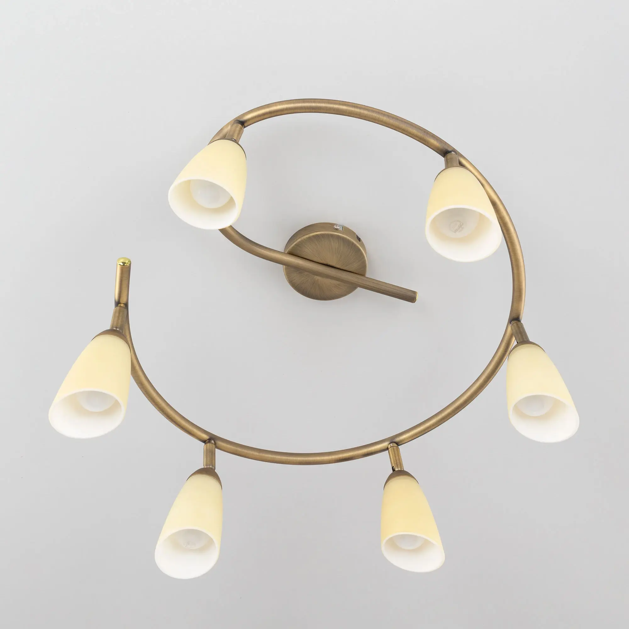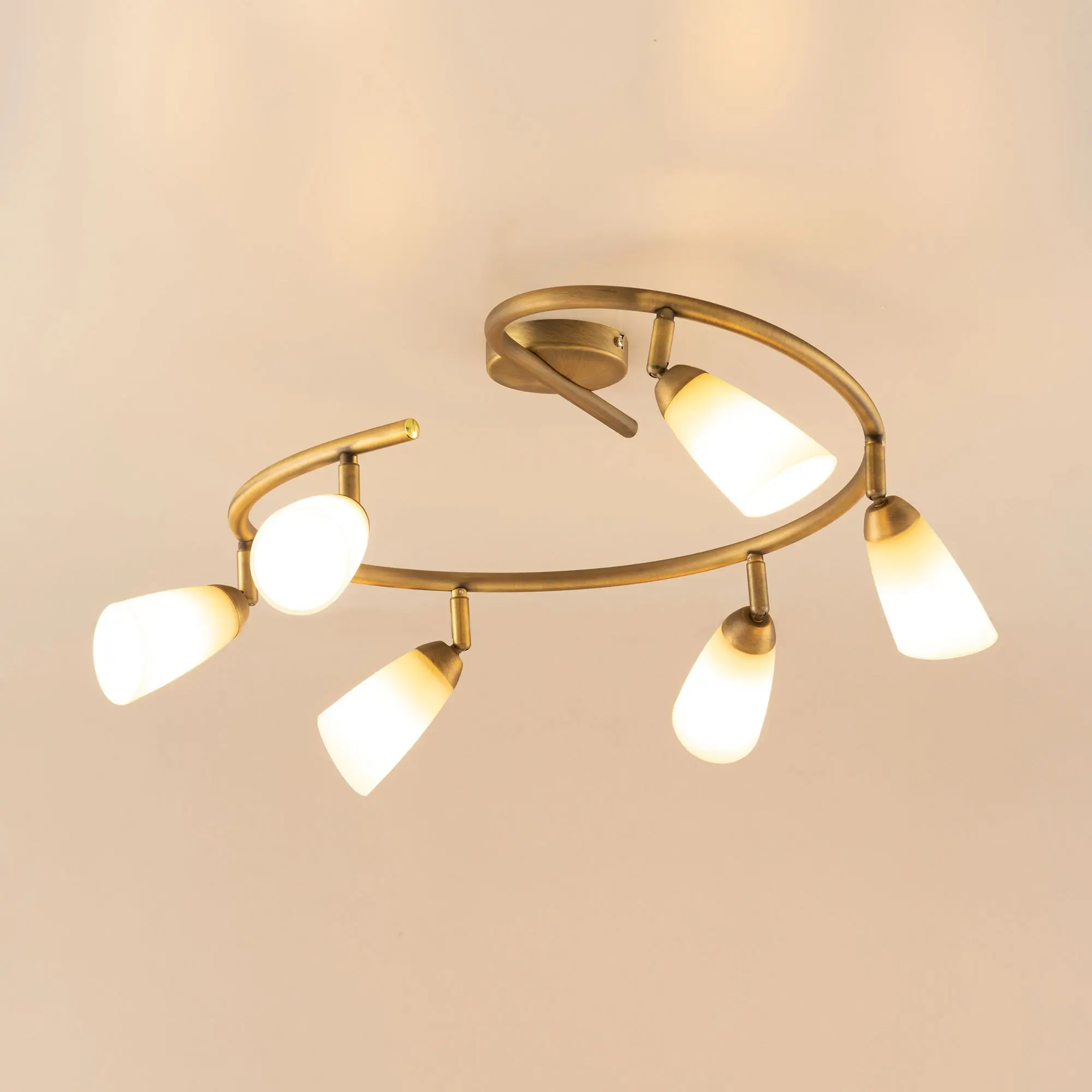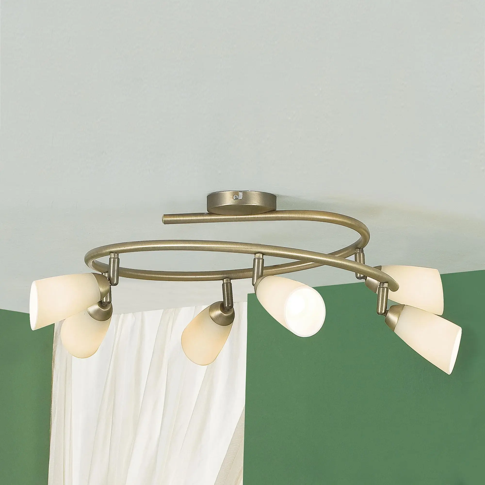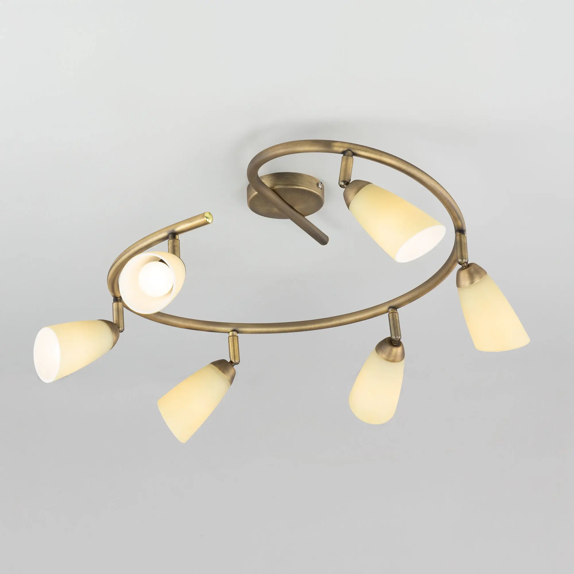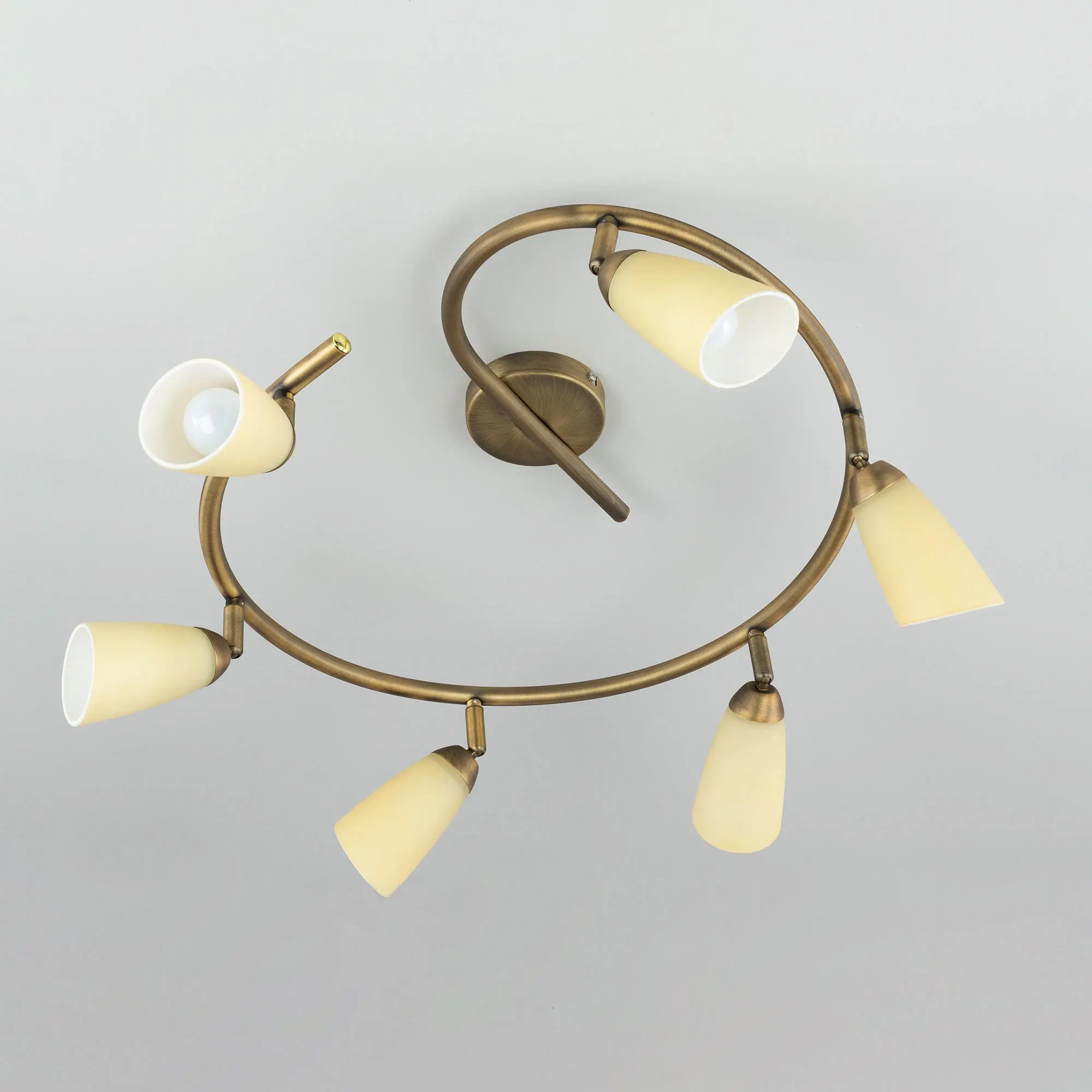 Потолочный светильник Citilux Белла CL501163 в современном стиле. Основание металлическое, в виде спирали, цвет бронза. Плафоны стеклянные, песочного цвета, на поворотных стойках, можно направить в разные стороны. В изделии используются 6 ламп с цоколем Е14, максимальной мощностью для ламп накаливания 60Вт (в комплект не входят, приобретаются отдельно). Светильник подходит для всех типов потолков, в том числе натяжных, тип крепления – планка. Спот спираль Citilux Белла CL501163 прекрасный выбор для освещения небольшой гостиной, уютной спальни, строгого кабинета и комфортной кухни.,