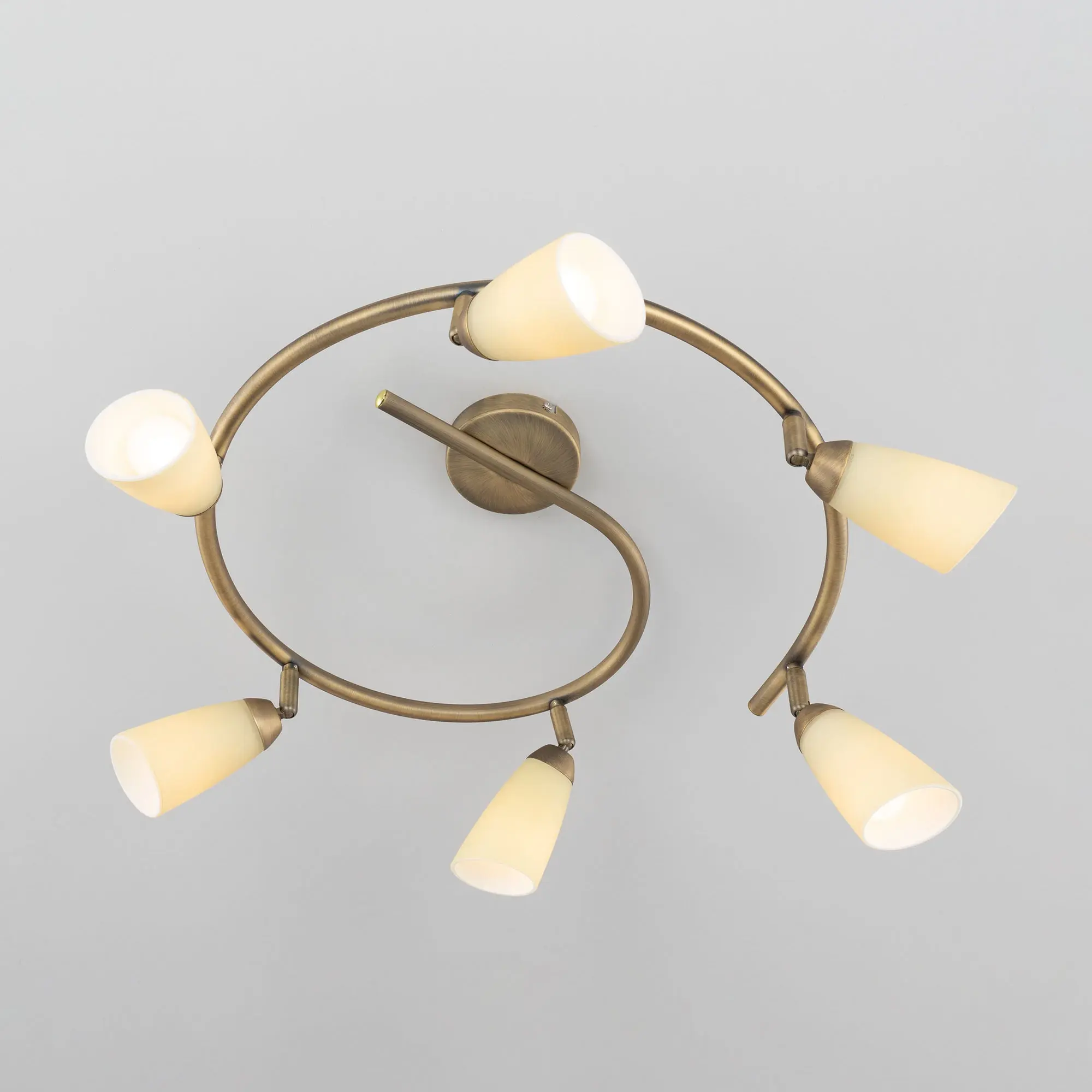 Потолочный светильник Citilux Белла CL501163 в современном стиле. Основание металлическое, в виде спирали, цвет бронза. Плафоны стеклянные, песочного цвета, на поворотных стойках, можно направить в разные стороны. В изделии используются 6 ламп с цоколем Е14, максимальной мощностью для ламп накаливания 60Вт (в комплект не входят, приобретаются отдельно). Светильник подходит для всех типов потолков, в том числе натяжных, тип крепления – планка. Спот спираль Citilux Белла CL501163 прекрасный выбор для освещения небольшой гостиной, уютной спальни, строгого кабинета и комфортной кухни