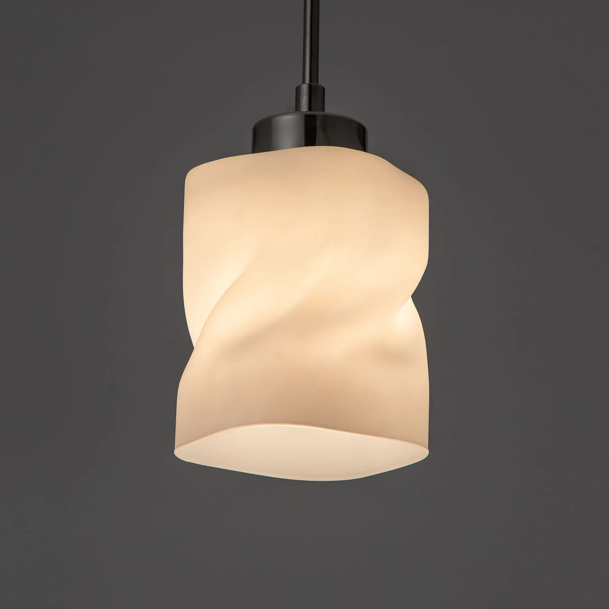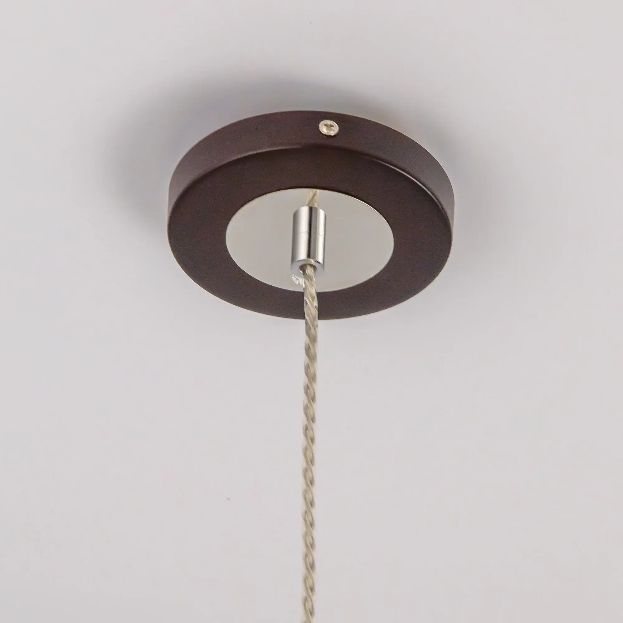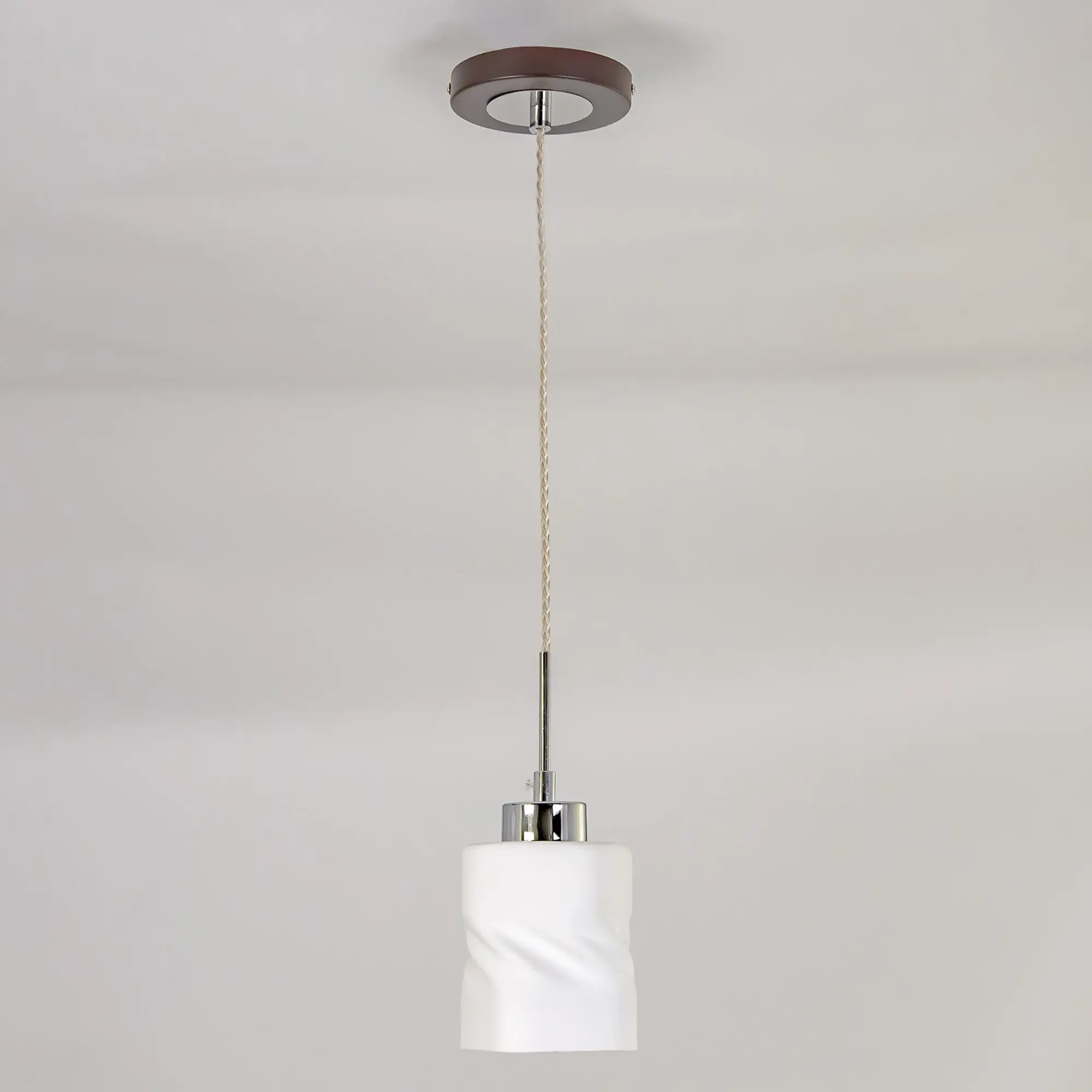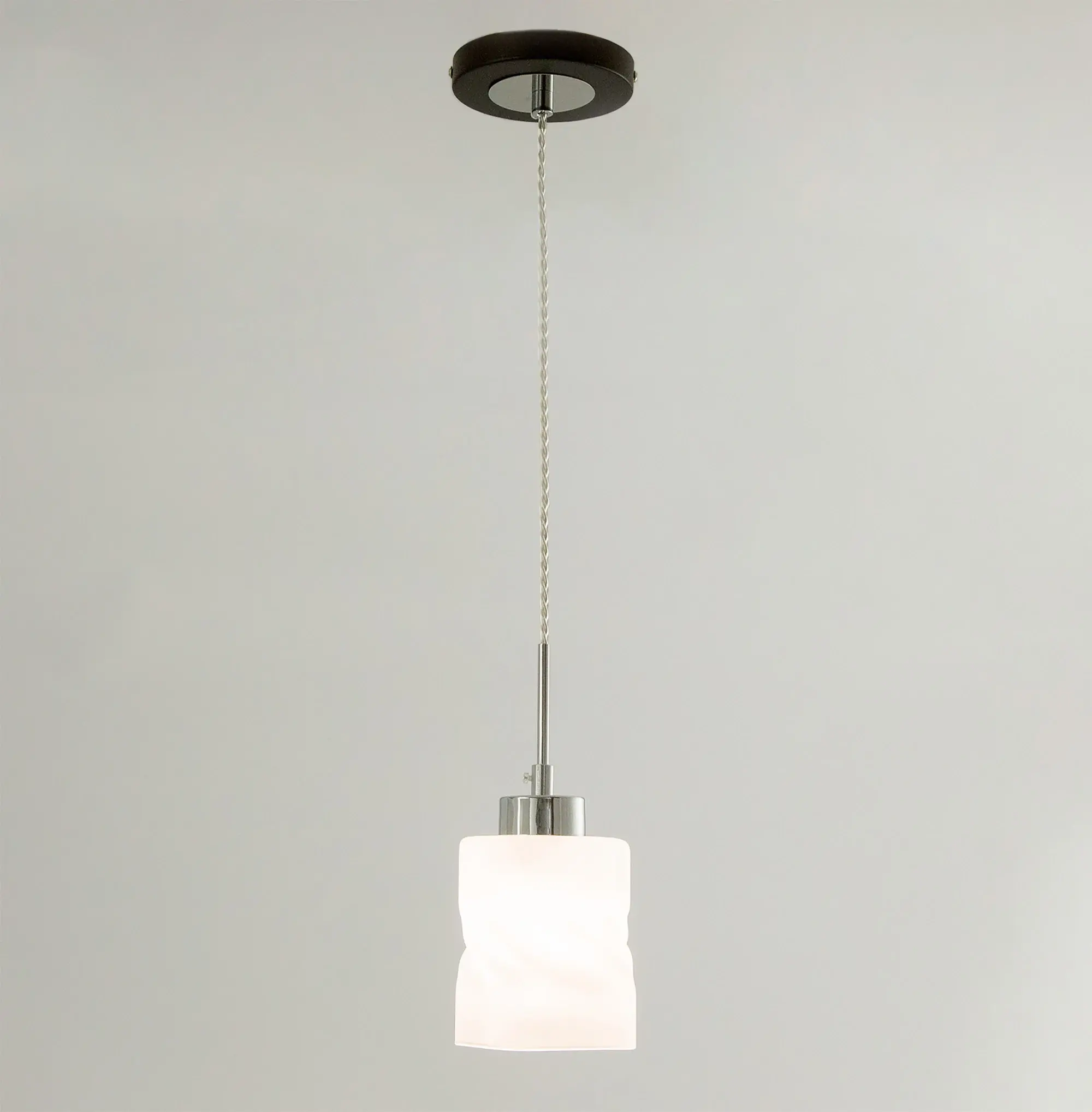 Подвес из обновлённой серии «Берта» будет хорошо смотреться на потолке небольшого помещения, оформленного как в современном, так и классическом стиле. Основная суть обновления заключается в редизайне плафонов, которые теперь гораздо более качественные, лучше пропускают свет, чем в светильниках предыдущего поколения, а также гораздо интересней смотрятся с дизайнерской точки зрения. Такой светильник с прямоугольным, слегка закрученным в центральной части плафоном осветит помещение площадью до 4 квадратных метров. За счёт такой яркости модель можно использовать в качестве самостоятельно светильника в помещениях небольшого размера. Особенно хорошо смотрятся, если применять в количествах. Идеально подойдет для локальной подсветки рабочей зоны или, к примеру, кухонного стола. Конструкция продумана таким образом, что есть возможность регулировать высоту монтажа от 45 до 105 сантиметров. Допускается применение любого типа ламп с цоколем E27 и потребляемой мощностью не более 75 ватт. При производстве светильника использовались такие материалы, как матовое стекло и металл. Основным цветом является венге (тёмно-коричневый) и хром.