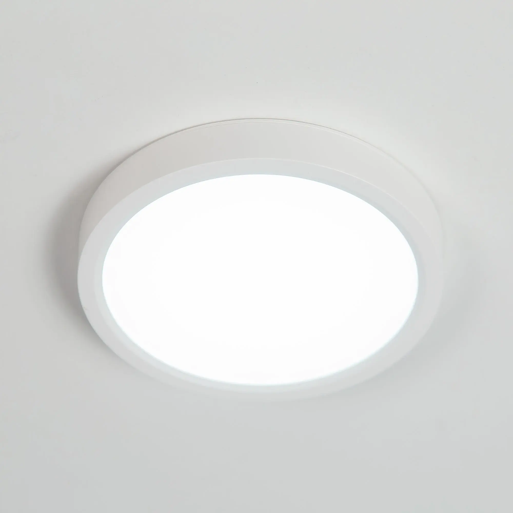 Накладной светодиодный светильник Citilux Бейсик CL738120N белого цвета, мощностью 12Вт. Круглый корпус модели изготовлен из ударопрочного полимера, рассеиватель матовый из оптического полимера. Светильник обладает высокой энергоэффективностью – 120Лм/Вт, оснащен встроенным 3-х ступенчатым диммером 100-50-10% яркости, управляется настенным выключателем. Модель имеет фиксированную цветовую температуру 4000K. Свет без мерцаний и пульсаций. Высота корпуса всего 25мм, тип крепления – удобная монтажная платформа,