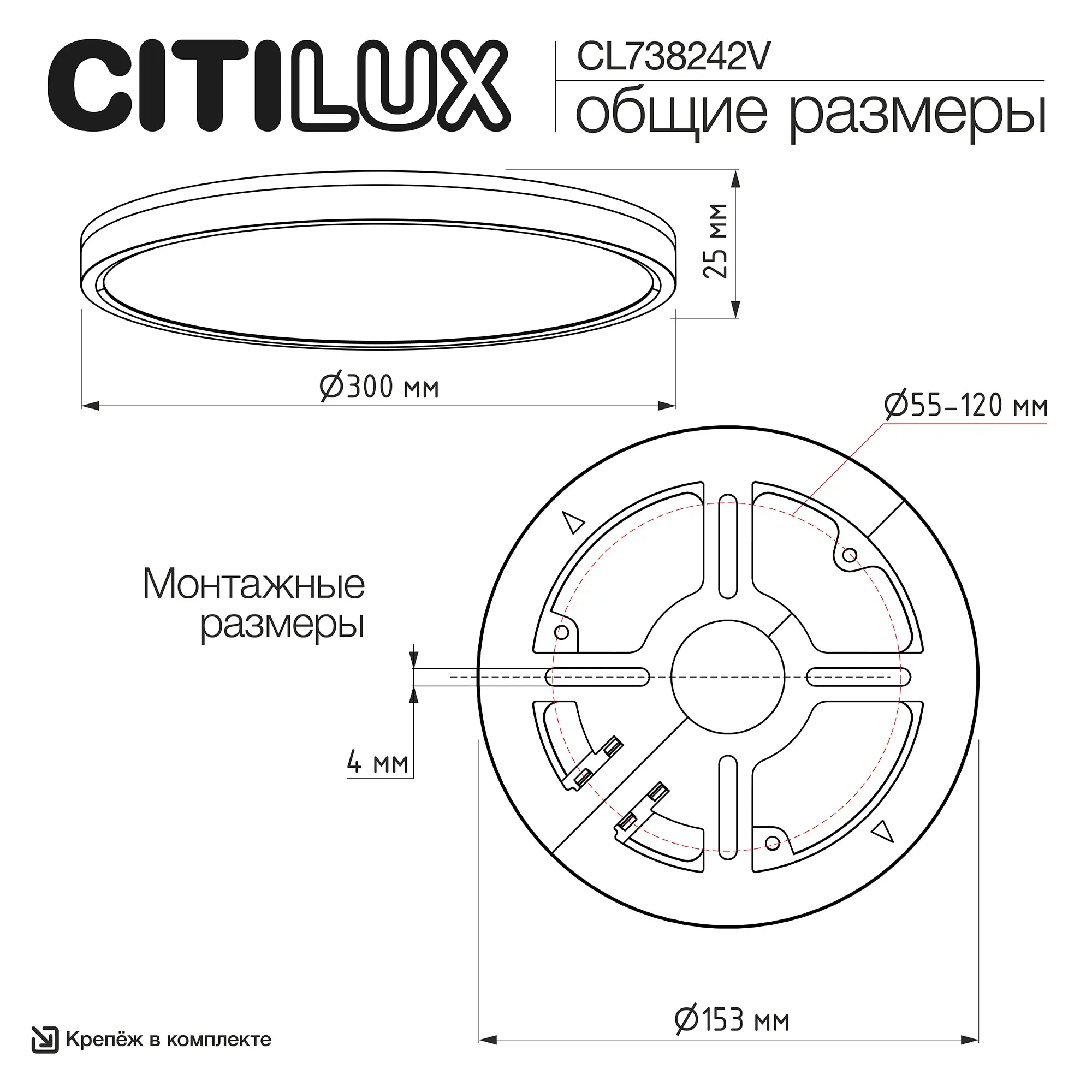 Светильник круглый, плоский - диаметр 30см, высота корпуса всего 2,5см, (такие ещё называют светильник – таблетка). Подходит для всех видов потолков, в том числе натяжных, тип крепления – удобная монтажная платформа.