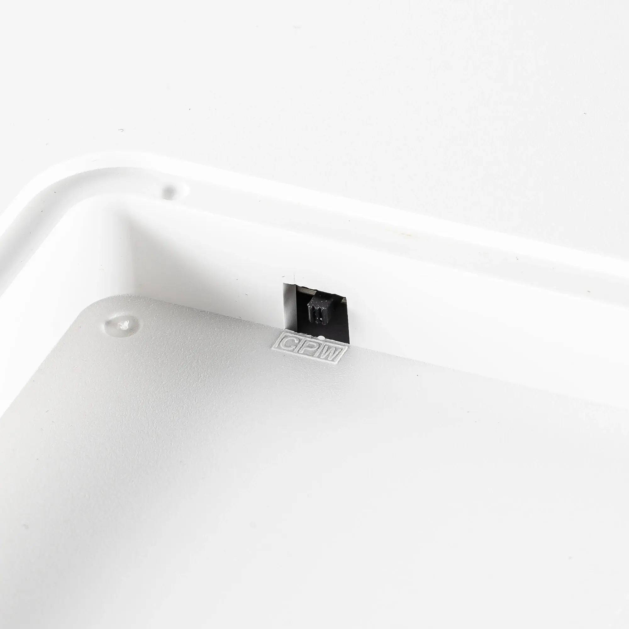 Изделие мощностью 50Вт оснащено встроенным 3-х ступенчатым диммером 100-50-10% яркости, управляется настенным выключателем. Индекс цветопередачи CRI >80. Модель имеет ступенчатую регулировку цветовой температуры 3000К-4000К-5000К, для этого перед монтажом, на тыльной стороне светильника, переключателем устанавливается выбранный вариант свечения. Свет безопасный для глаз, без мерцания и пульсаций.
