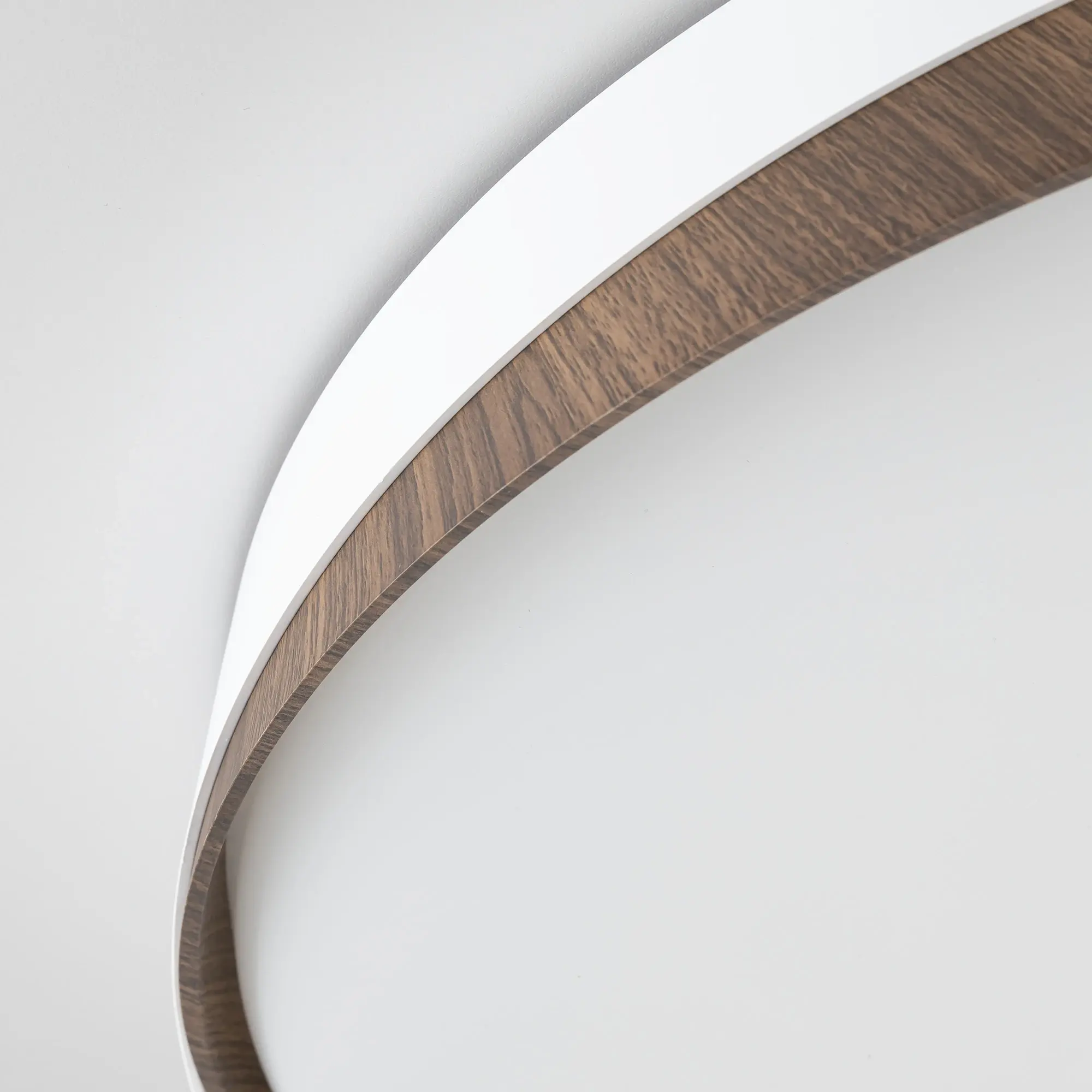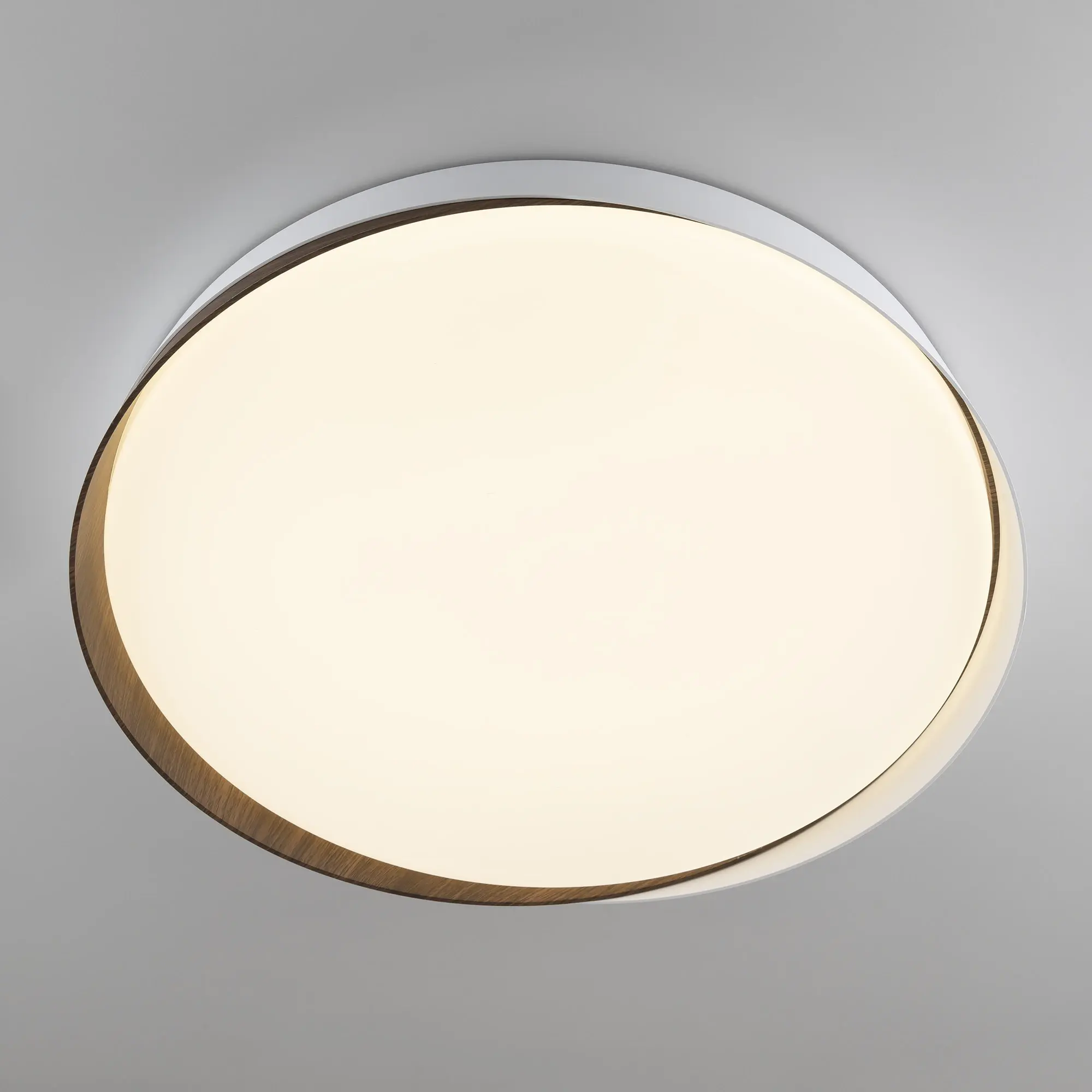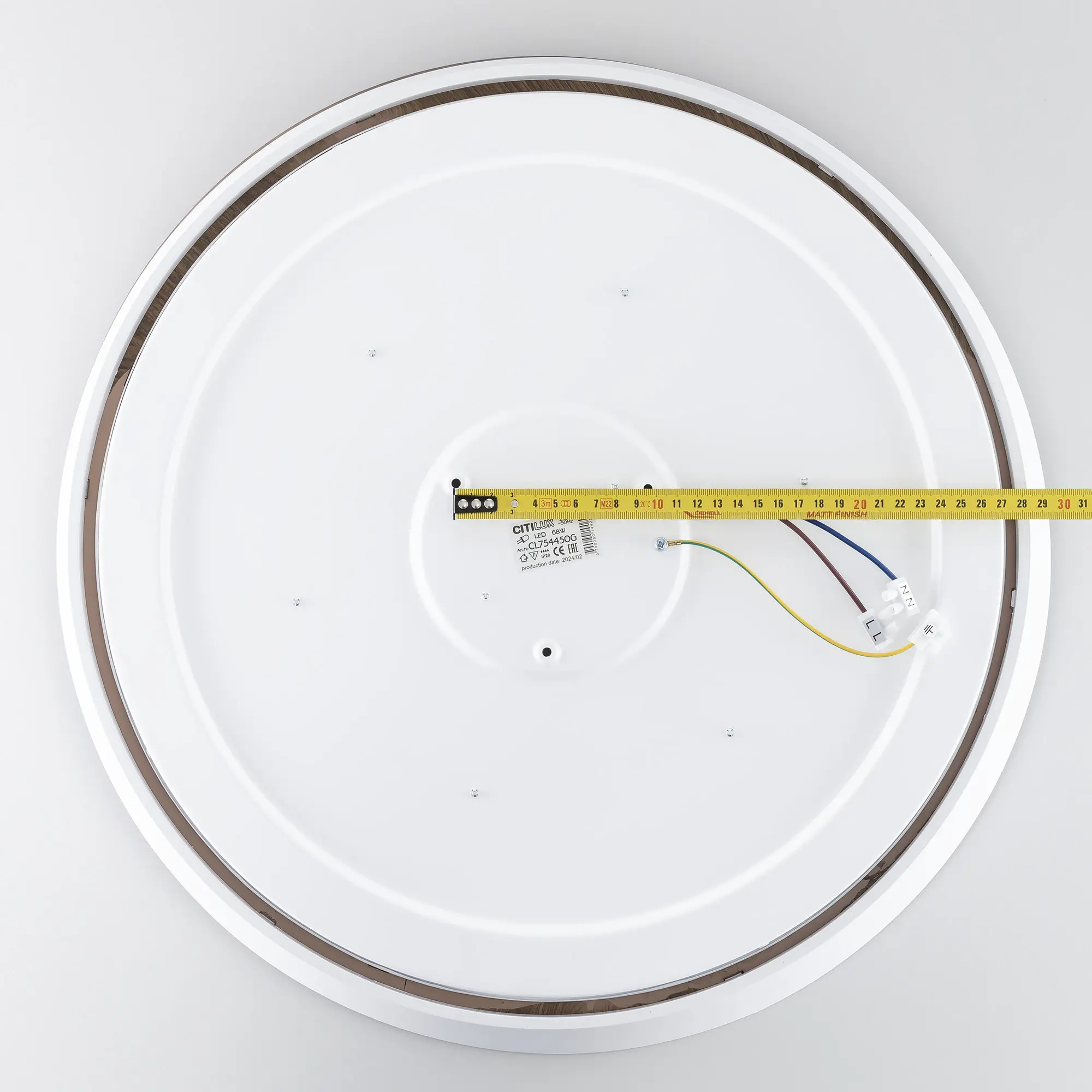 Светодиодный потолочный светильник Citilux BONNY CL754450G с яркой цветной RGB подсветкой выполнен в современном стиле. Основание металлическое. Оригинальный плафон с модной отделкой тёмно-коричневого цвета (под дерево) и матовым рассеивателем изготовлен из оптического полимера. Благодаря оригинальной конструкции, светильник равномерно освещает помещение и дополнительно подсвечивает потолок, что придаёт пространству дополнительный объём.