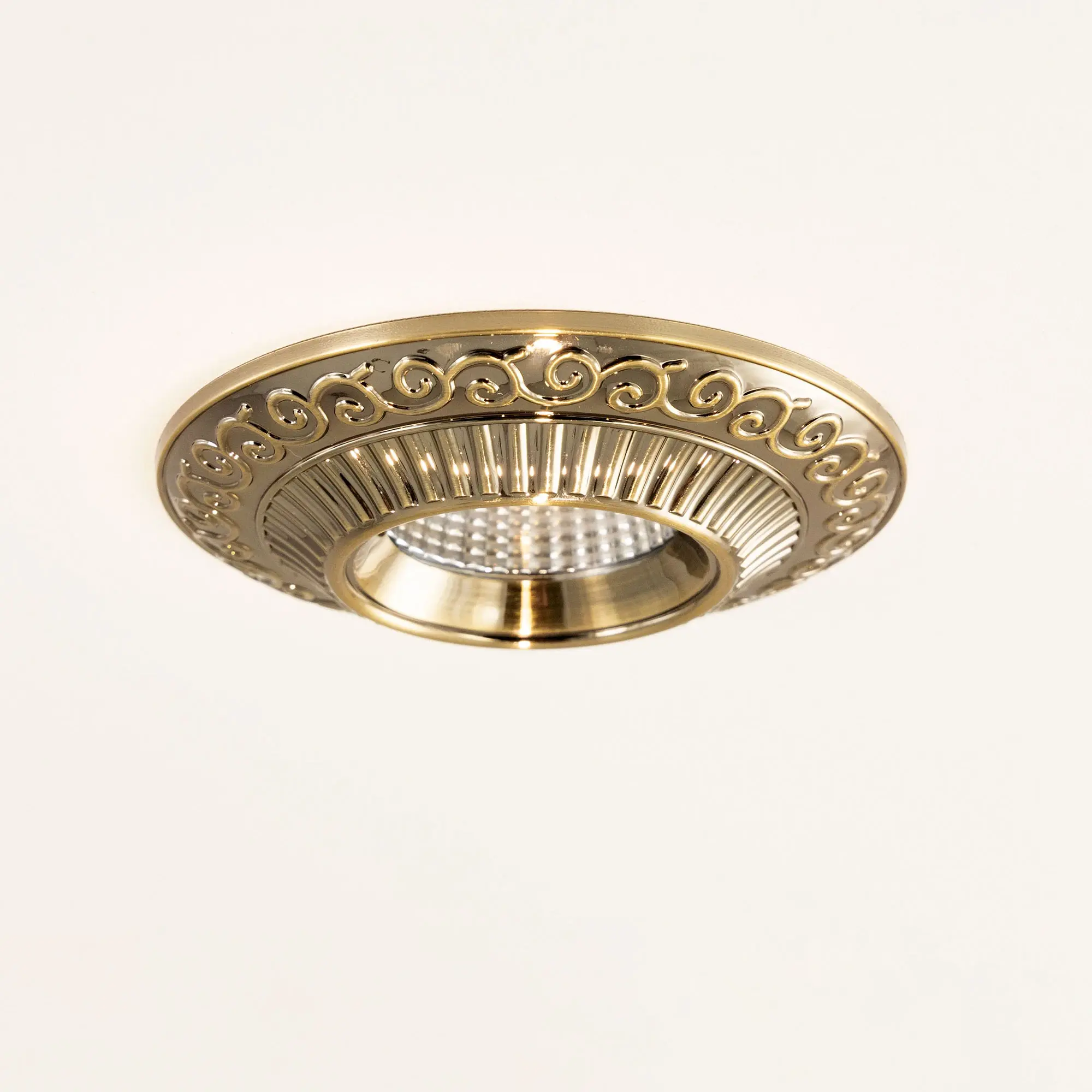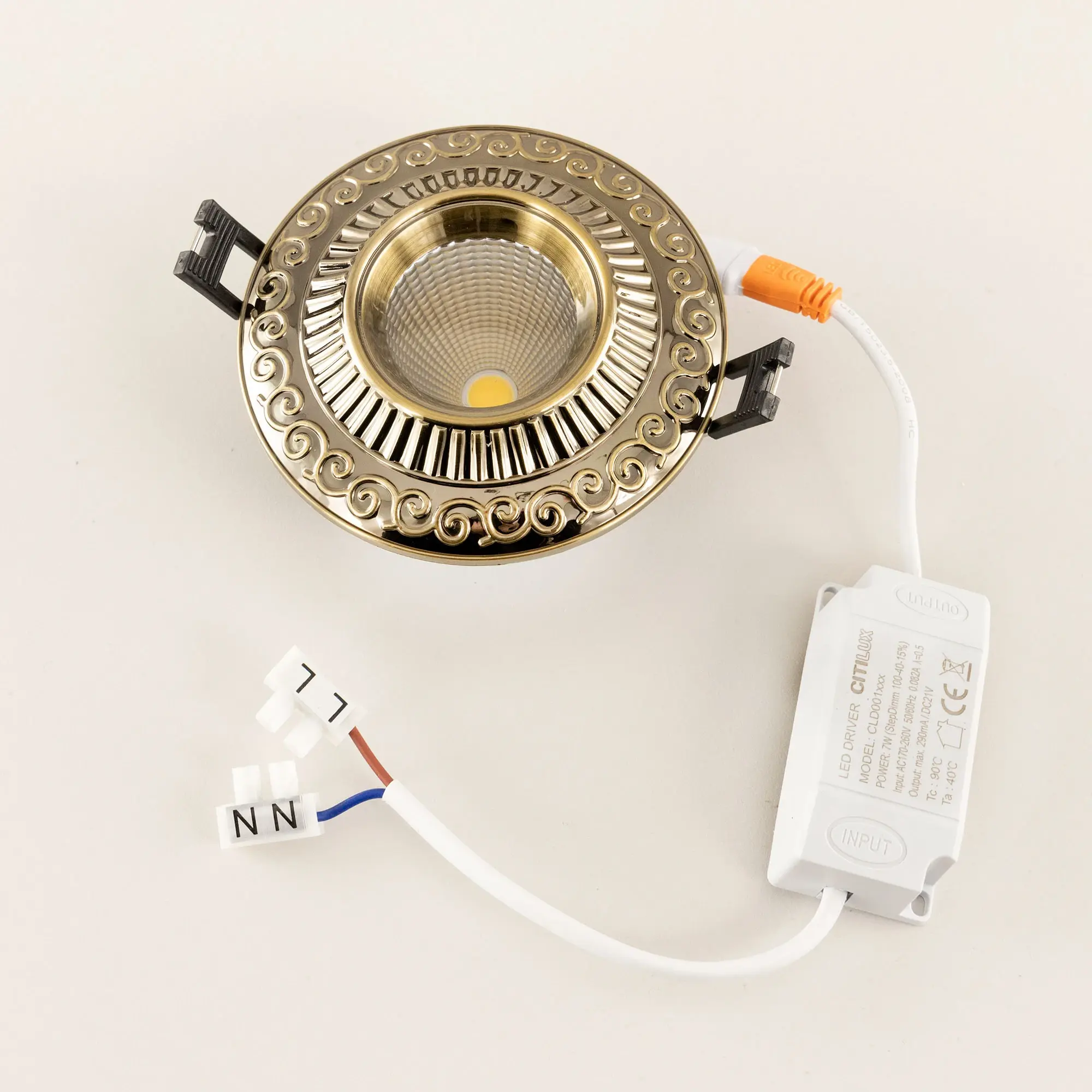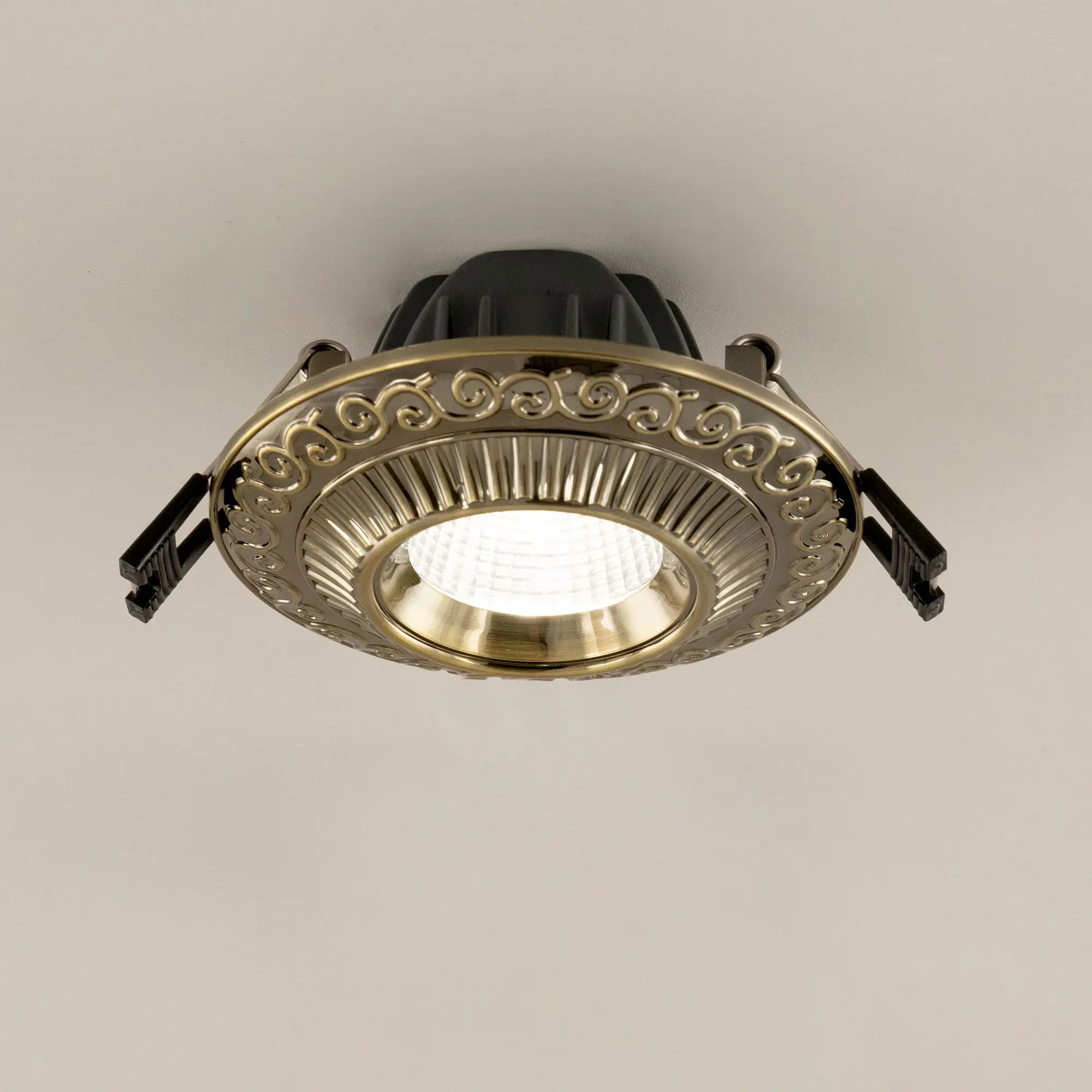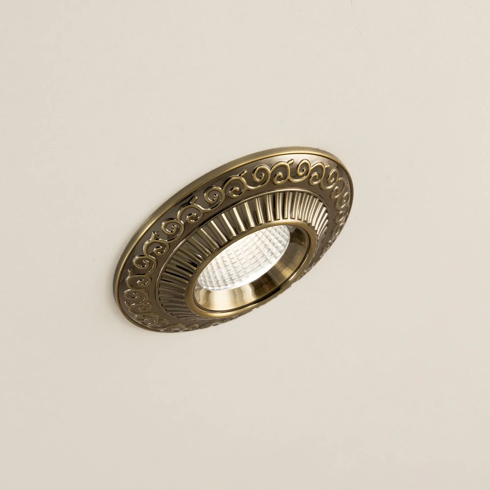 Встраиваемый светодиодный светильник Citilux Боска CLD041NW3 в классическом стиле. Корпус из прочного полимера, с текстурным узором, цвет бронза. Изделие оснащено ярким светодиодом с мощным радиатором охлаждения. Мощность 7Вт, цветовая температура 3500К – нейтральный свет. Встроенный ступенчатый диммер 100-40-15% управляется обычным настенным выключателем. Свет безопасный для глаз, без мерцаний и пульсаций во всех режимах работы. Модель подходит для всех типов навесных и натяжных потолков,