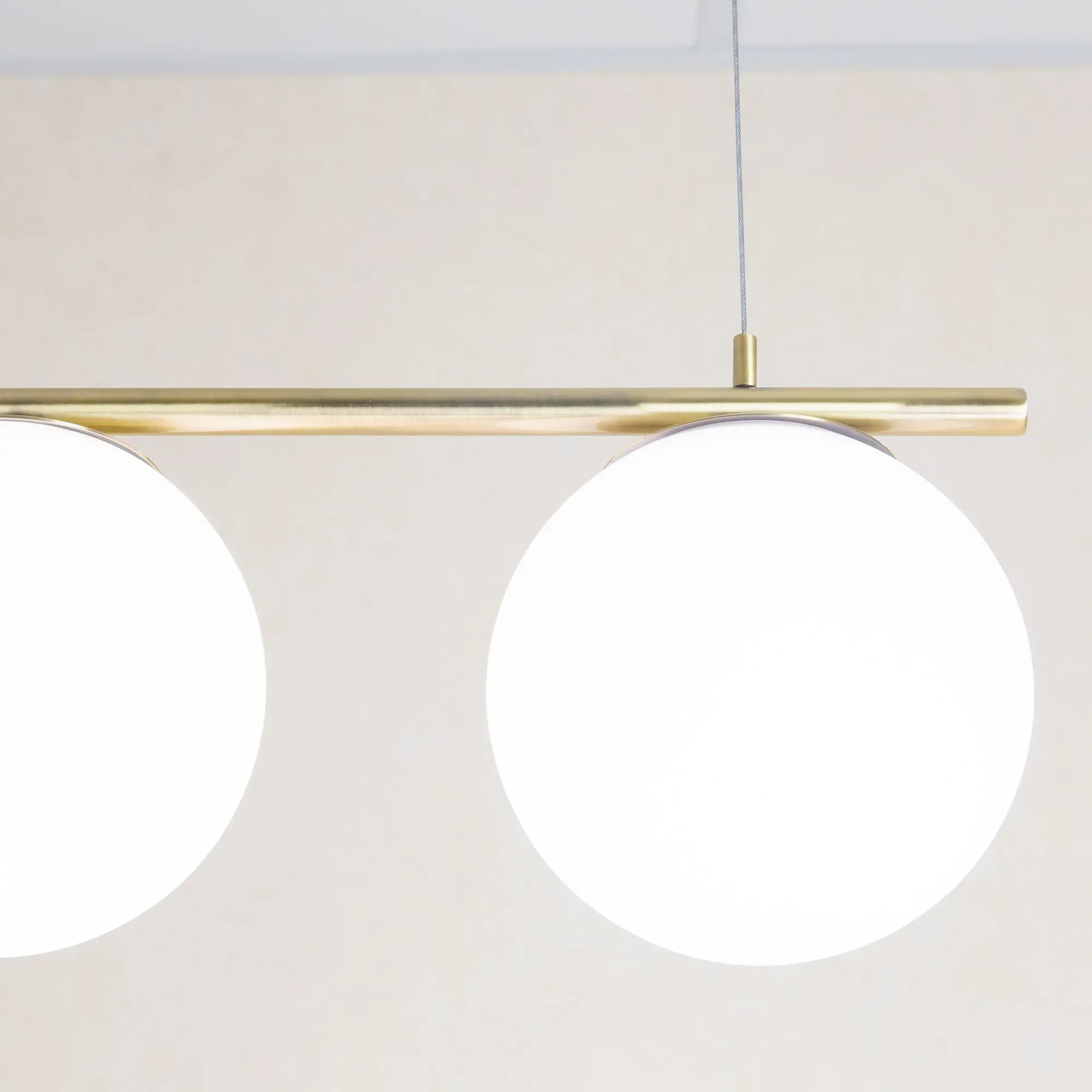Подвесная люстра Citilux Бремен CL112133 выполнена в современном стиле, с горизонтально штангой и тремя стеклянными плафонами-шарами. В изделии используются лампы с цоколем Е27 максимальной мощностью для ламп накаливания 20Вт (в комплект не входят, приобретаются отдельно). Светодиодные лампы можно устанавливать более яркие. Длина светильника 60см, высота легко регулируется при установке в диапазоне от 30 до 90см.