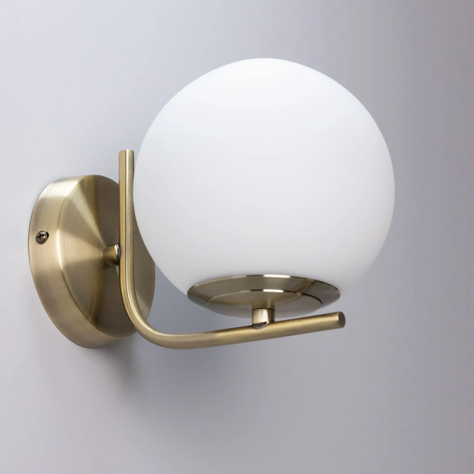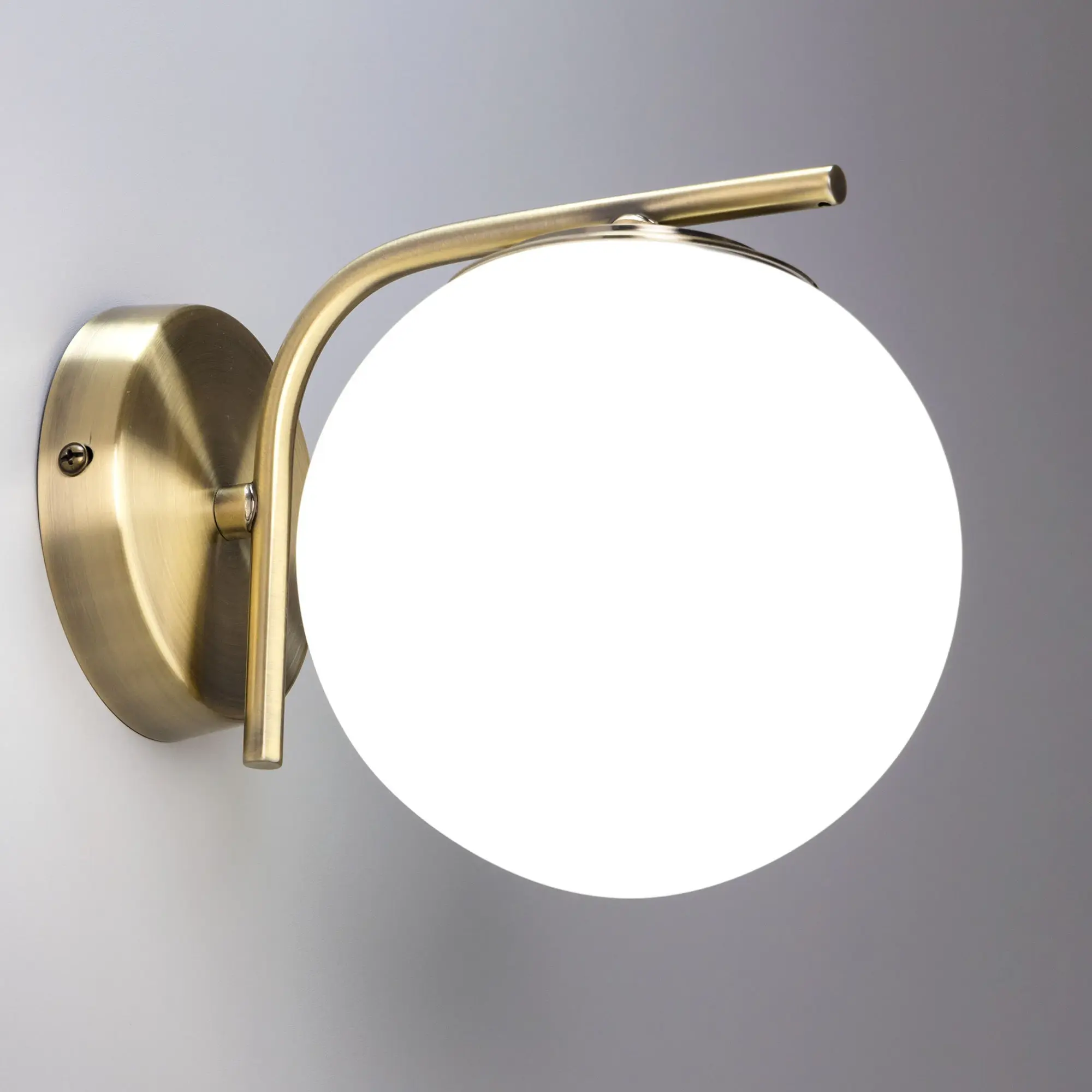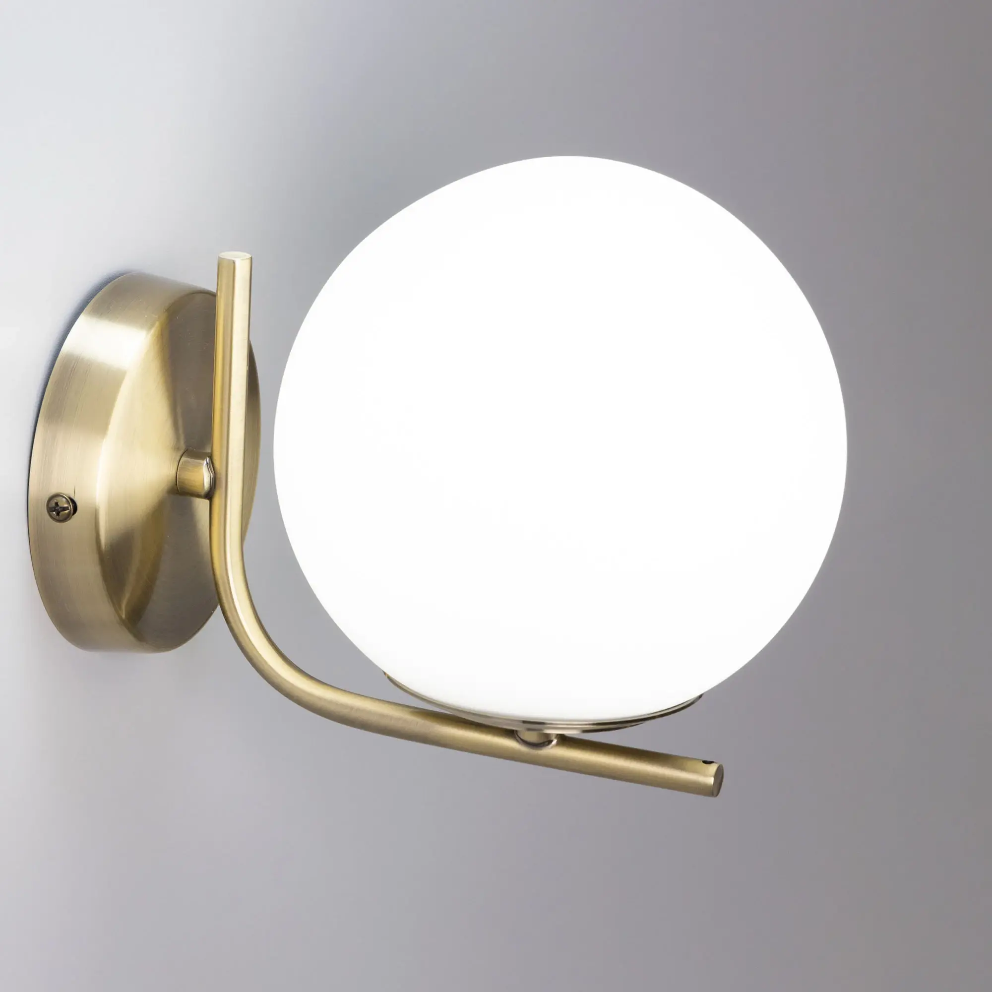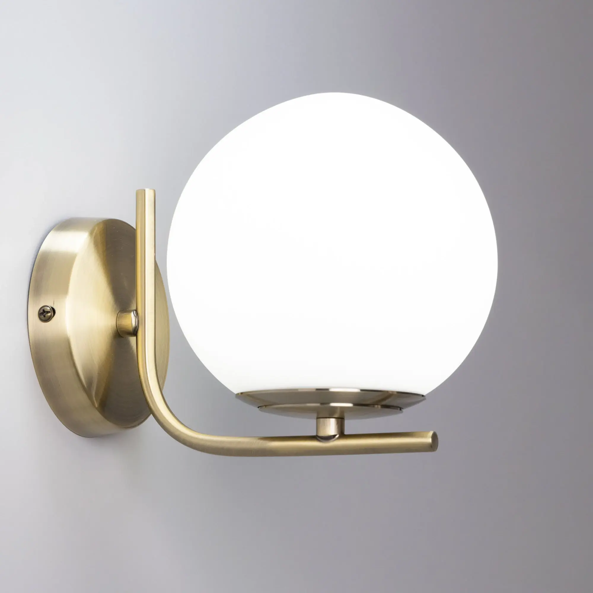Настенный светильник Citilux Бремен CL112313 в современном стиле. Корпус изделия металлический, цвет бронза. Плафон стеклянный, матовый, в форме шара. В светильнике используются лампа с цоколем Е27 мощностью 20Вт (лампа в комплект не входит, приобретается отдельно). Светодиодные лампы можно устанавливать более яркие. Высота 15,5см, ширина 14,5см, глубина 20см. Тип крепления к стене – планка, крепеж в комплекте.,