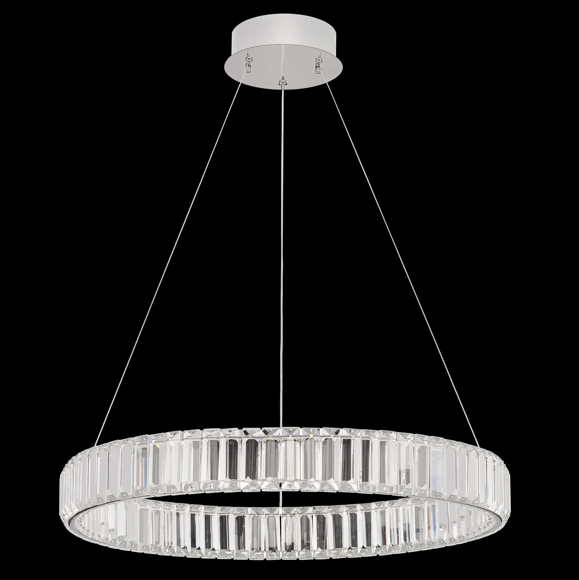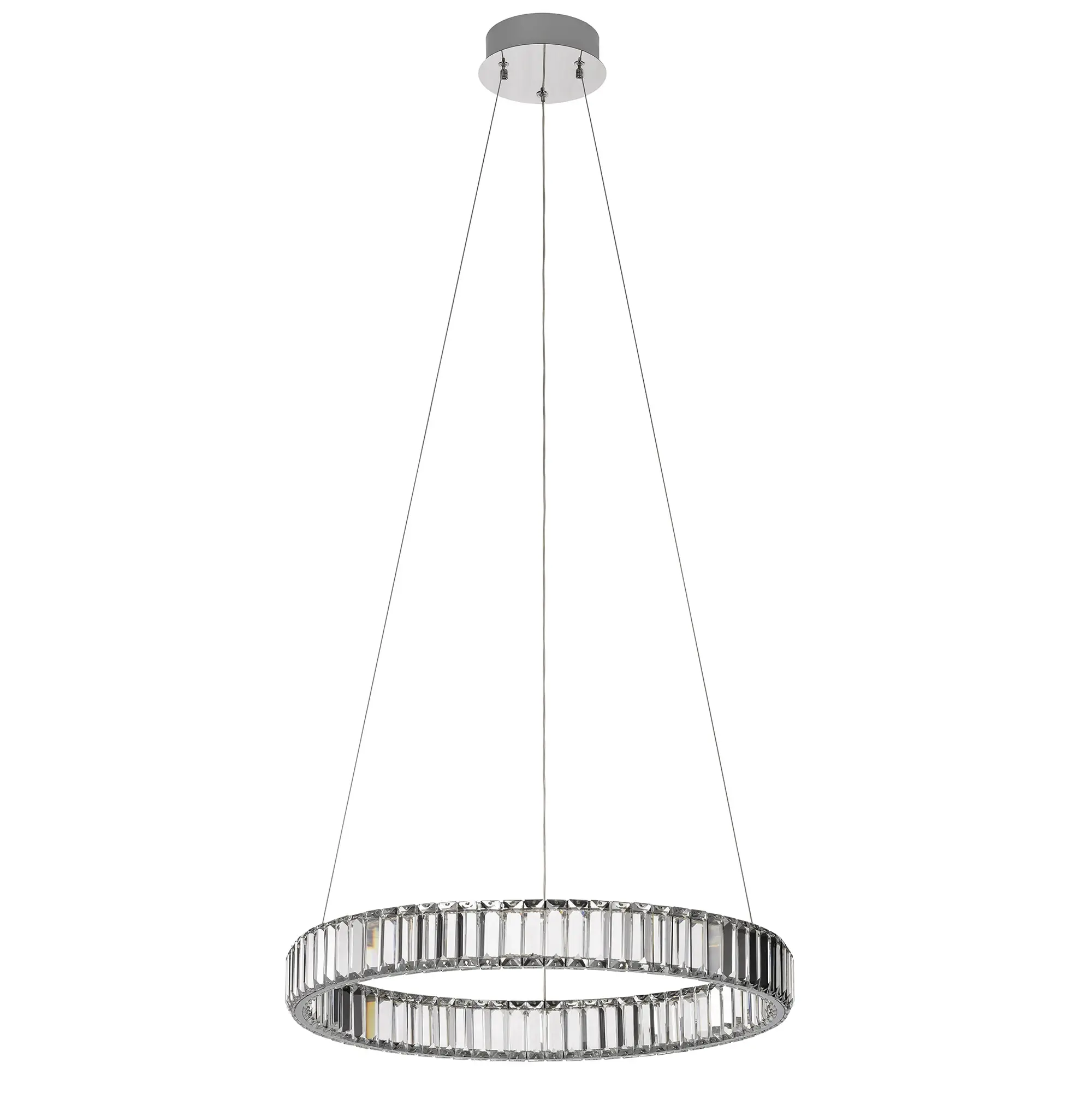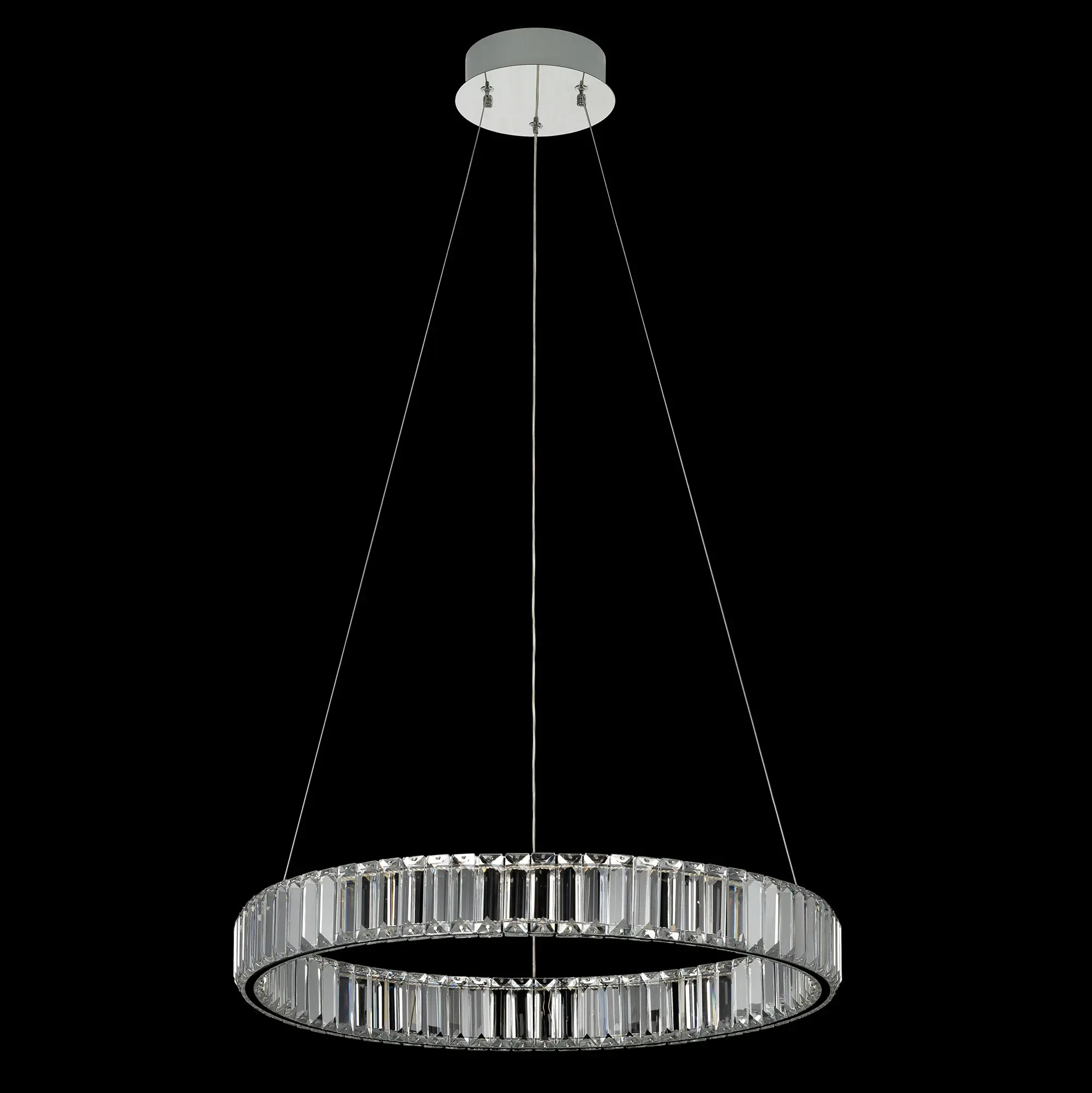 Хрустальная светодиодная люстра Citilux Чезаре CL338161 истинное произведение искусства, которое не оставит равнодушными даже самых требовательных ценителей красоты. Основание круглой формы, цвет хром. Хрустальное кольцо на металлическом каркасе, подвешено на элегантных тросиках и словно парит в воздухе. Хрустальные элементы являются воплощением кристальной прозрачности и современной огранки, они играют сияющими отблесками света и создают неповторимую атмосферу роскоши и элегантности.