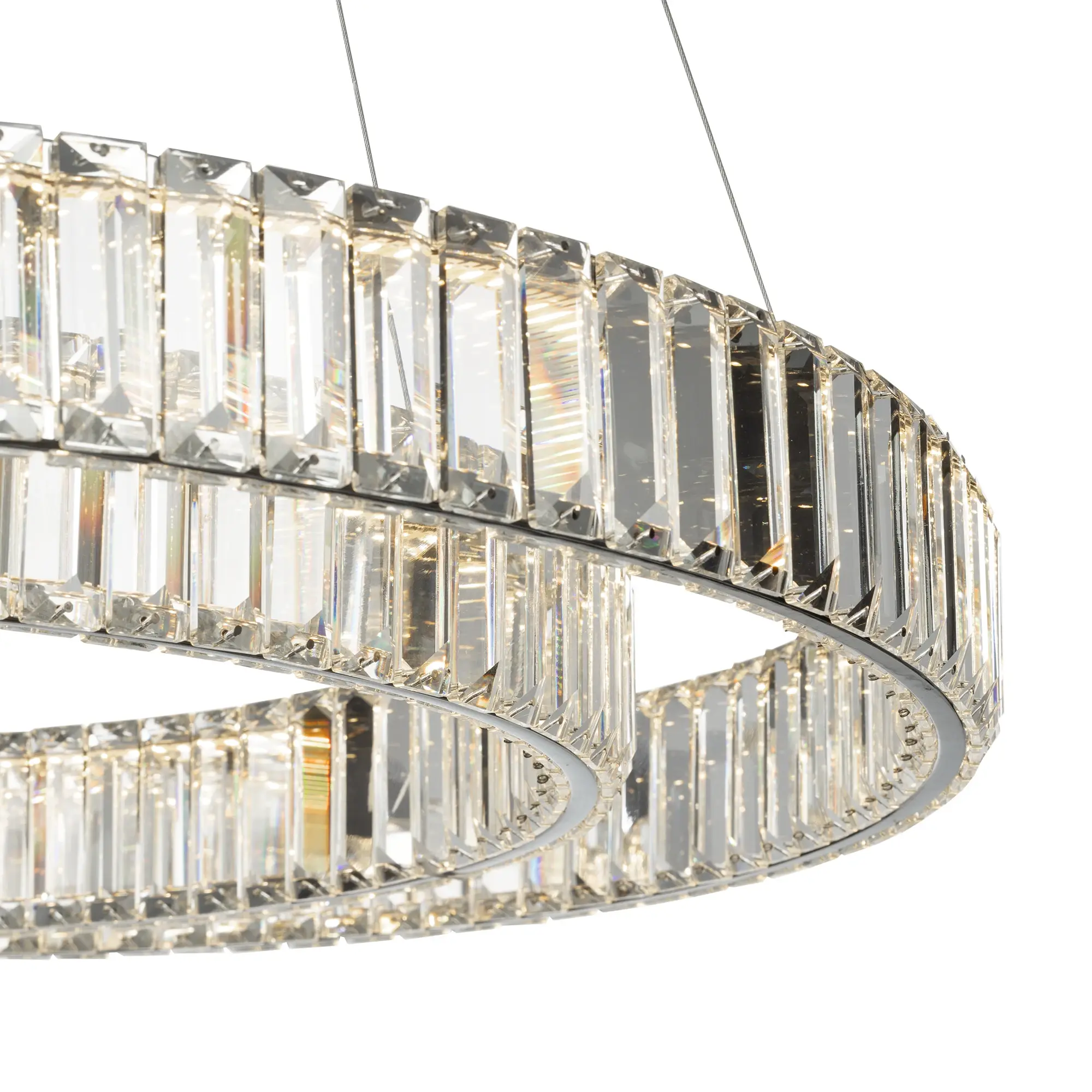 Хрустальная светодиодная люстра Citilux Чезаре CL338281 истинное произведение искусства, которое не оставит равнодушными даже самых требовательных ценителей красоты. Основание круглой формы, цвет хром. Два хрустальных кольца на металлическом каркасе, подвешены на элегантных тросиках и словно парит в воздухе. Хрустальные элементы являются воплощением кристальной прозрачности и современной огранки, они играют сияющими отблесками света и создают неповторимую атмосферу роскоши и элегантности.