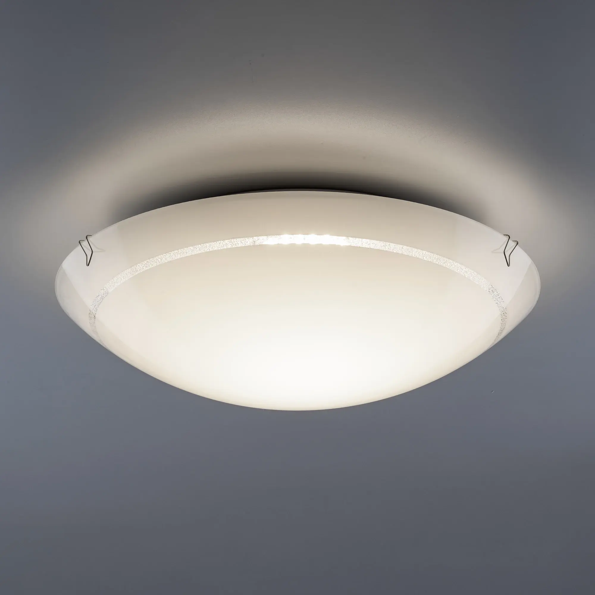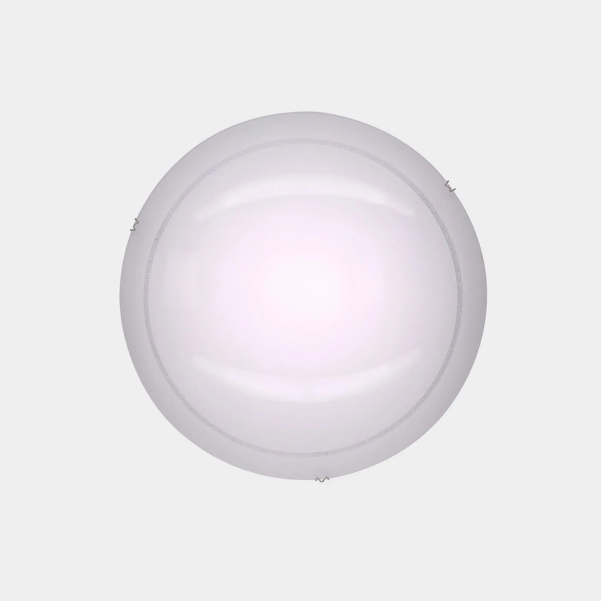 Светильник плоский – высота всего 7,5см, диаметр 30см. Мощность изделия 12Вт, цветовая температура 3000К – тёплый свет.