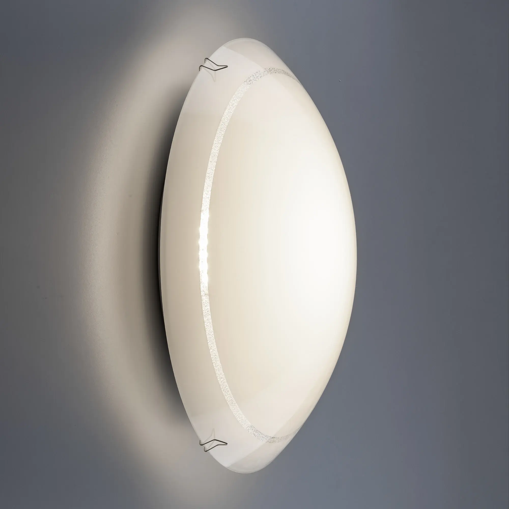Настенно-потолочный LED светильник Citilux Лайн CL918081 – это идеальное решение для вашего интерьера. Основание металлическое со встроенным светодиодным модулем. Плафон изготовлен из белого стекла с кольцевым рисунком и гладкой глянцевой поверхностью.