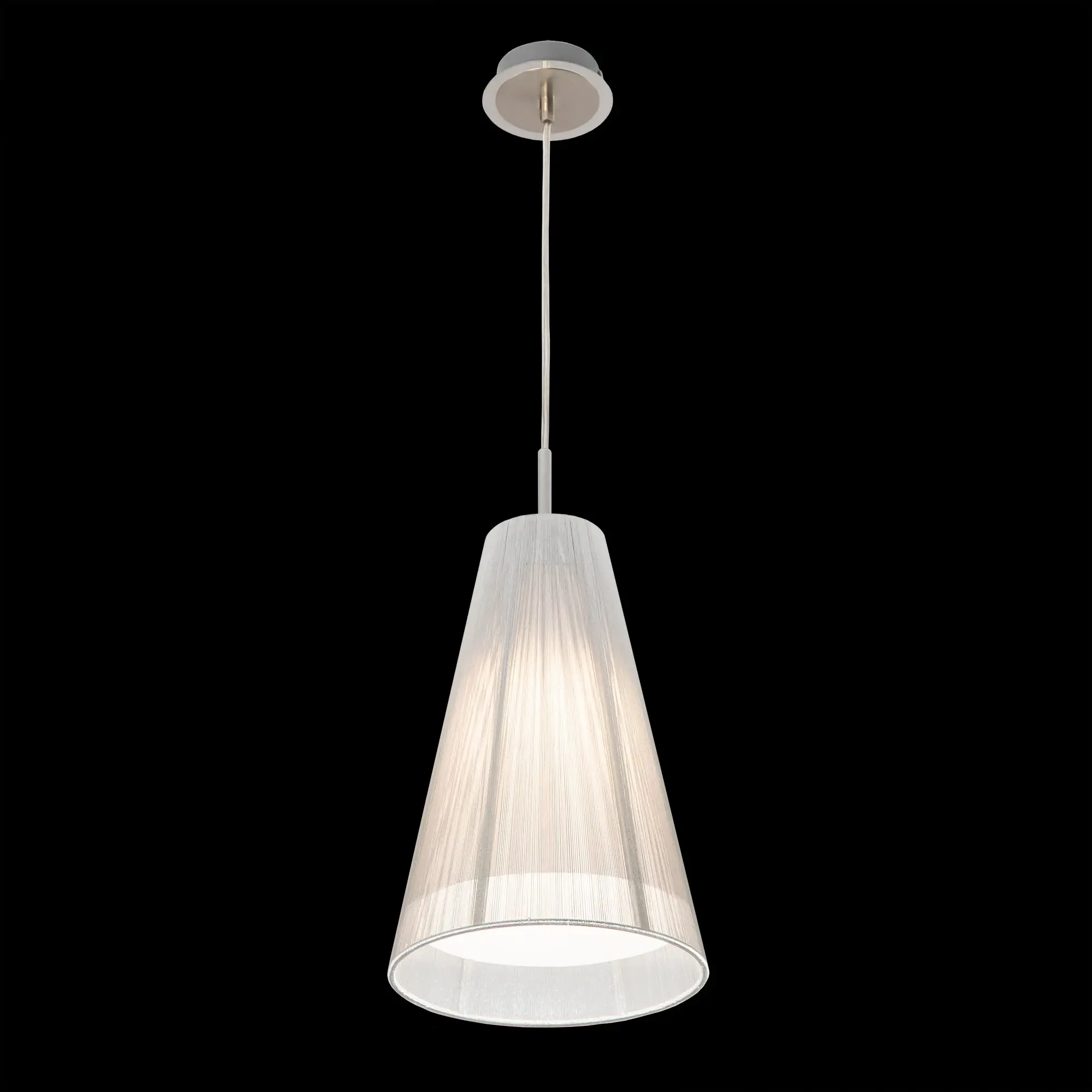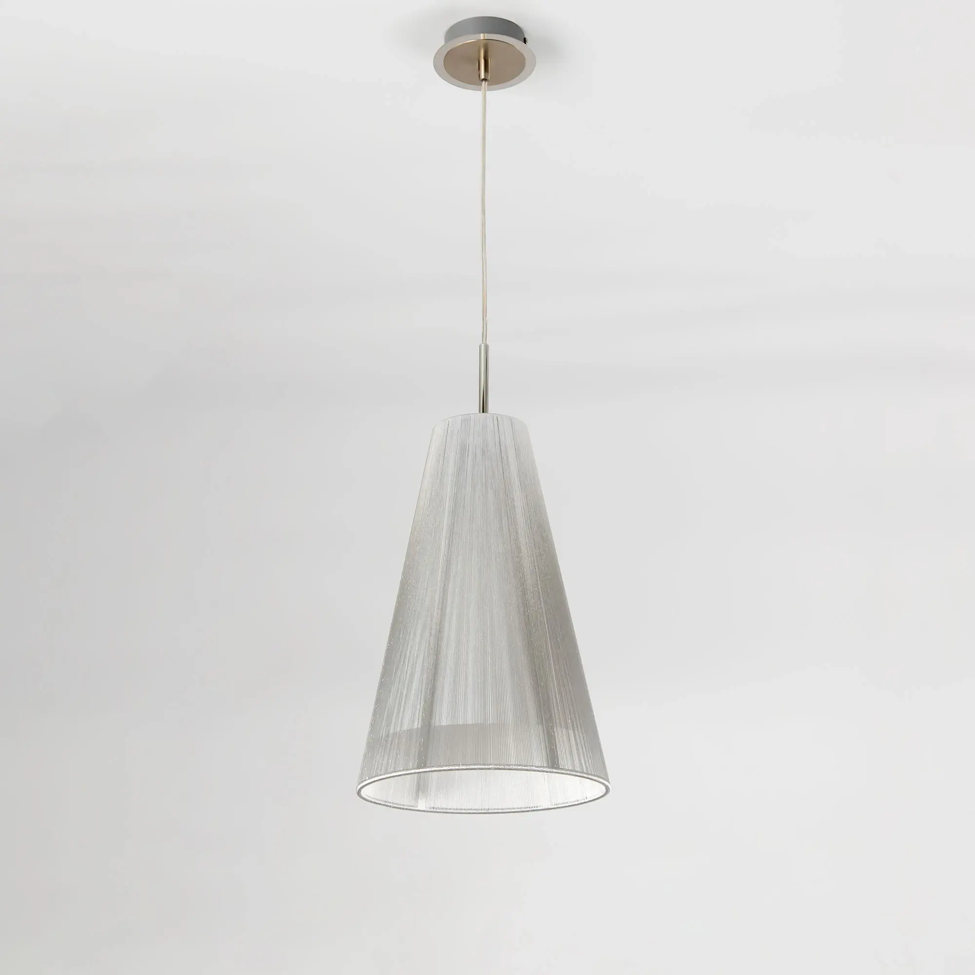 Утончённый подвесной светильник Citilux LOUIS CL936003 выполнен в современном стиле. Основание изготовлено из металла с хромированным покрытием, где блестящие поверхности эффектно сочетаются с матовыми, создавая игру текстур. Абажур, выполненный в форме усеченного конуса, обтянут тонкими серебристыми нитями, создающими эффект лёгкости и воздушности. Внутри абажура скрыт матовой акриловой рассеиватель, обеспечивающий равномерное свечение без резких бликов.