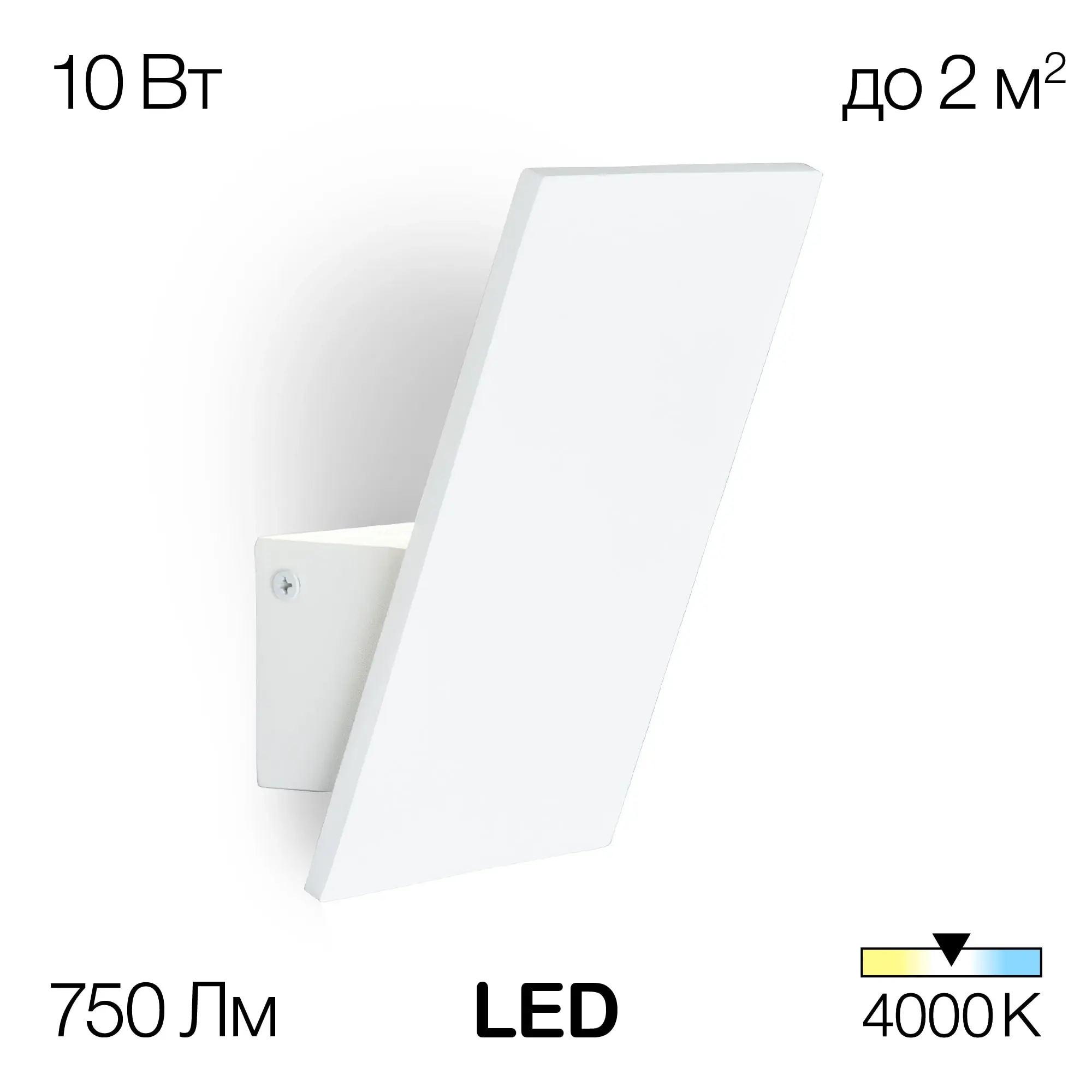 Корпус изделия металлический, цвет белый матовый. Мощность 10Вт, цветовая температура 4000К - нейтральный белый свет, который является наиболее естественным и комфортным для глаз. Высота светильника 17см, ширина 12см, глубина 9см.