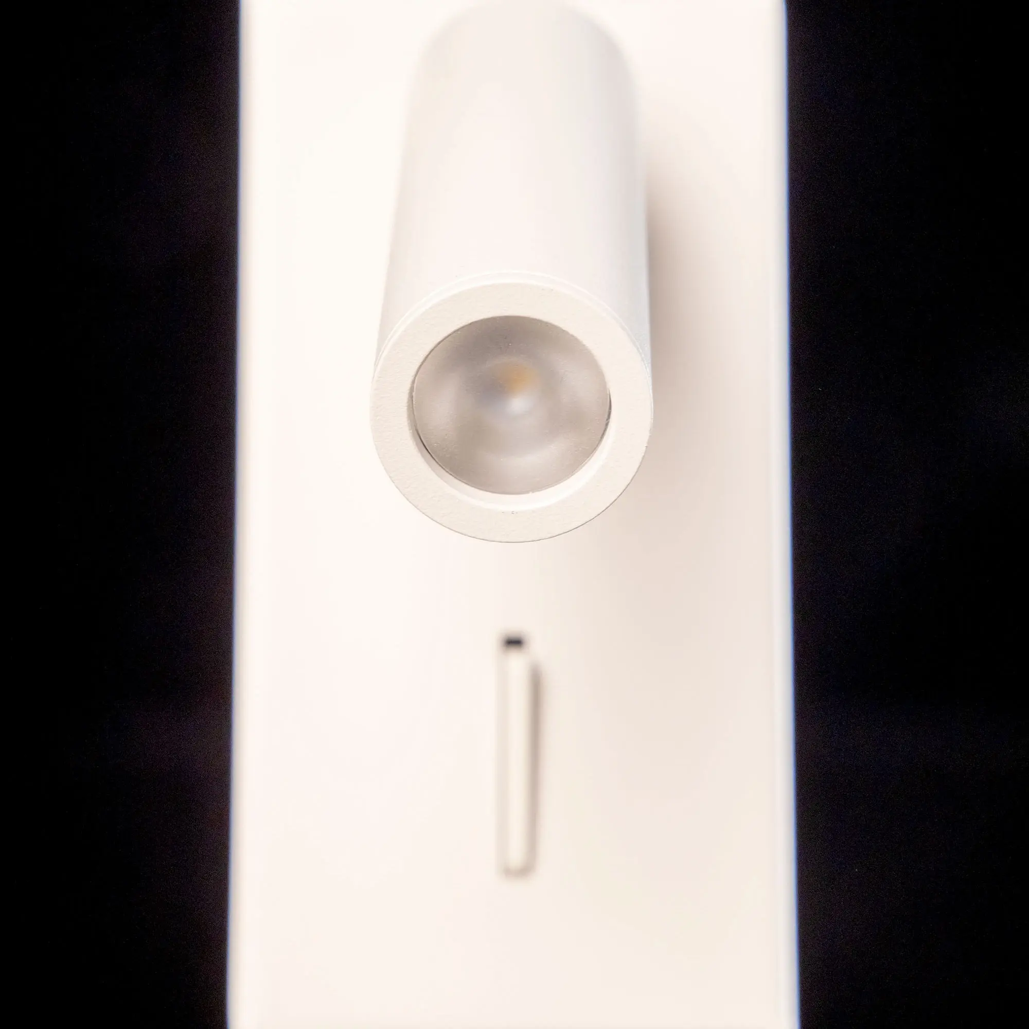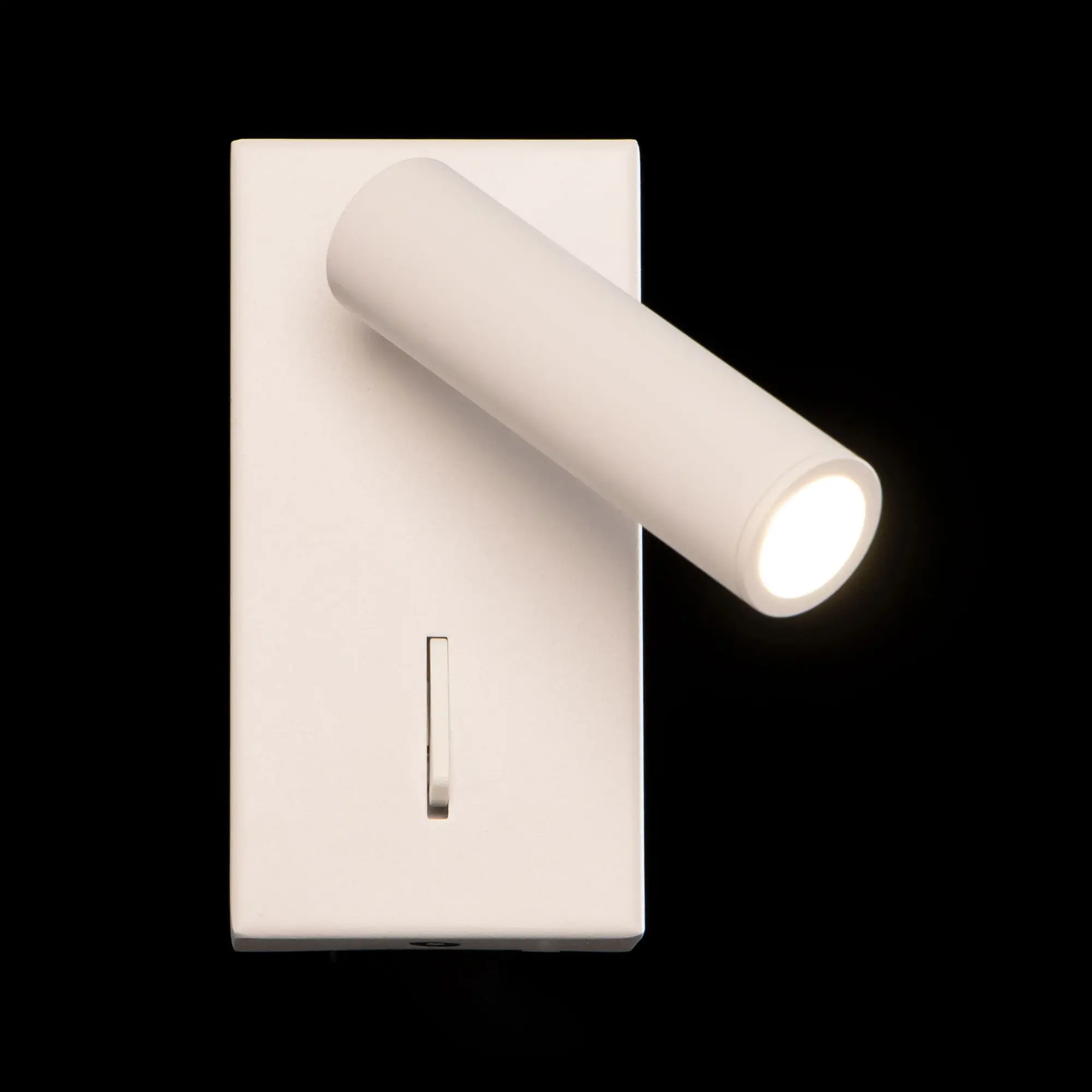 Настенный светодиодный светильник Citilux Декарт CL704350 для чтения. Корпус изделия металлический, прямоугольной формы, цвет белый матовый. Поворотная часть модели цилиндрической формы, со встроенным светодиодом, для акцентного и направленного освещения. Мощность 3Вт, световой поток 225Лм, цветовая температура 3000К – теплый свет. Тип крепления – планка.,