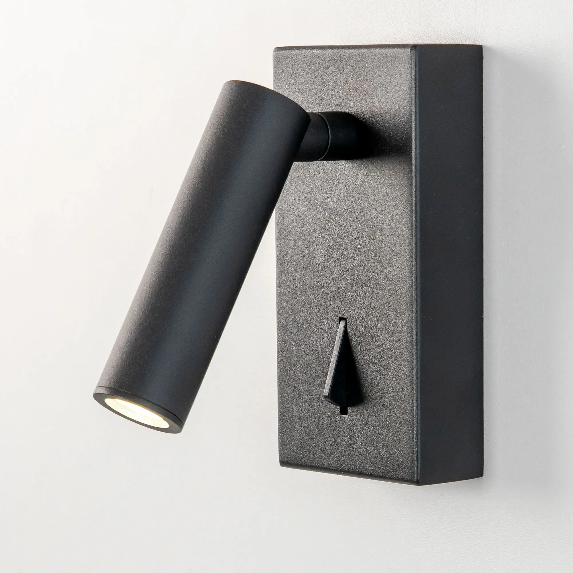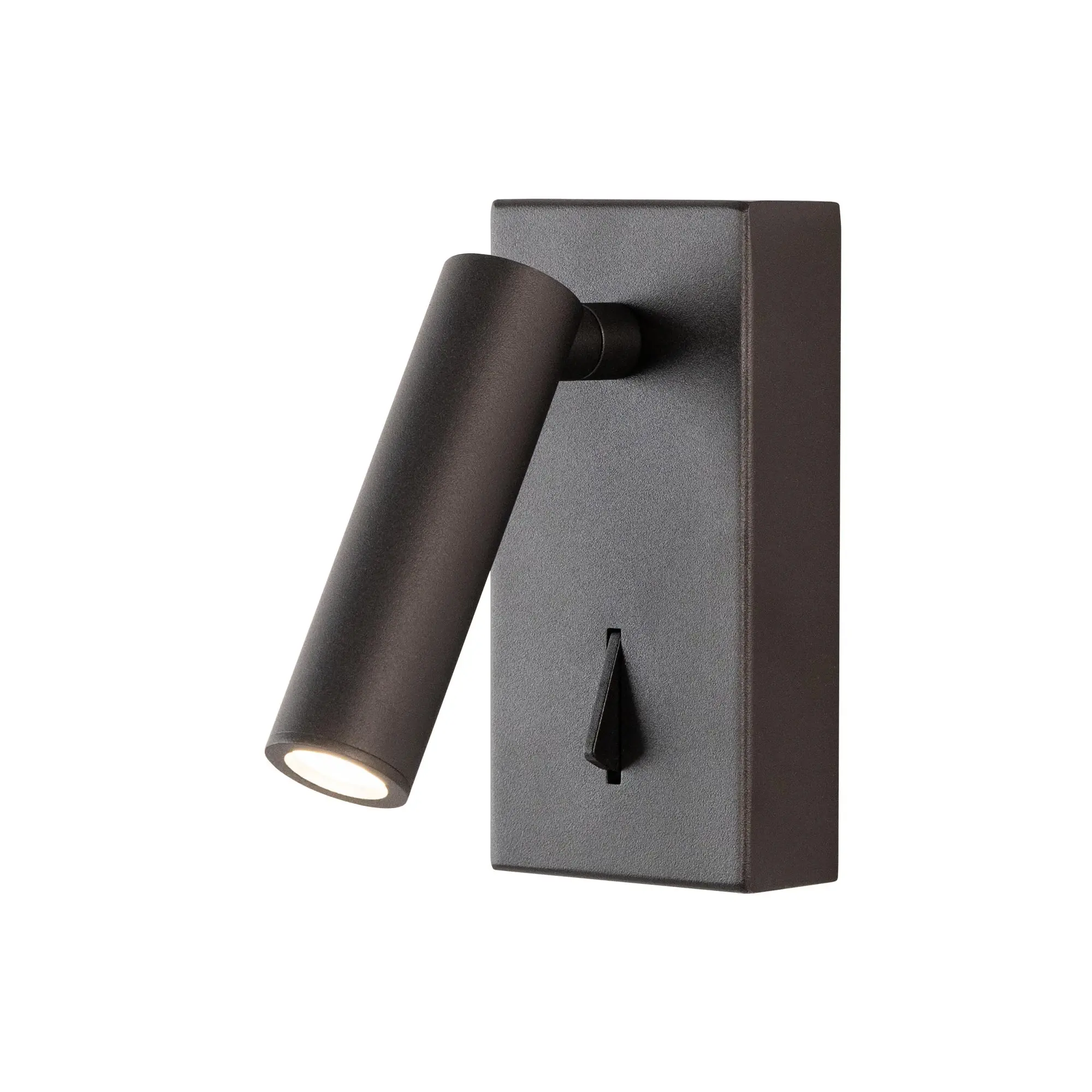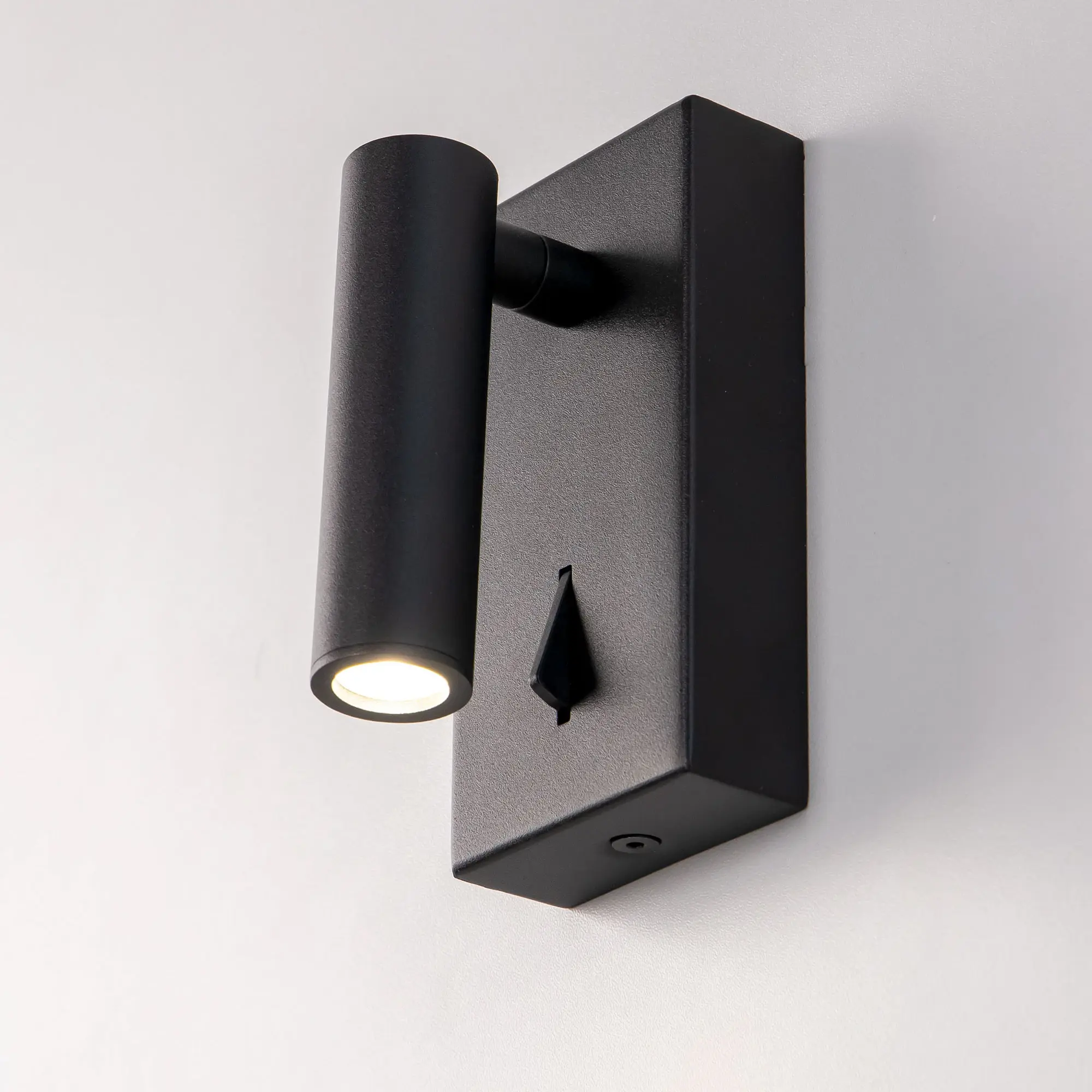 Настенный светодиодный светильник Citilux Декарт CL704351 для чтения. Корпус изделия металлический, прямоугольной формы, цвет чёрный матовый. Поворотная часть модели цилиндрической формы, со встроенным светодиодом, для акцентного и направленного освещения. Мощность 3Вт, световой поток 225Лм, цветовая температура 3000К – теплый свет. Тип крепления – планка.,