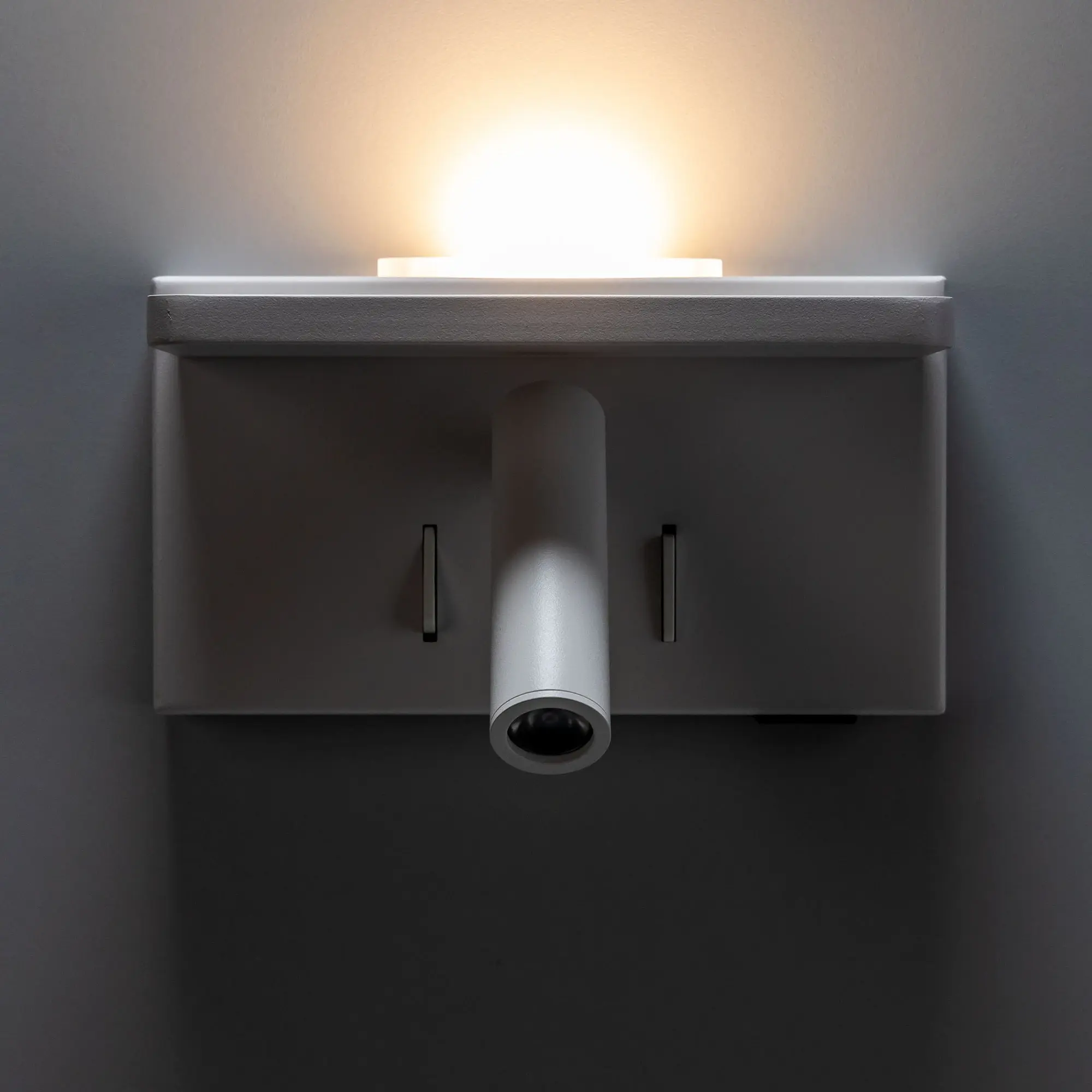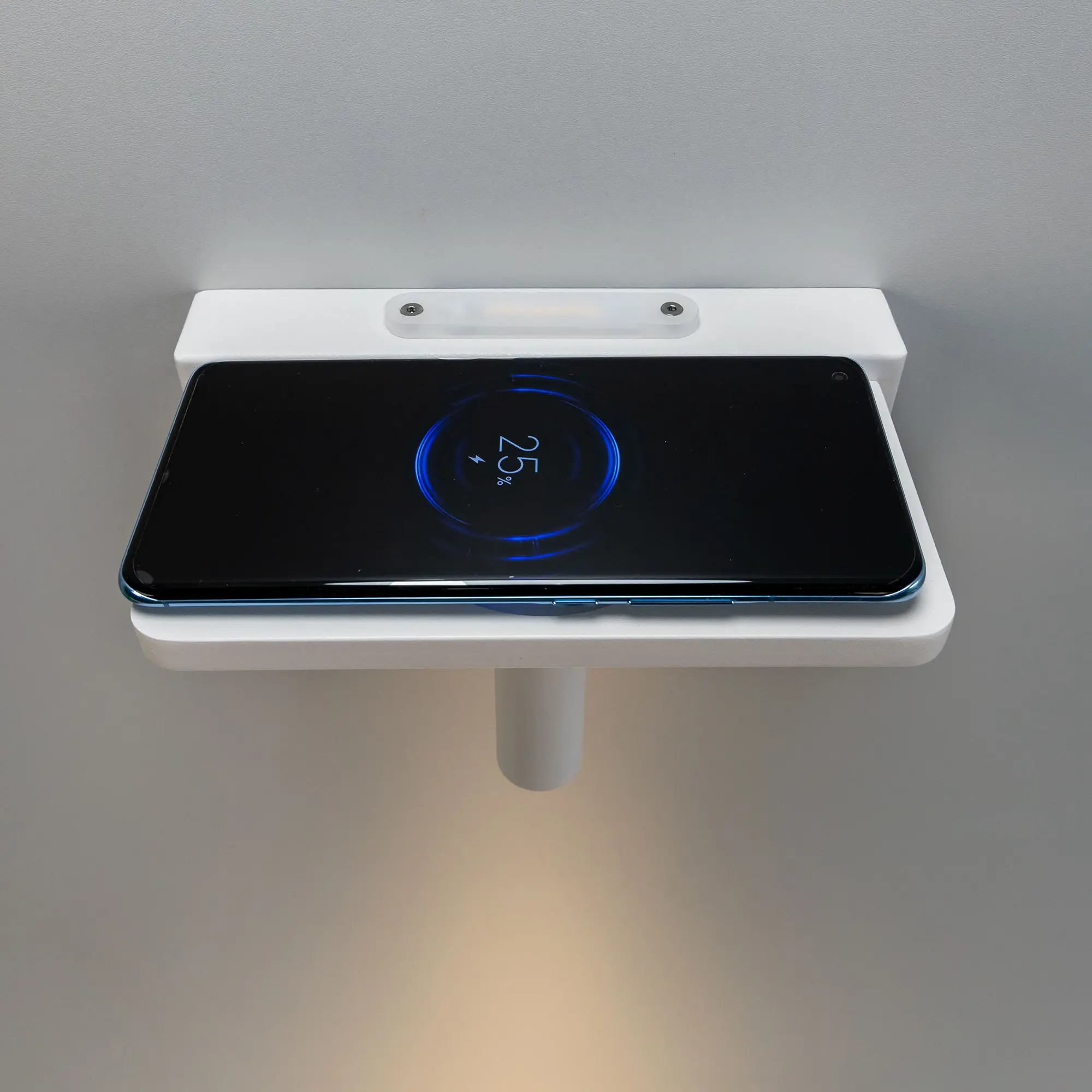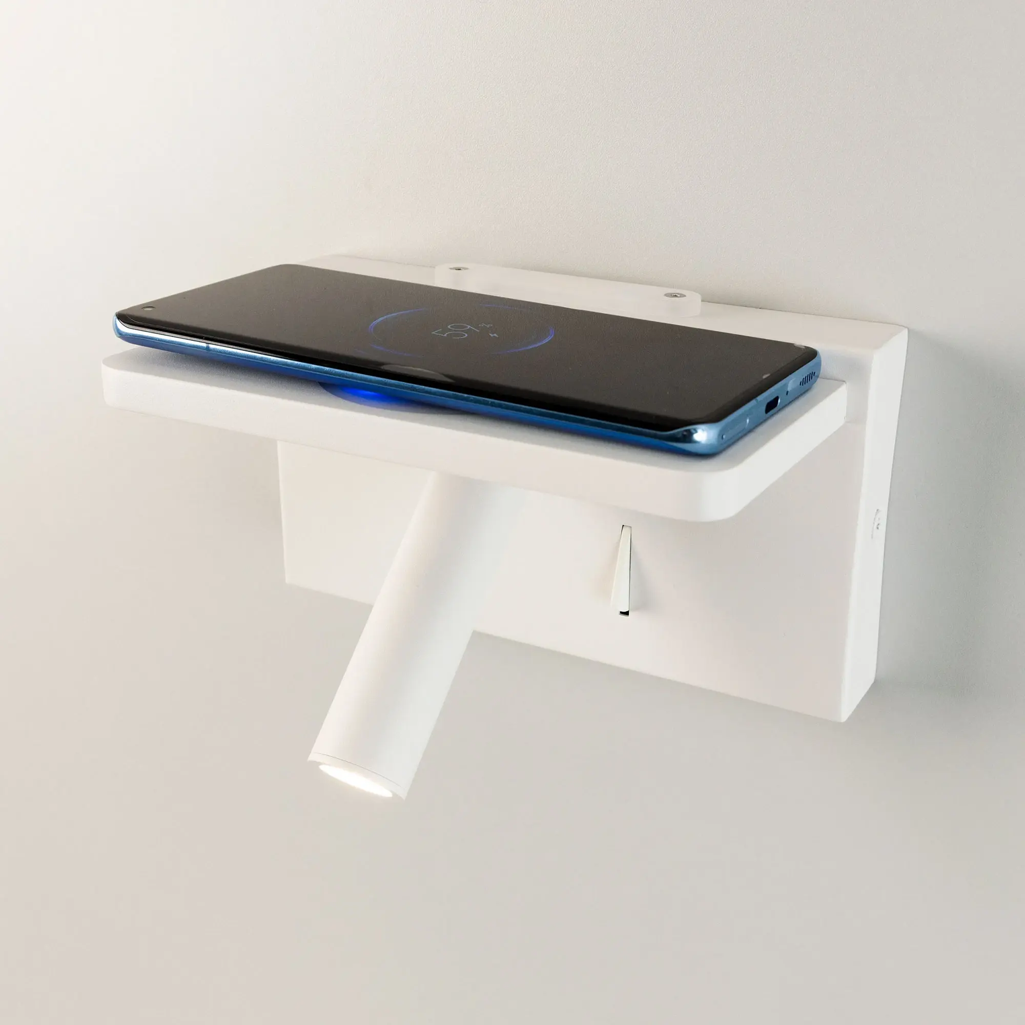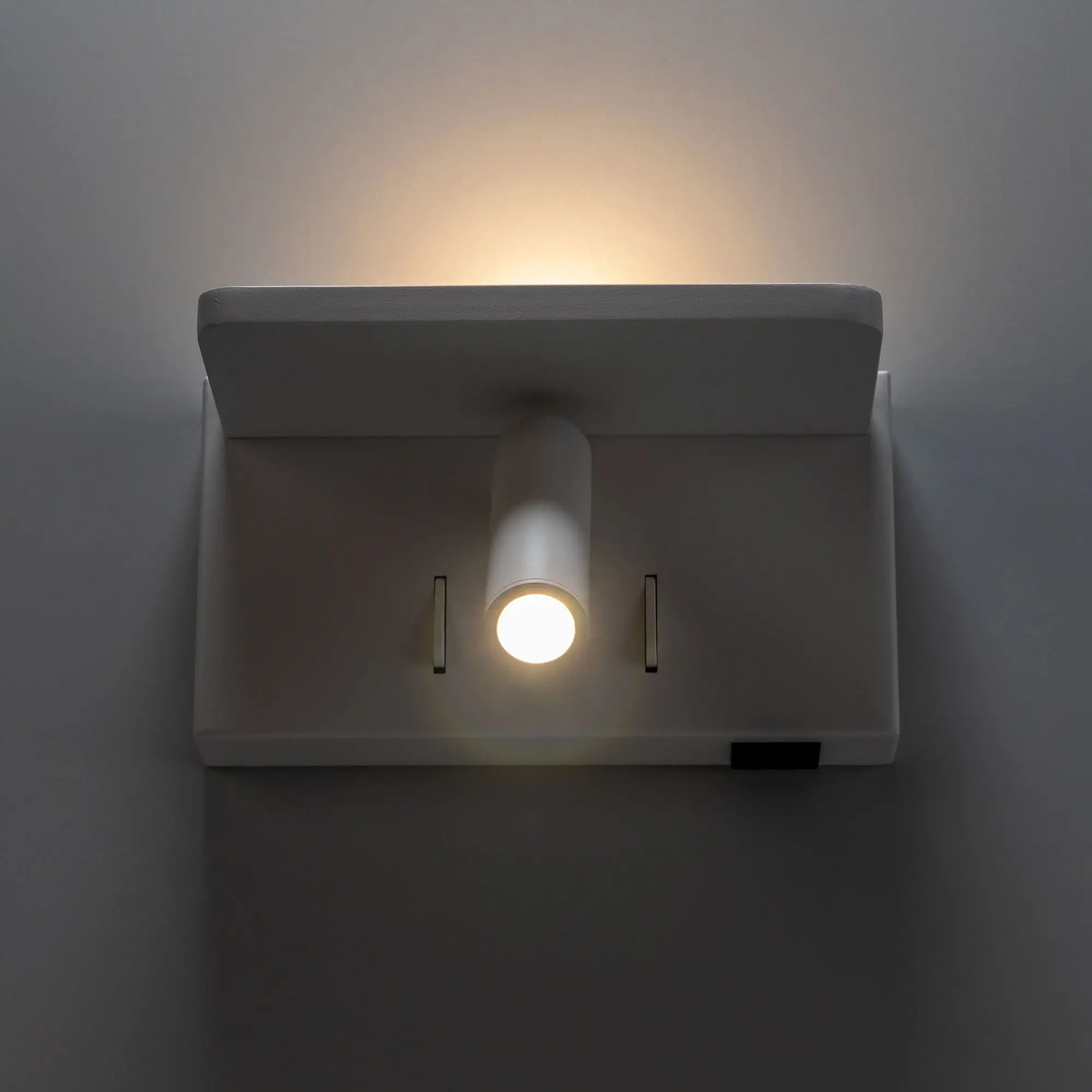 Современный светодиодный настенный светильник Citilux Декарт CL704370 USB Qi с подсветкой для чтения. Корпус металлический, цвет белый матовый. В изделии два источника света. Верхняя подсветка, для общего освещения, мощностью 3Вт. Нижняя направленная, поворотная подсветка, для акцентного освещения, мощностью 3Вт. Цветовая температура 3000К - тёплый белый свет. Обе подсветки с индивидуальным выключателем. Модель оснащена удобной беспроводной зарядкой для смартфонов стандарта Qi мощностью 10Вт и USB выходом 5В/2А. Светильник Citilux Декарт CL704370 можно использовать как прикроватный светильник, разместив в изголовье кровати или дивана. Подойдёт для квартир и загородных домов, отелей, гостиниц и хостелов.