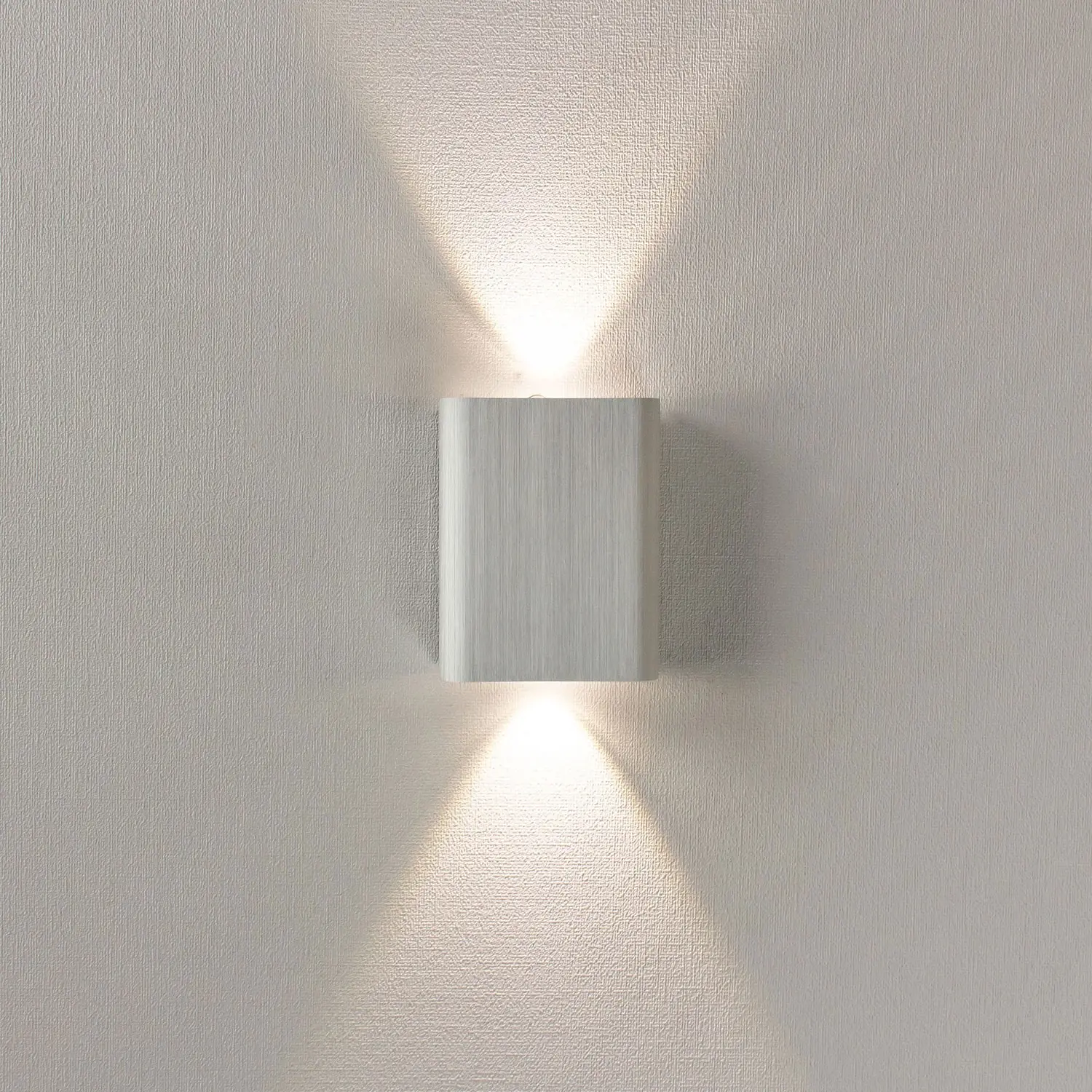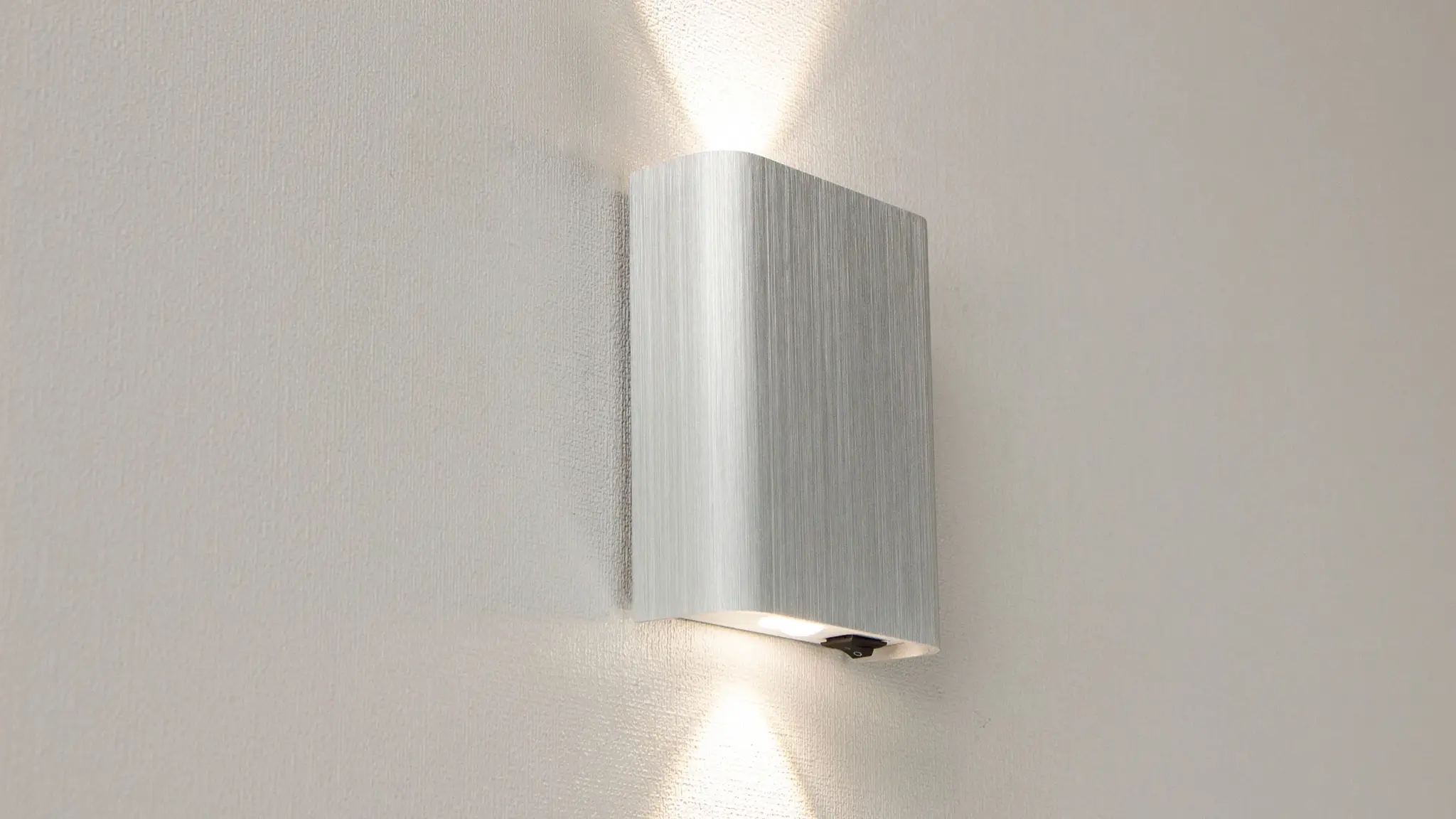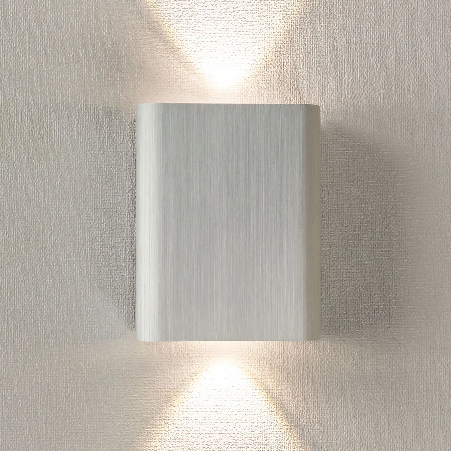 Корпус изделия металлический, цвет шлифованный алюминий. Модель компактная – высота 11см, ширина 9см. Светодиоды мощностью по 3Вт, расположенные сверху и снизу, обеспечивают мягкое и равномерное освещение. Цветовая температура 3000К – тёплый свет, безопасный для глаз, без мерцания и пульсаций. Благодаря удобному выключателю, вы можете легко управлять работой светильника и создавать комфортную атмосферу в модной квартире или уютном загородном доме.