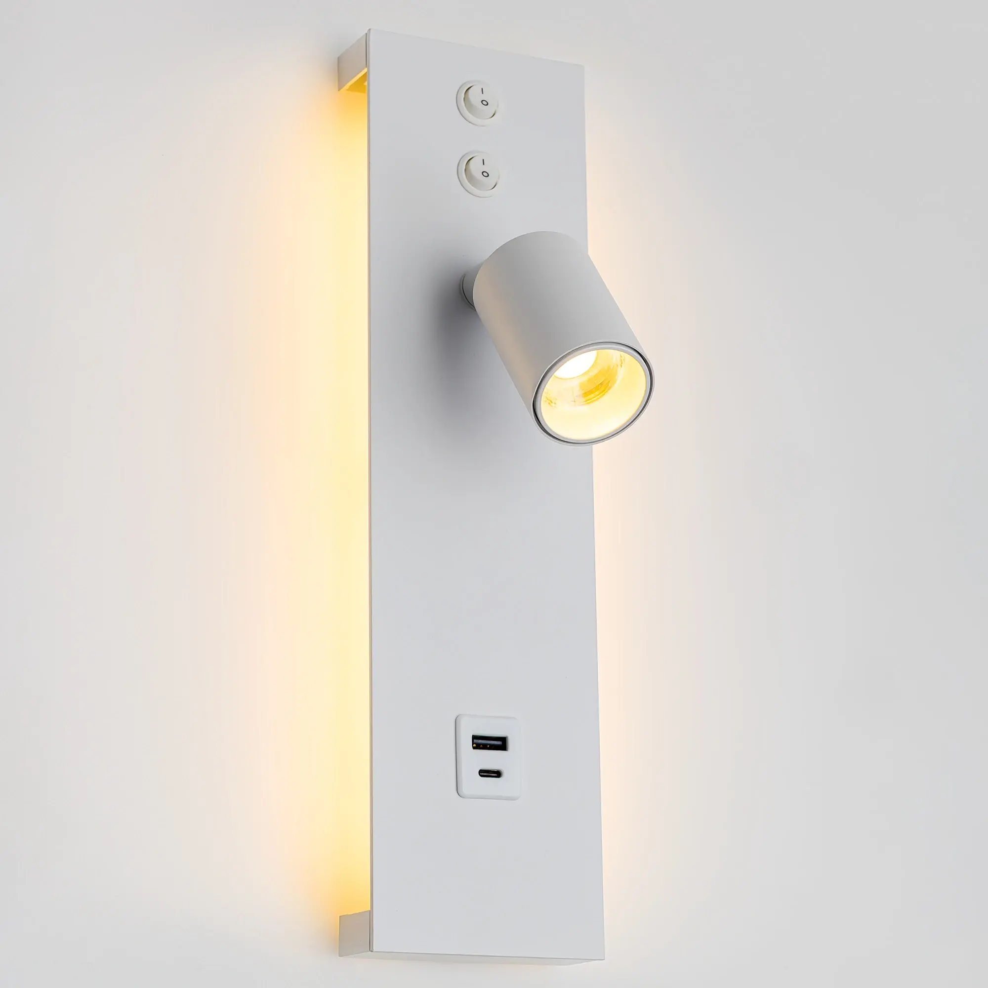 Среди главных особенностей данной модели является наличие фоновой подсветки основания - вверх и вниз, и поворотной подсветки для чтения. Каждый источник света оснащен отдельным выключателем, что обеспечивает удобство использования. Установка светильника возможна в вертикальном или горизонтальном положении, с ориентацией вправо или влево.