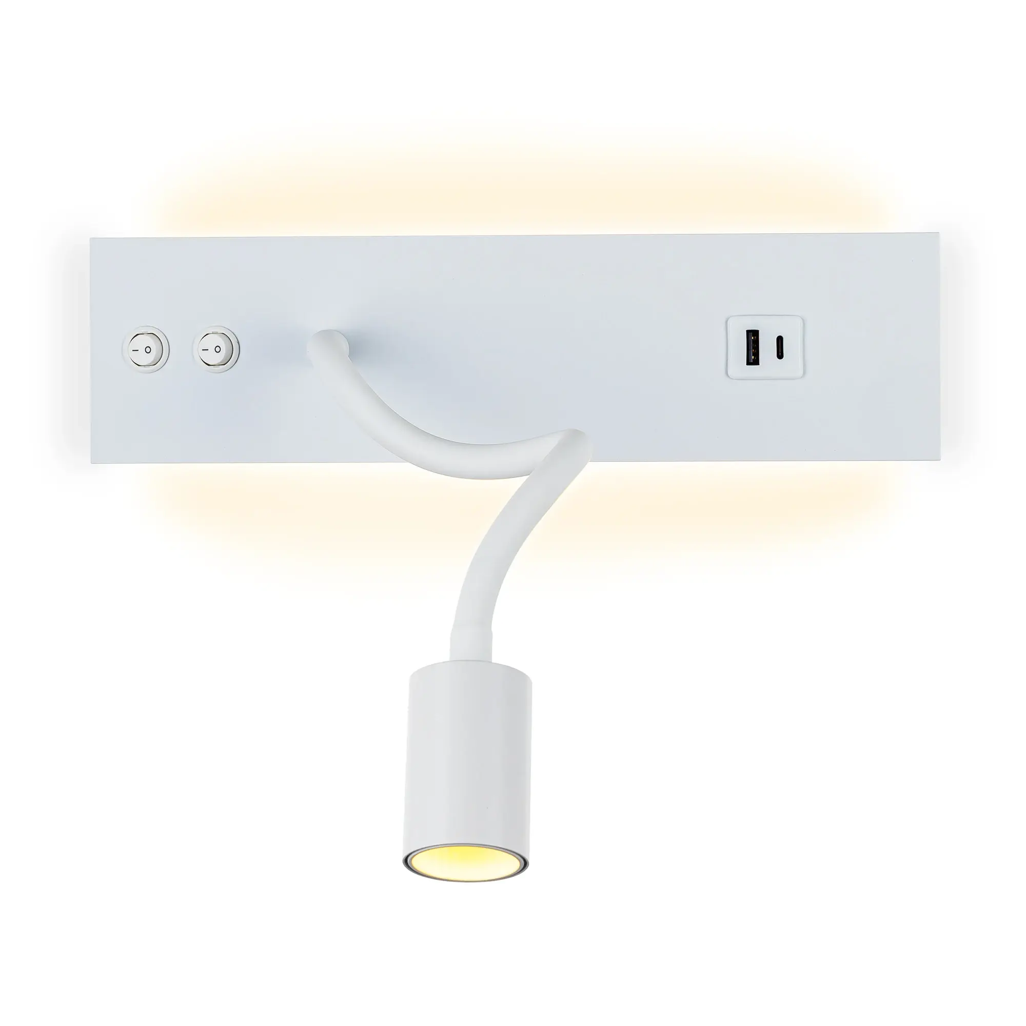 Настенный светодиодный светильник для чтения Citilux Dekart CL704470 - идеальное сочетание минимализма и функциональности. Лаконичный прямоугольный металлический корпус, окрашенный белой матовой текстурной краской, придаёт изделию элегантный современный вид.