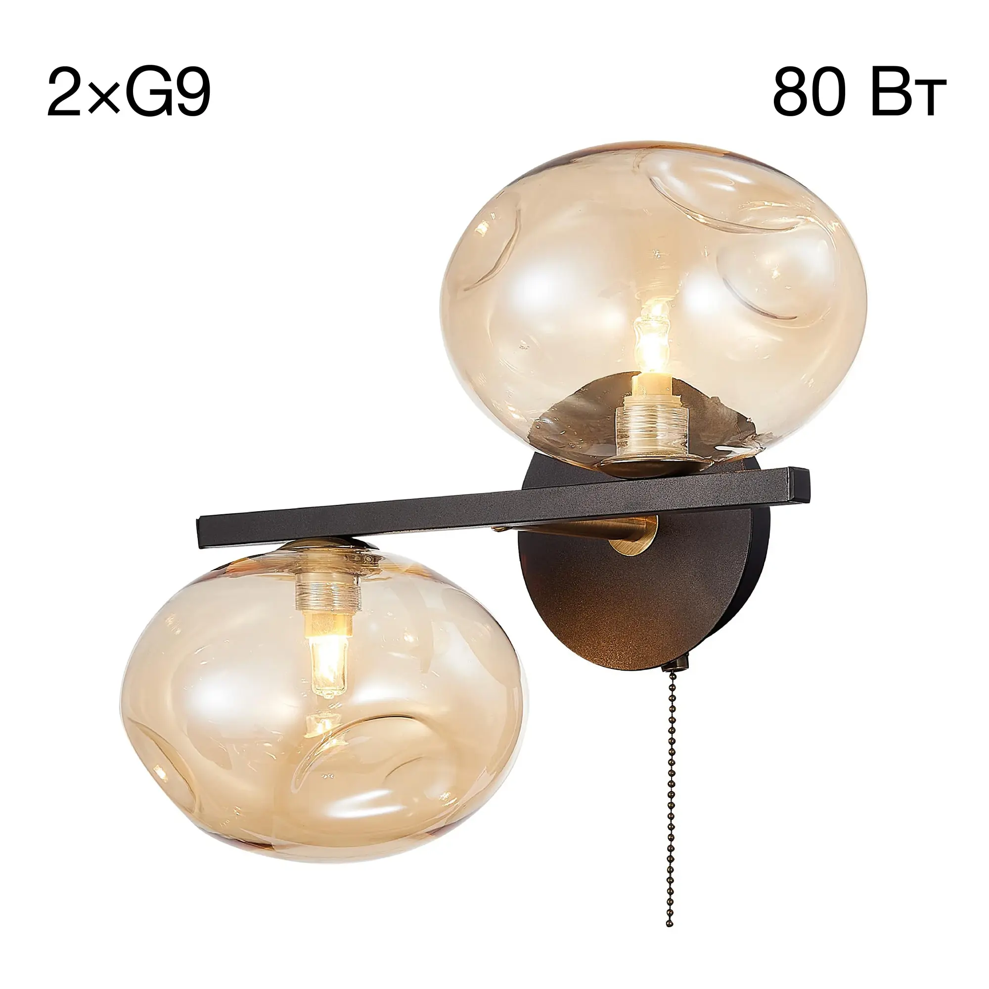 Настенный светильник Citilux Девис CL201321. Корпус светильника металлический, с круглым основанием. Цвет коричневый, с декоративными бронзовыми элементами. Стеклянные прозрачные плафоны необычной формы модного оттенка шампань. В бра две лампы с цоколем G9 и максимальной мощностью для галогеновых ламп 40Вт. Светодиодные лампы можно использовать более яркие. Тип крепления – планка. Площадь освещения около 3 кв. метров.,