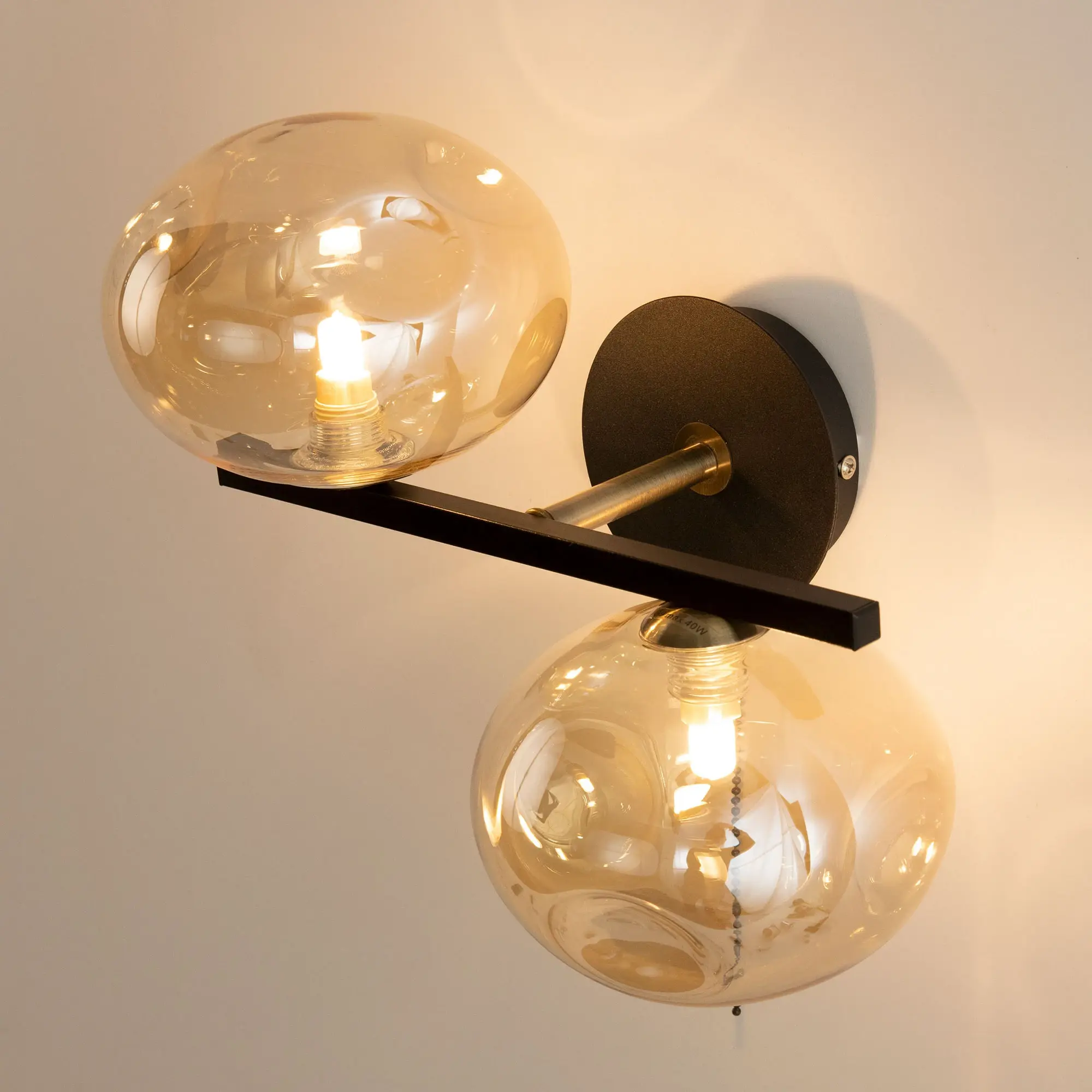 Настенный светильник Citilux Девис CL201321. Корпус светильника металлический, с круглым основанием. Цвет коричневый, с декоративными бронзовыми элементами. Стеклянные прозрачные плафоны необычной формы модного оттенка шампань. В бра две лампы с цоколем G9 и максимальной мощностью для галогеновых ламп 40Вт. Светодиодные лампы можно использовать более яркие. Тип крепления – планка. Площадь освещения около 3 кв. метров