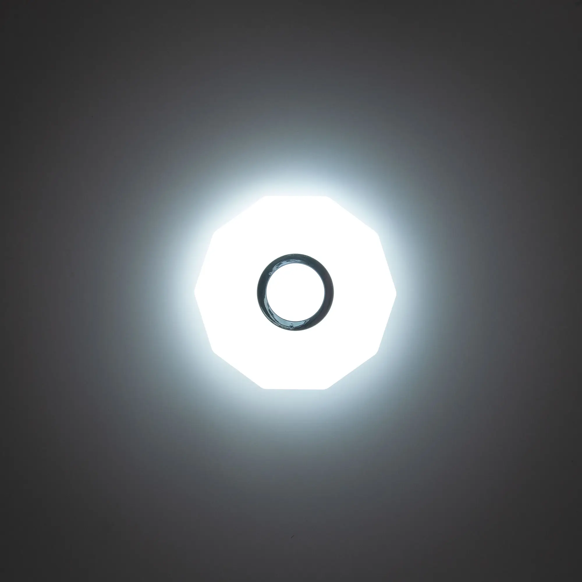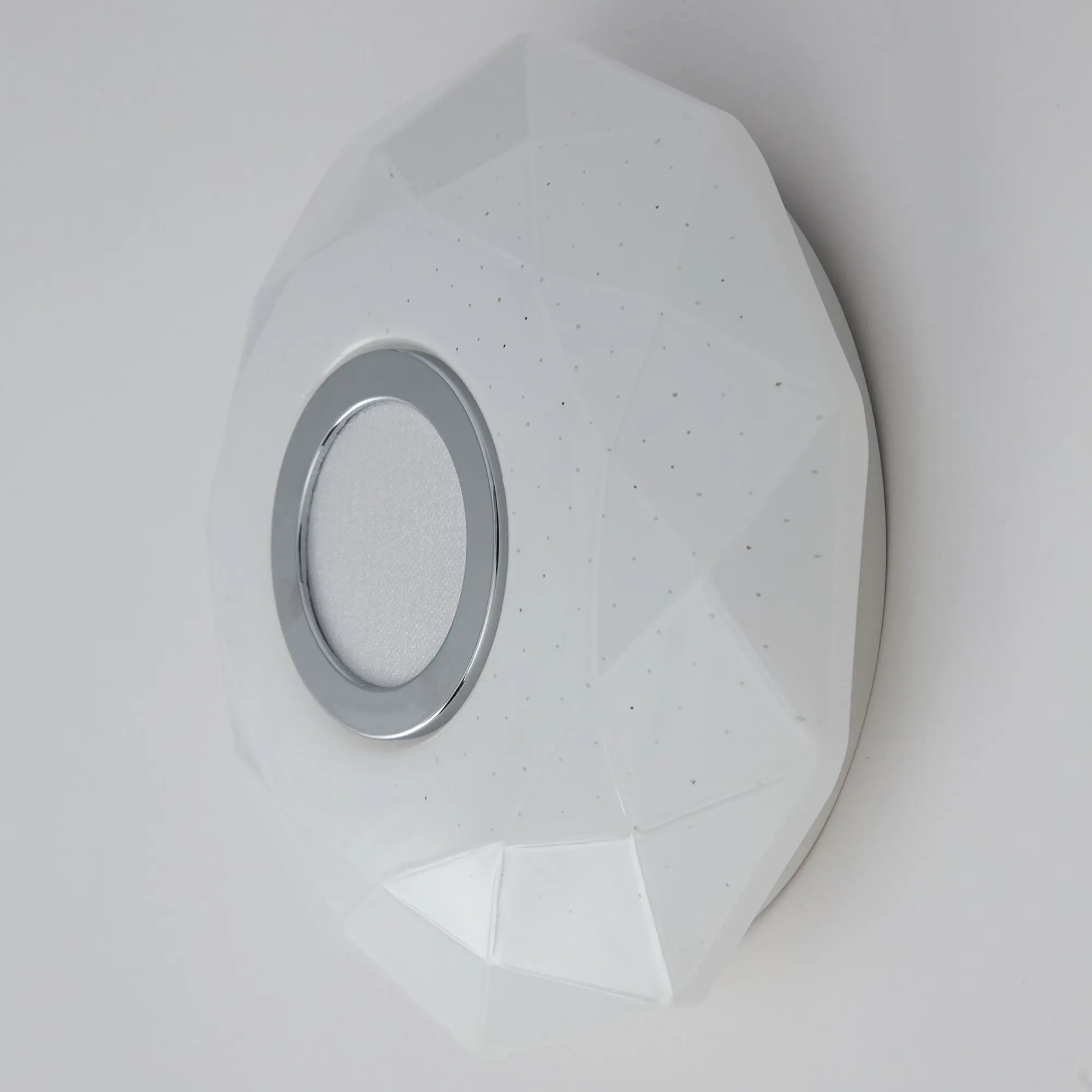 Светодиодный светильник Citilux Диамант Смарт CL713A10G выполнен в современном стиле. Плафон белый глянцевый с чёткими гранями, эффектом звездного небо и хромированным декором. Модель оснащена яркими светодиодами холодного и теплого света, а также цветной RGB подсветкой. Крепление подходит для всех типов стен и потолков, в том числе натяжных. Мощность 13Вт, световой поток 1000Лм, осветит до 4м². Диаметр 20,2см, высота 6см. Предустановлено 4 режима освещения, с управлением обычным настенным выключателем.