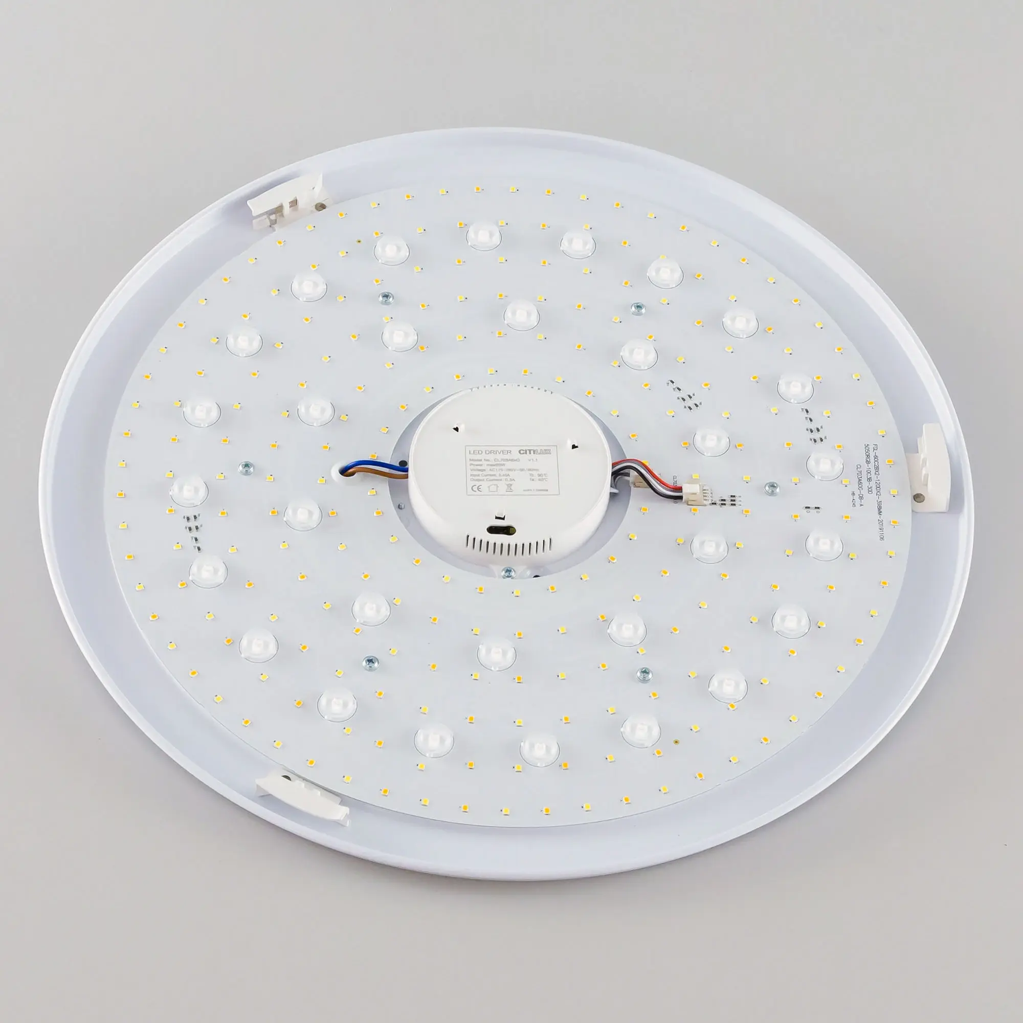 Модель оснащена мощными светодиодами холодного и теплого света, независимой цветной подсветкой RGB. Мощность светильника 65Вт, с диммером и функцией плавной регулировки.