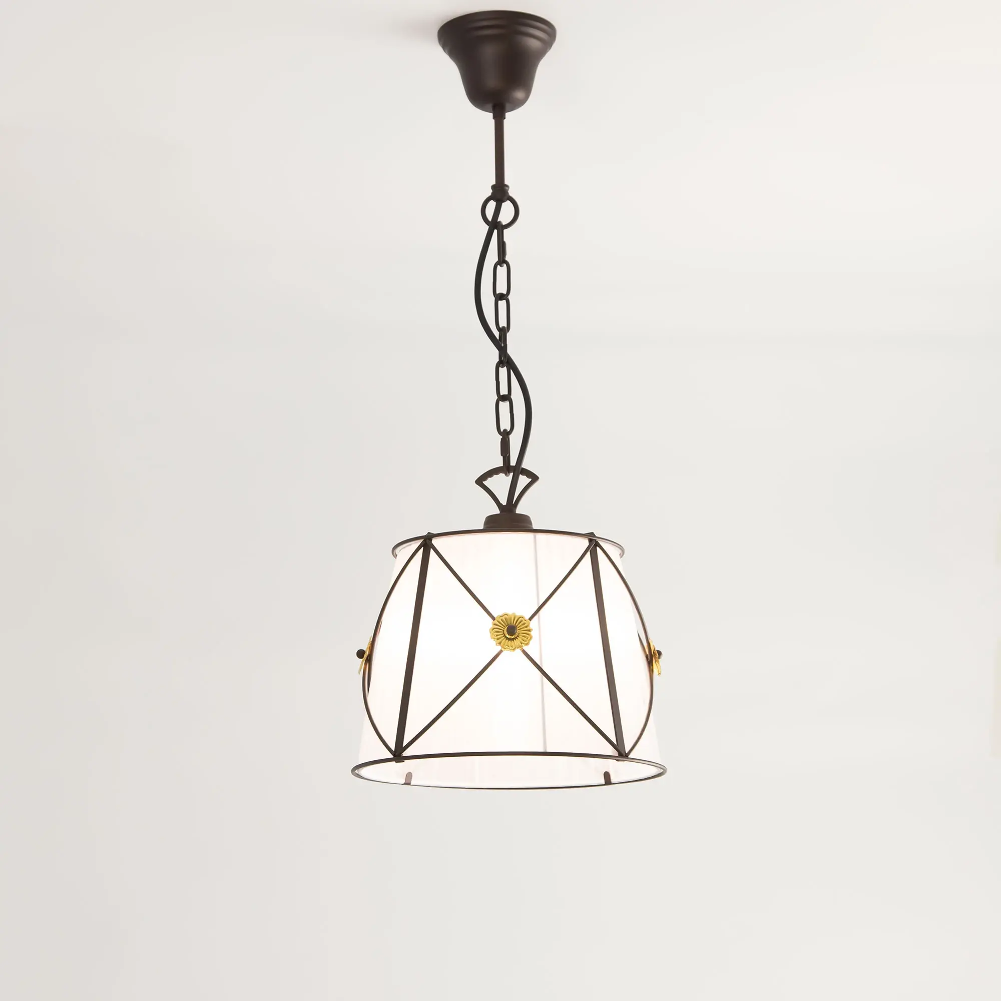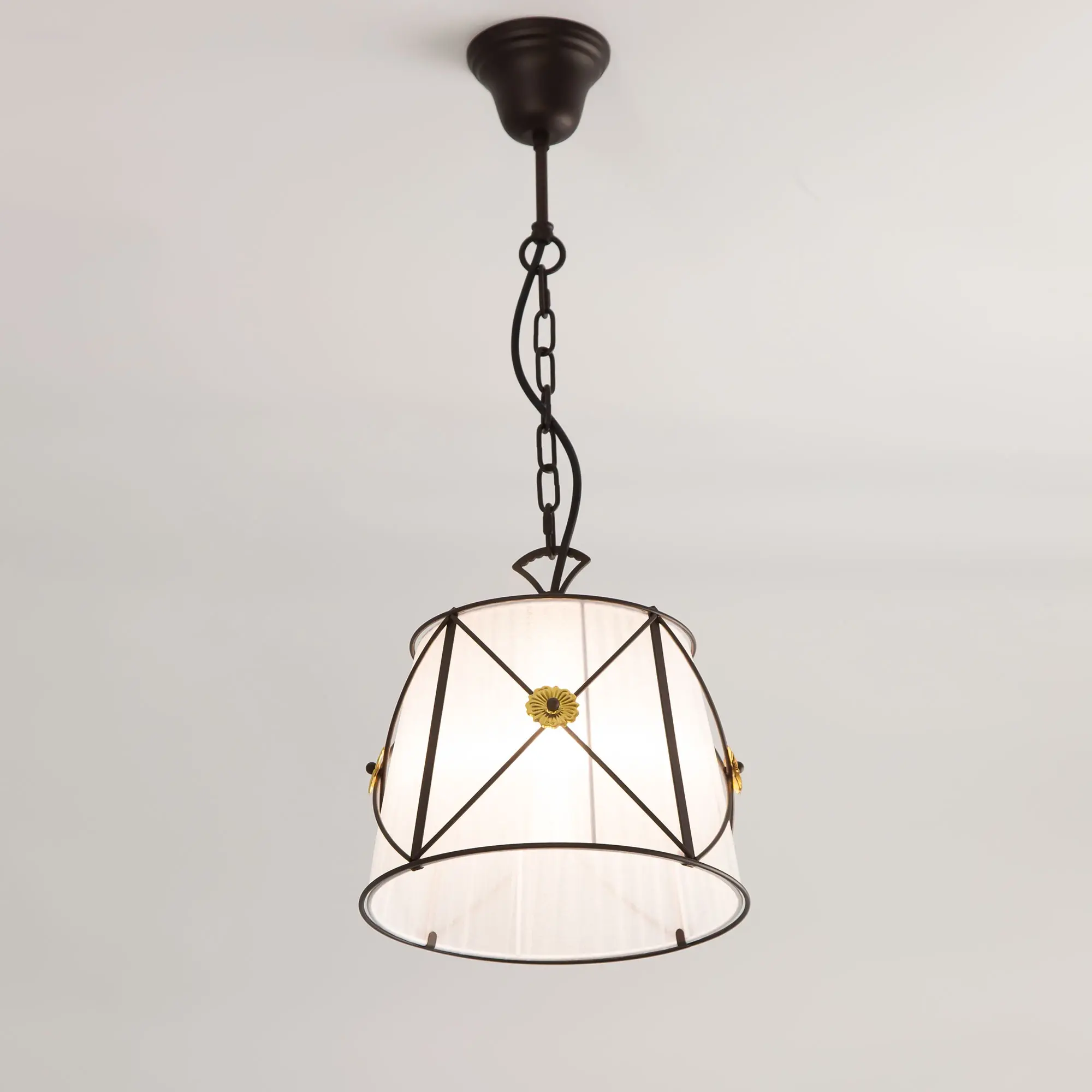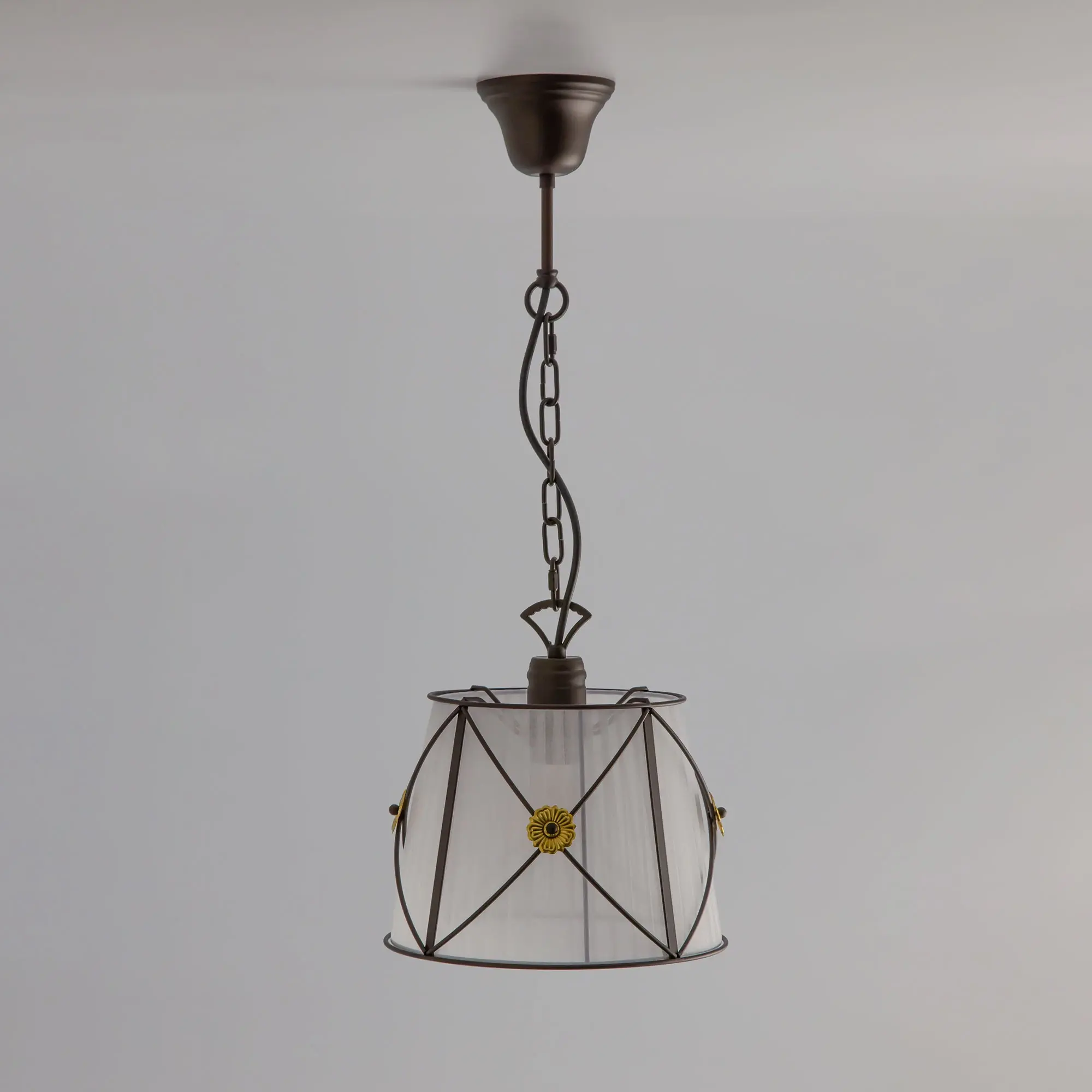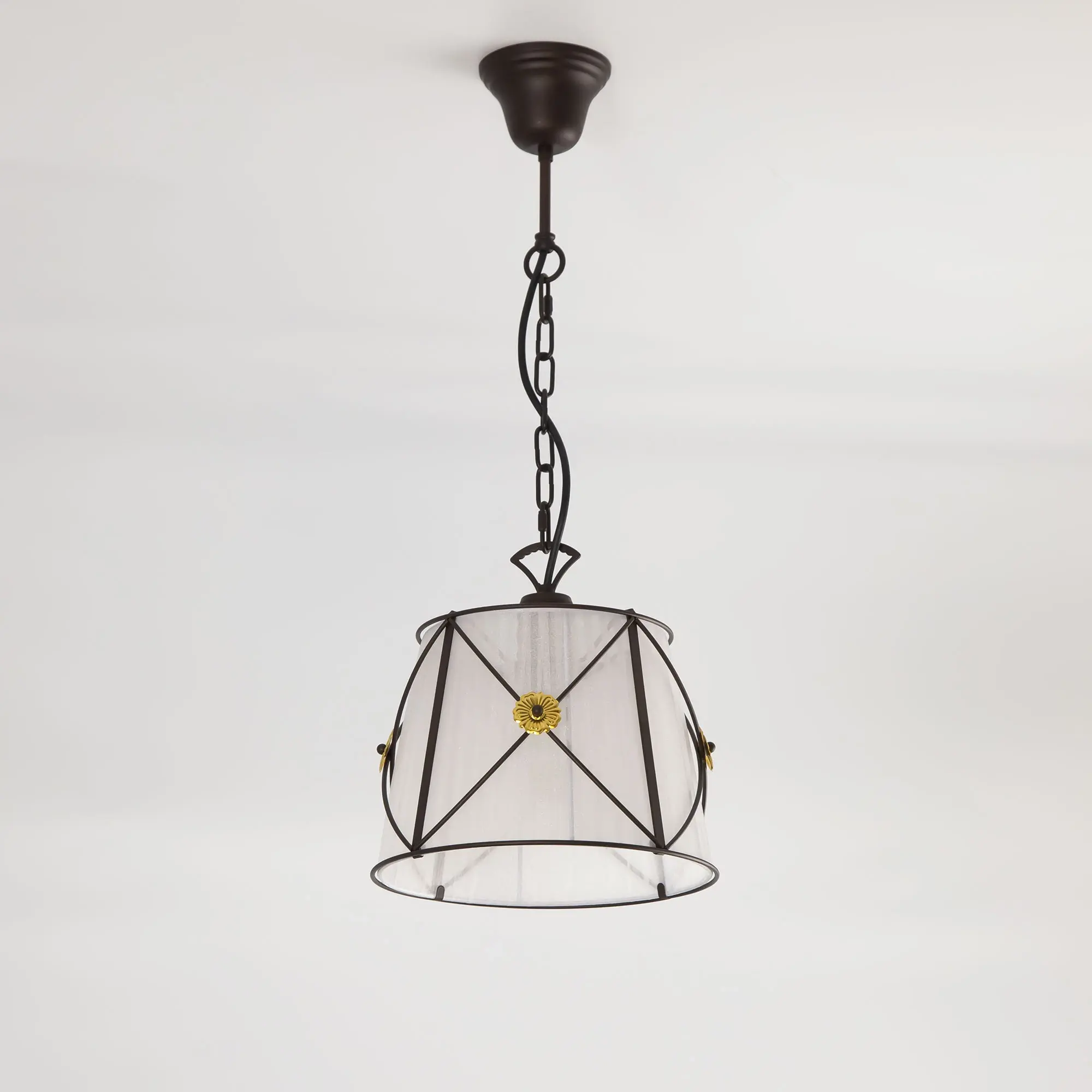 Подвесная люстра Citilux Дрезден CL409212 выполнена в классическом стиле. Корпус металлический, коричневого цвета. Стильный абажур из плиссированной полупрозрачной белой органзы украшен винтажным металлическим декором. В изделии используется 1 лампа с цоколем Е27, максимальной мощностью для ламп накаливания 75Вт (в комплект не входит, приобретается отдельно). Высота светильника легко регулируется в диапазоне от 40см до 1,25м.