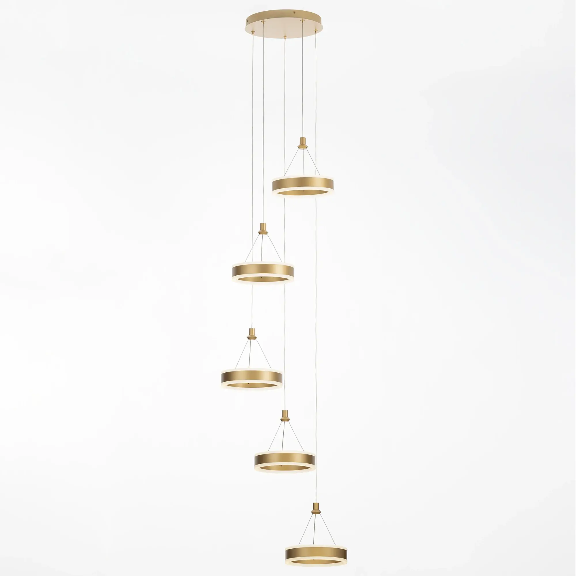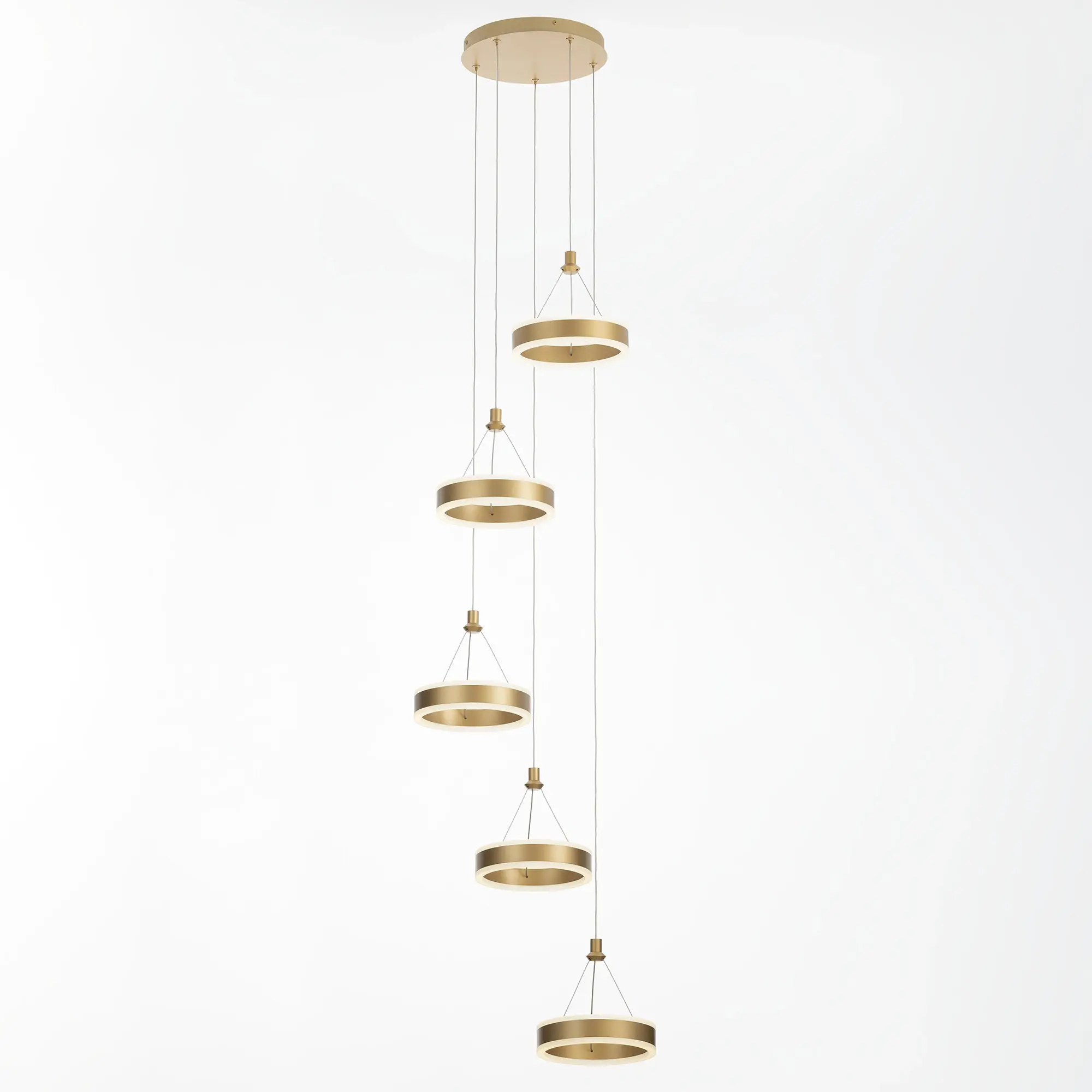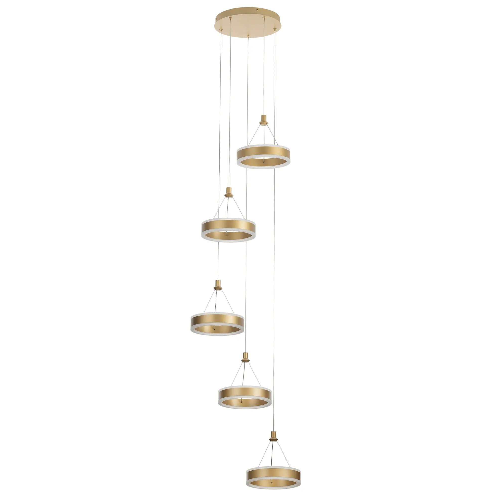 Светодиодный каскадный светильник Citilux Дуэт CL719052 выполнен в современном стиле. Корпус металлический, цвет благородное золото. Светильник состоит из круглого основания и пяти подвесных колец. Кольцо - светодиодный модуль, корпус изготовлен из алюминиевого профиля, рассеиватель из оптического полимера. Наличие источников света с двух сторон профиля позволяет равномерно осветить всё помещение.