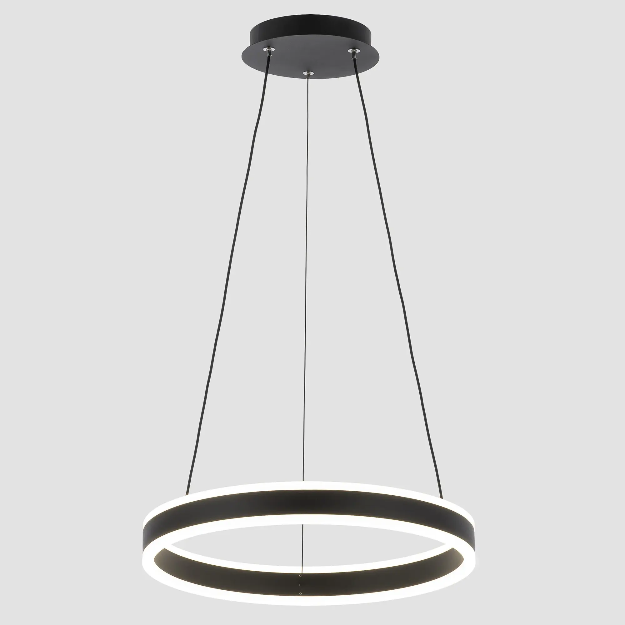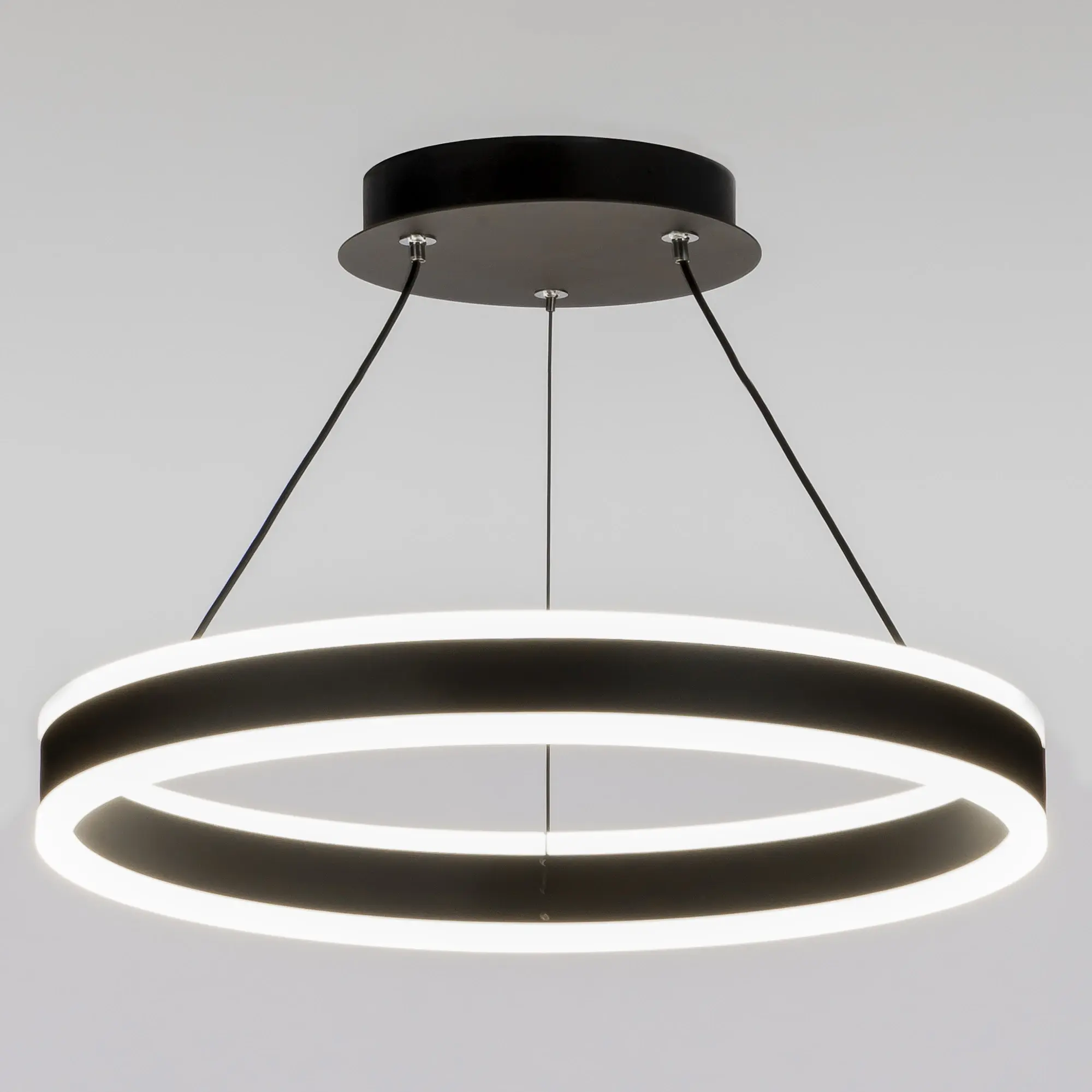 Светодиодная подвесная люстра кольцо Citilux Дуэт CL719401 выполнена в современном стиле. Корпус металлический, чёрного цвета. Кольцо - светодиодный модуль, изготовленный из алюминиевого профиля, рассеиватель из оптического полимера. Наличие источников света с двух сторон профиля позволяет равномерно осветить всё помещение.