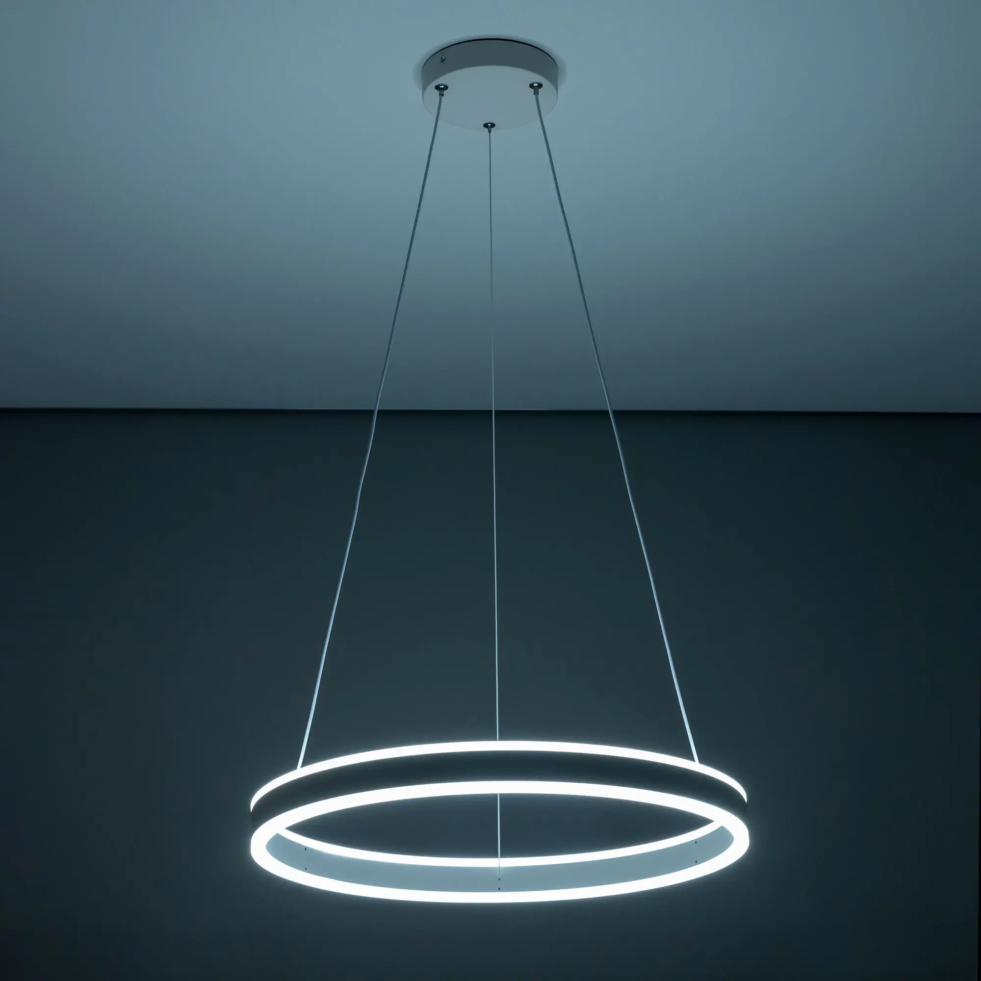 Белая светодиодная люстра с подвесным кольцом Citilux Дуэт CL719500 выполнена в современном стиле. Кольцо - светодиодный модуль, изготовленный из алюминиевого профиля, рассеиватель из оптического полимера. Наличие источников света с двух сторон профиля позволяет равномерно осветить всё помещение.
