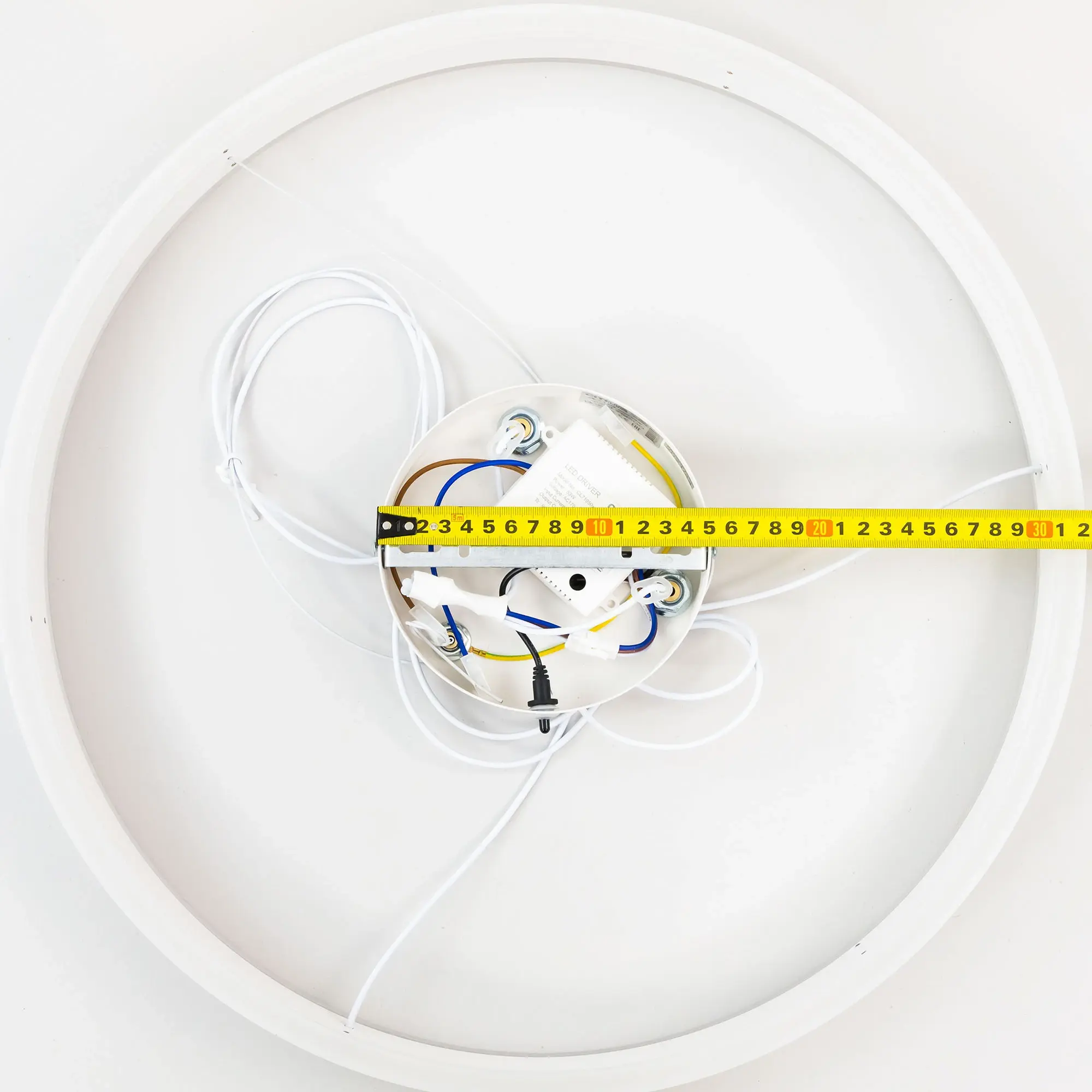 С помощью пульта доступно: плавная регулировка яркости от 10 до 100%; управление цветовой температурой от 3000К до 5500К, позволяет настроить любые оттенки теплого, нейтрального и холодного света. Есть функция отсроченного выключения, 4 настраиваемых режима памяти, которыми также можно управлять настенным выключателем. Пульт ДУ в комплекте, тип батареек ААА (батарейки в комплект не входят, приобретаются отдельно). Мощность изделия 53Вт, диаметр 50см, высота легко регулируется от 17см до 1,2м. Крепление подходит для всех типов потолков, в том числе натяжных, тип крепления – планка.