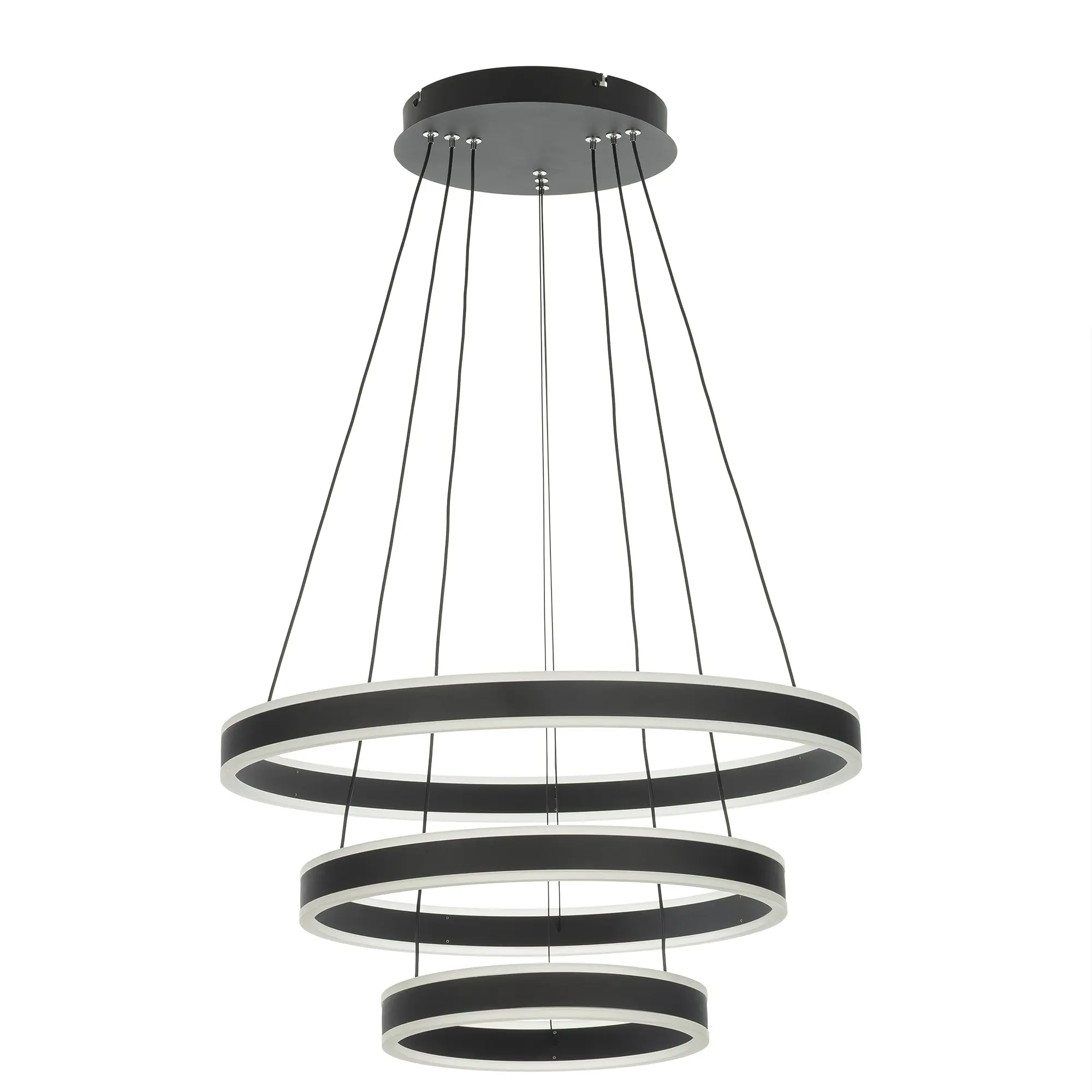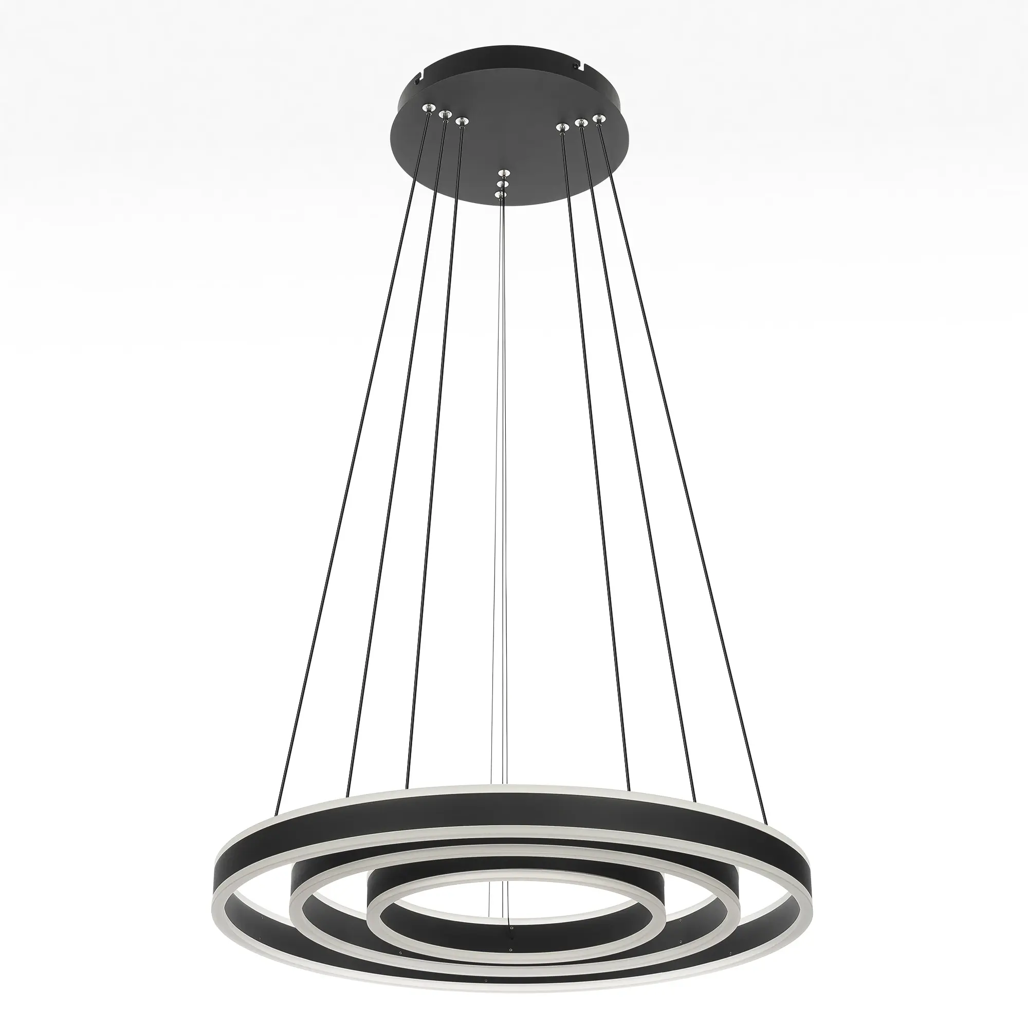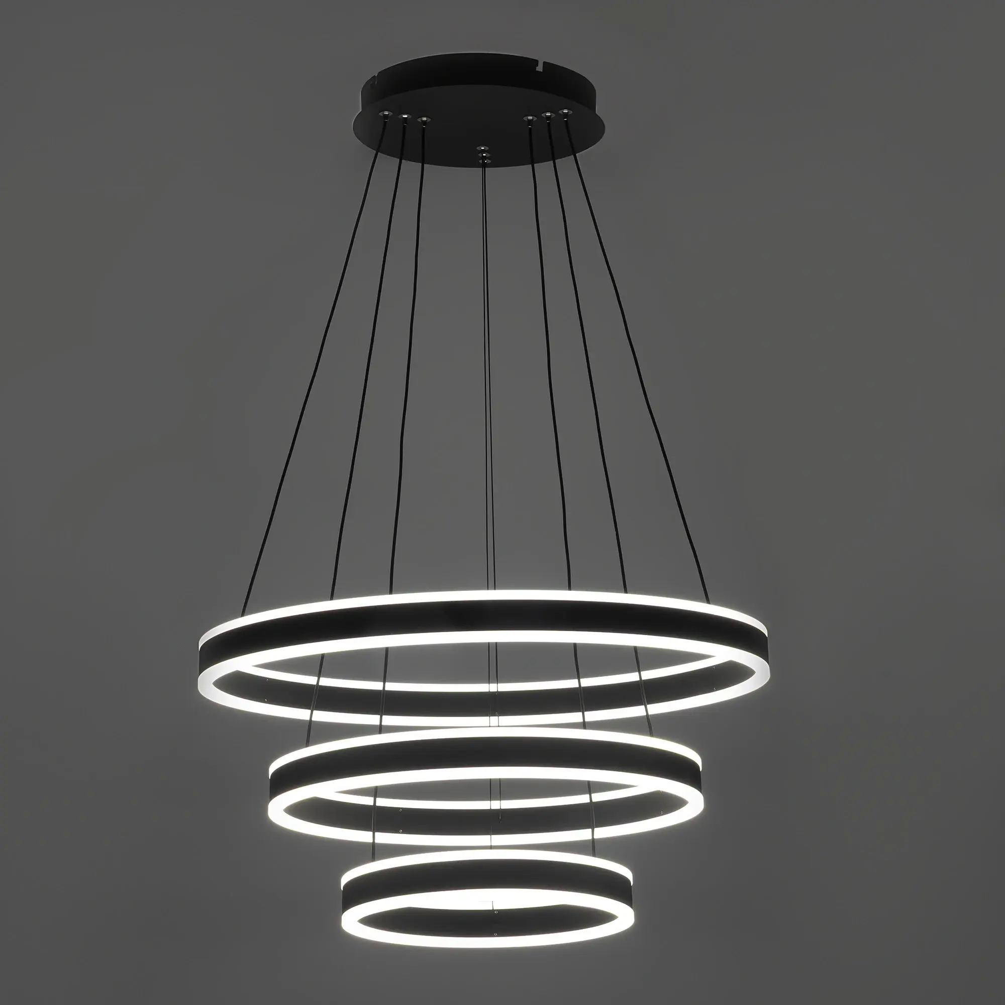 Светодиодная люстра Citilux Дуэт CL719651 выполнена в современном стиле, цвет чёрный. Люстра на тросах в форме каскада из трёх колец, высоту и угол наклона каждого из которых можно легко изменить. Кольца - светодиодные модули изготовлены из алюминиевого профиля, рассеиватель из оптического полимера. Наличие источников света с двух сторон профиля позволяет равномерно осветить всё помещение.