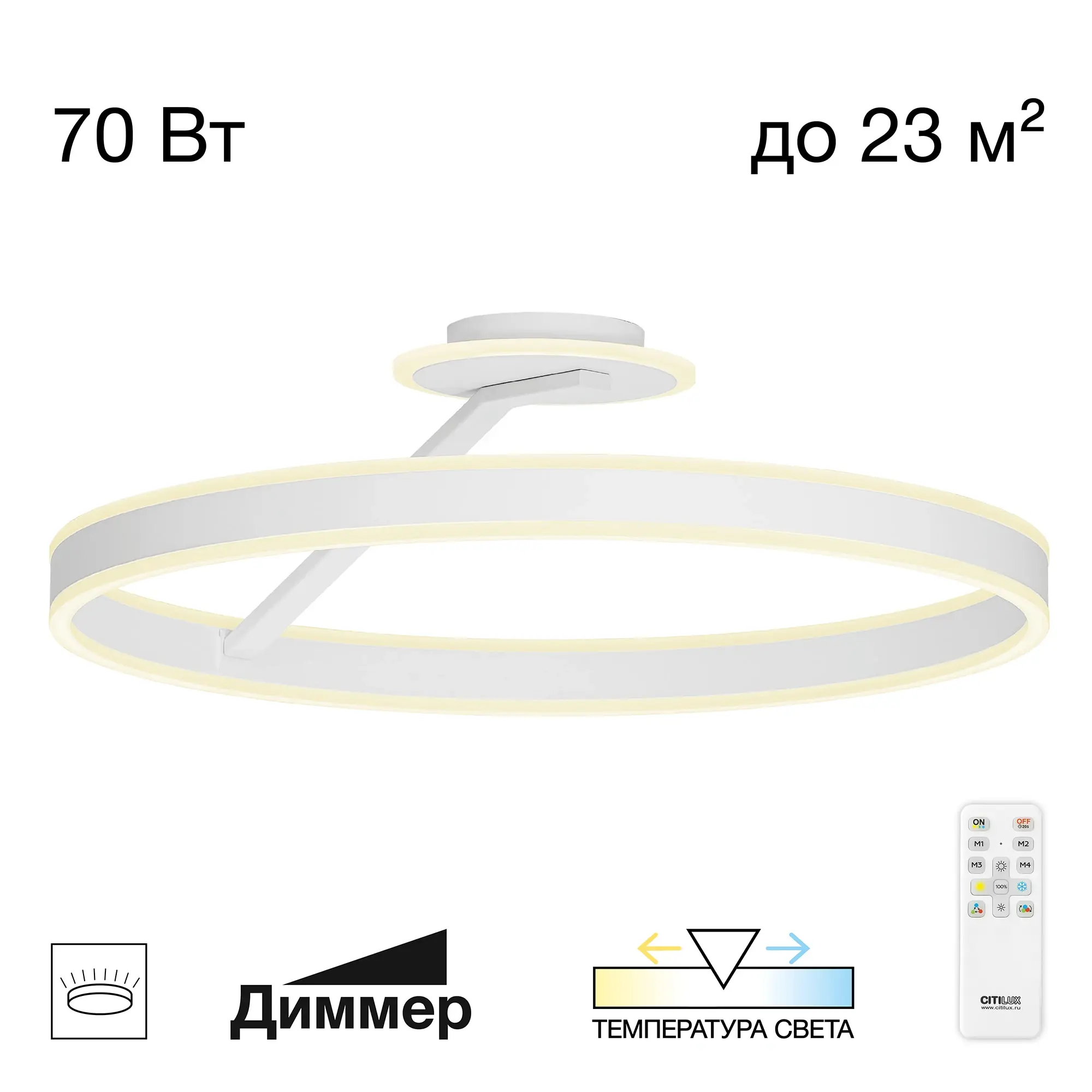 Кольцевая управляемая люстра Ситилюкс Дуэт CL719760 создаст идеальное освещение в гостиной, спальне, кухне или кабинете.